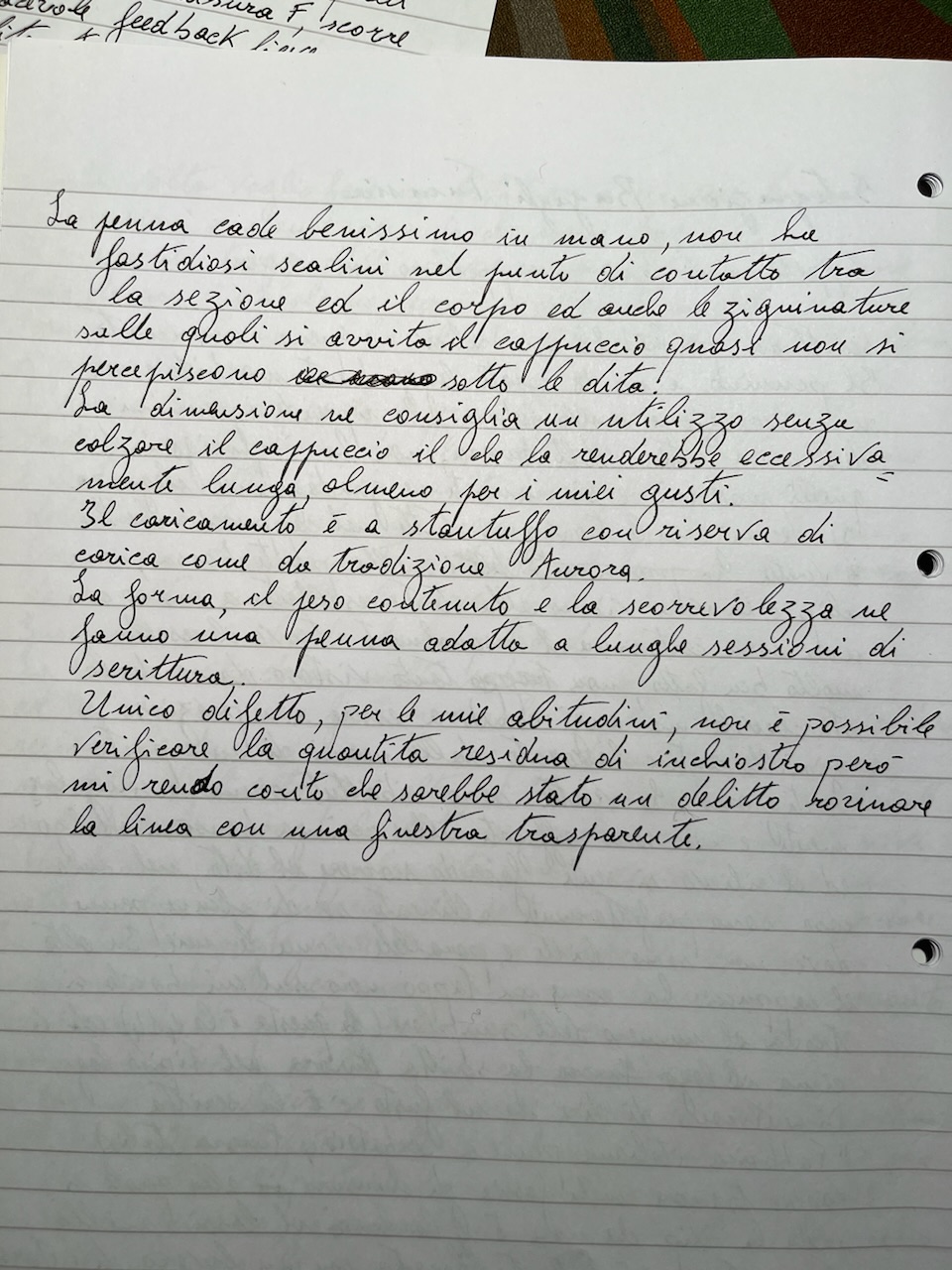 Grazie per la splendida recensione. È una bellissima penna ed è tra quelle che rimangono sempre tra i miei desideri. L'unica cosa che mi ha sempre frenato, a parte il prezzo, è la cesellatura del fermaglio che trovo piuttosto pesante. Ho la duplex, del colore verde e scrive ancora benissimo.