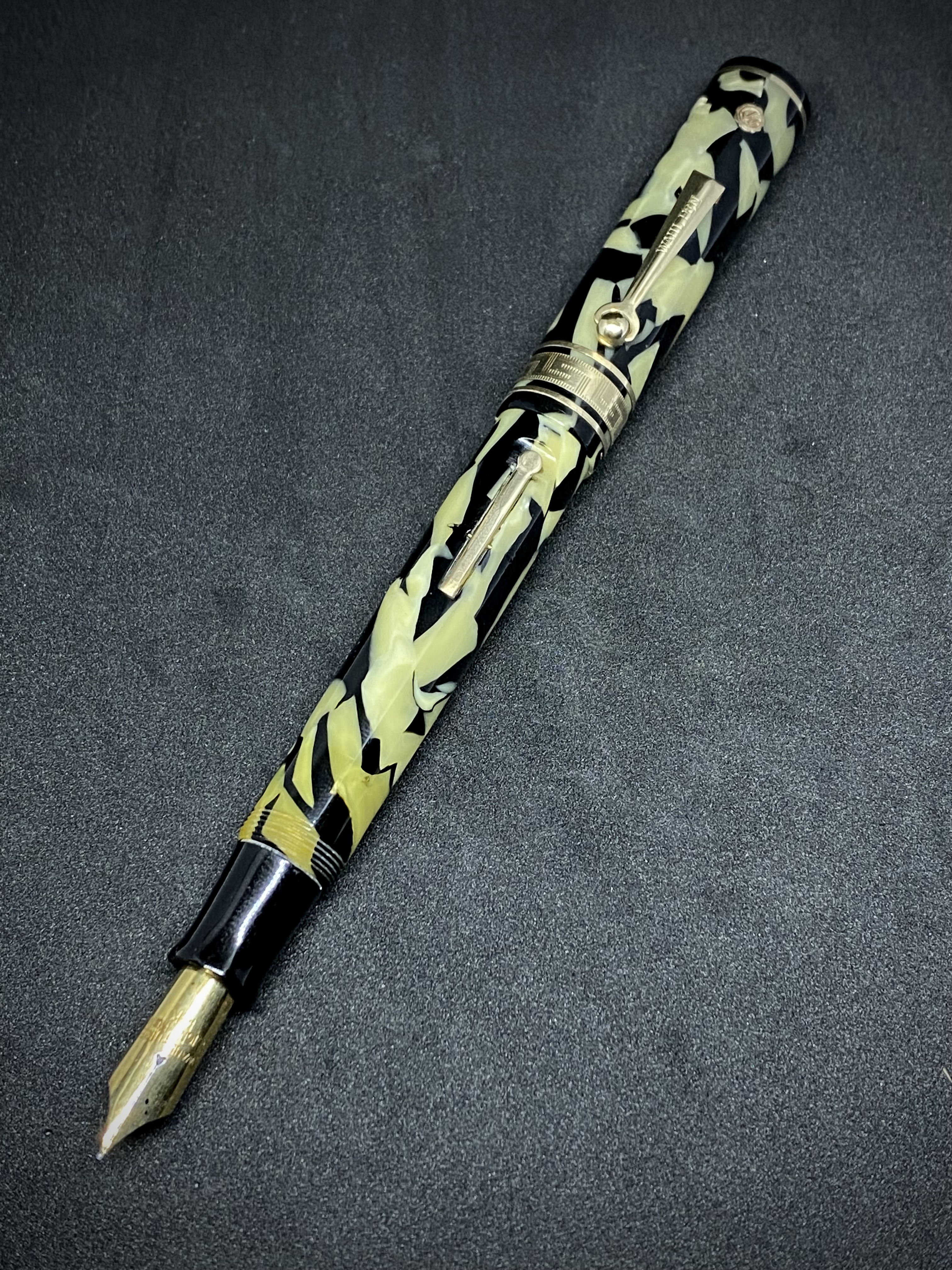 Benché Wahl abbia iniziato dopo altri produttori ad usare la celluloide, è poi stata all'avanguardia nei materiali usati, come appunto questo Black and Pearl che, almeno da quanto sono riuscito a reperire dopo una ricerca in rete, sembra essere stato usato per la prima volta proprio nel 1928 da Wahl e Sheaffer.