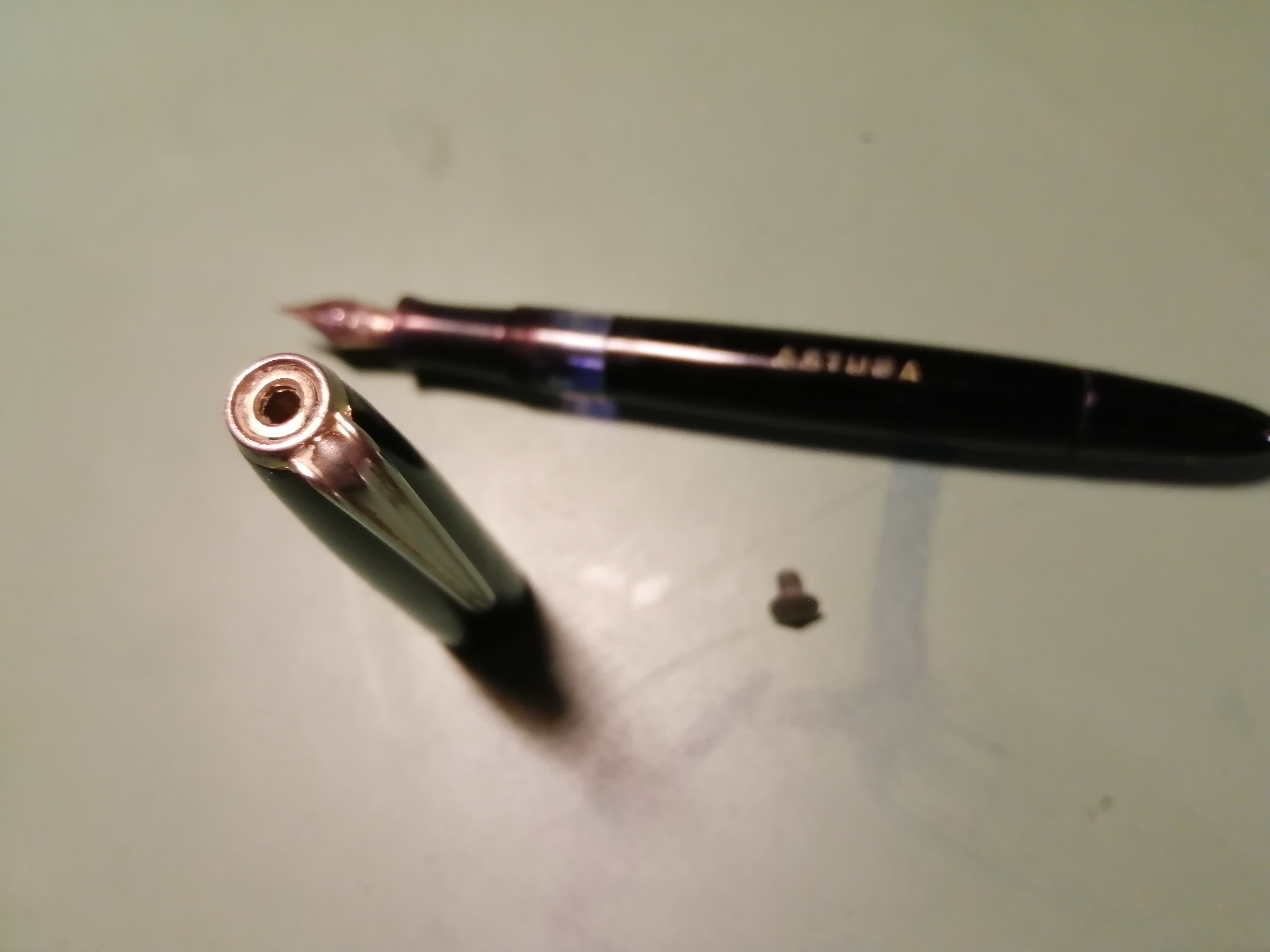 Buonasera a tutti, ho finito di sistemare una Astura in plastica nera, decisamente anonima ma con un gran bel pennino in oro. La clip, che nelle foto vedete priva del jewel a vite, resta fissa al cappuccio, ma gli ruota attorno sgradevolmente. Da quel che mi pare di aver capito, avvitare più a fondo il jewel non risolve. Io d'altra parte non ho idea di come sia fatta la parte né quindi di come eventualmente smontare.