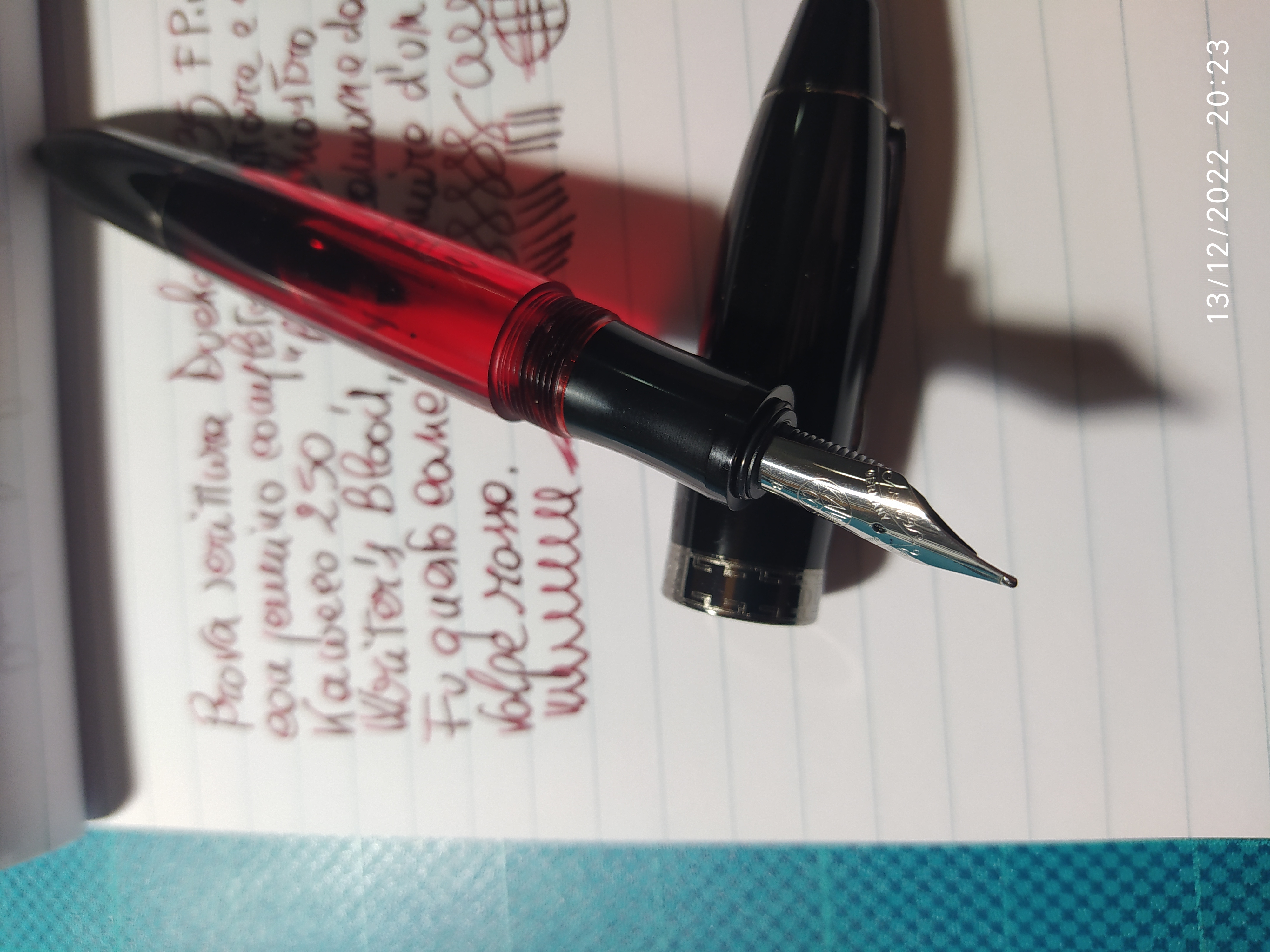 (con i problemi di sfaldamento / ruggine, dicono che non lo sia ma dove la placcatura è saltata via a contatto con l'acqua dopo un poco diventa rossiccio, a me pare ruggine... Btw non ho usato inchiostri aggressivi è stata caricata finora solo con KWZ Azure #2 che non è un inchiostro aggressivo)