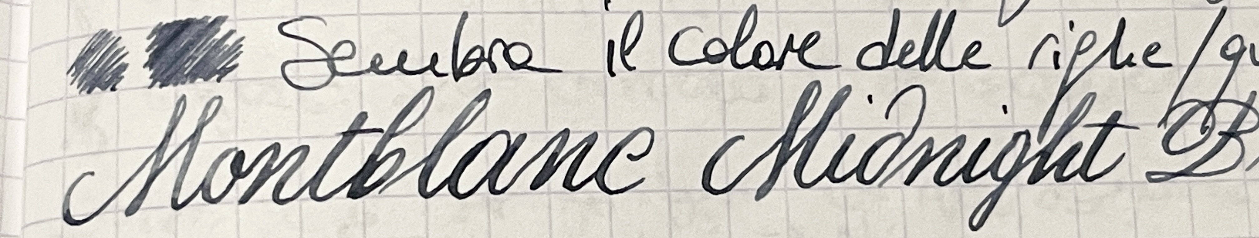 Contento del regalo, ho scaricato e lavato la 149 Calligraphy, fiero di poterle finalmente dare un inchiostro suo parente e ci son rimasto proprio male: la punta non scorre più (su Rhodia sembrava di scrivere su cartaccia porosa), il colore è grigio sporco gia da bagnato (peggiora asciugandosi) e, cercando un po’ di flessione, mi ha fatto i binari! Non era mai capitato con nessun inchiostro, nemmeno con l’X-Feather che considero tra i miei più stitici.