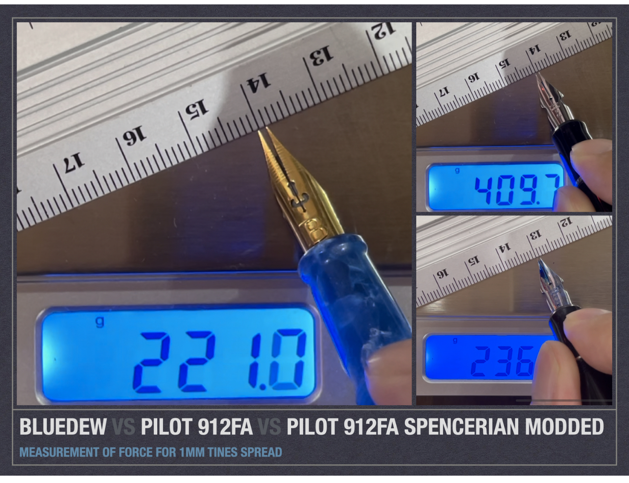 Ho visto qualche video di un pennino ultra-tagliato su base Jowo: il taglio tra i rebbi era prolungato, oltre il foro di aerazione, fin quasi alla sezione, con tanto di taglio perpendicolare da cui prendeva il nome Cross (diverso dal Cross di Sailor). Questo pennino era anche “grindato” a UEF e, allargandosi arrivava a 2,0mm.