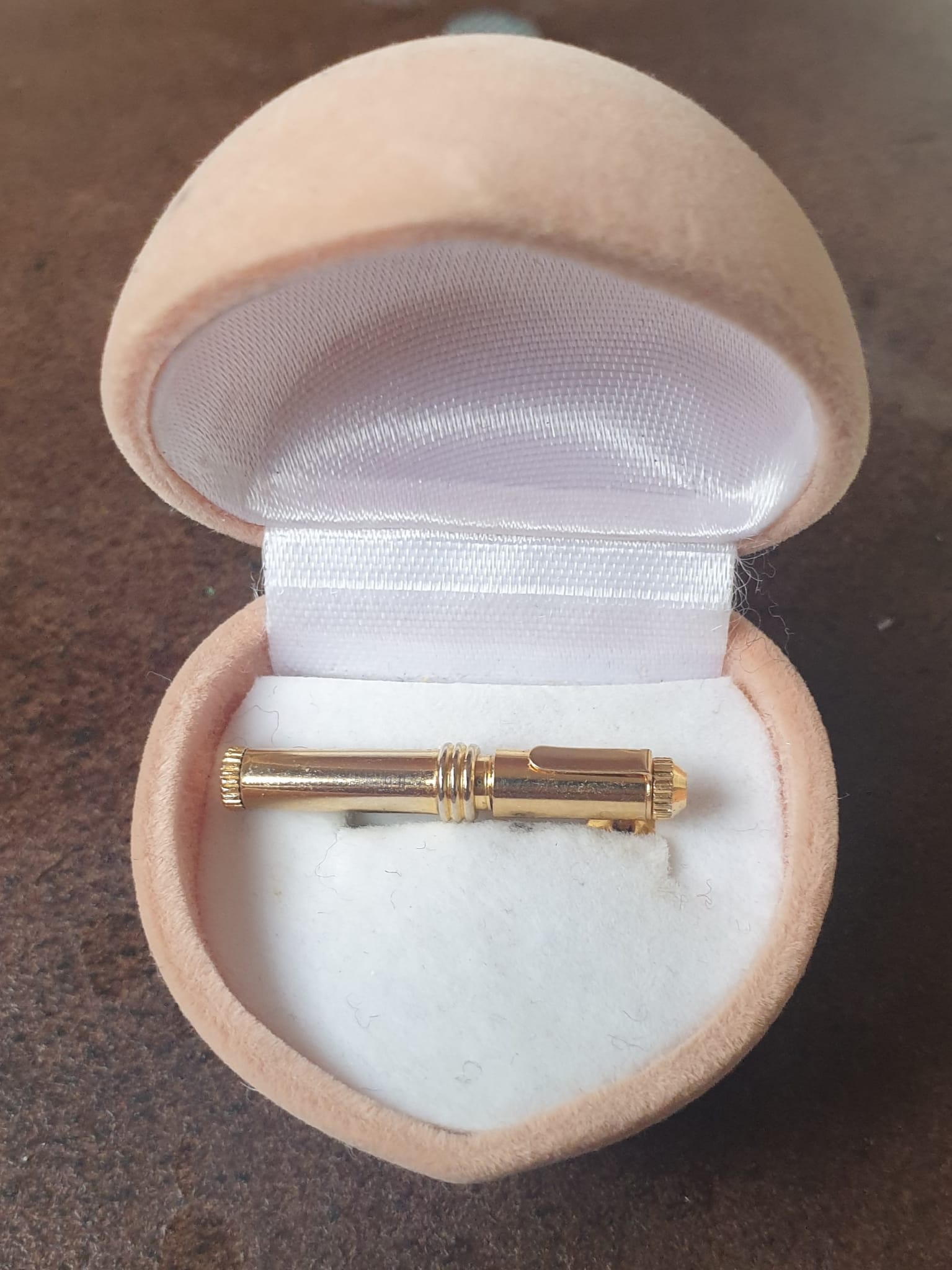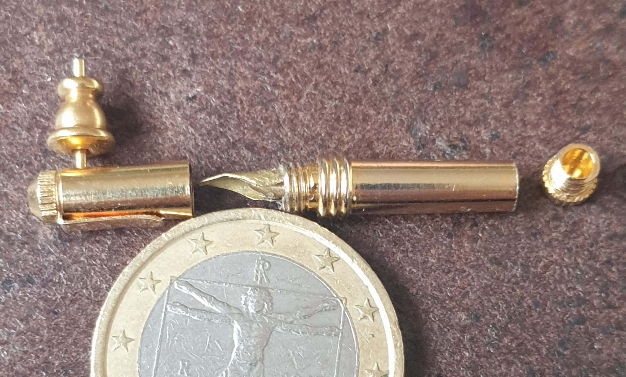 Stilografica oro, probabilmente la più piccola del mondo, a cartuccia, funzionante. Nel suo astuccio originale.