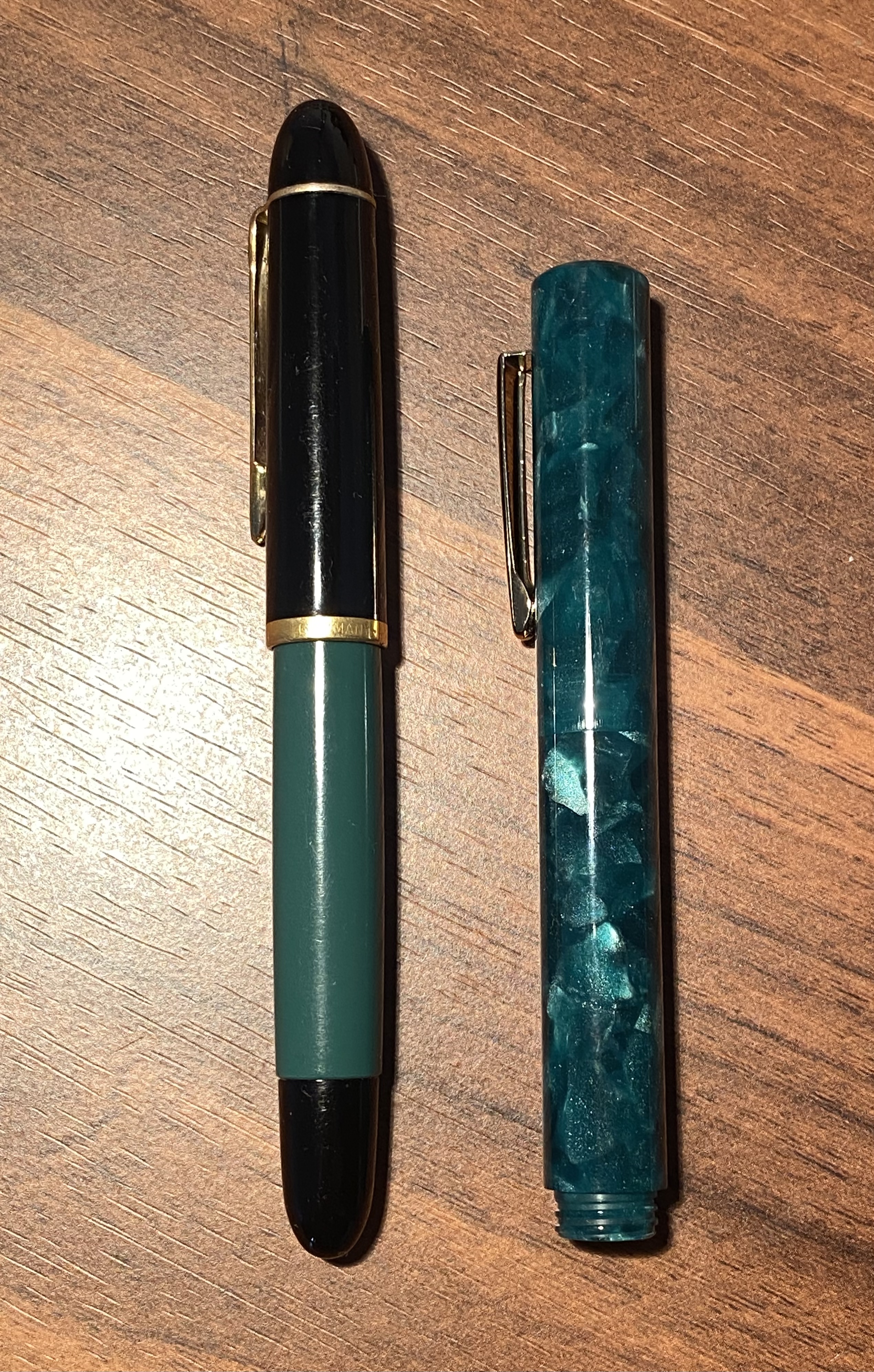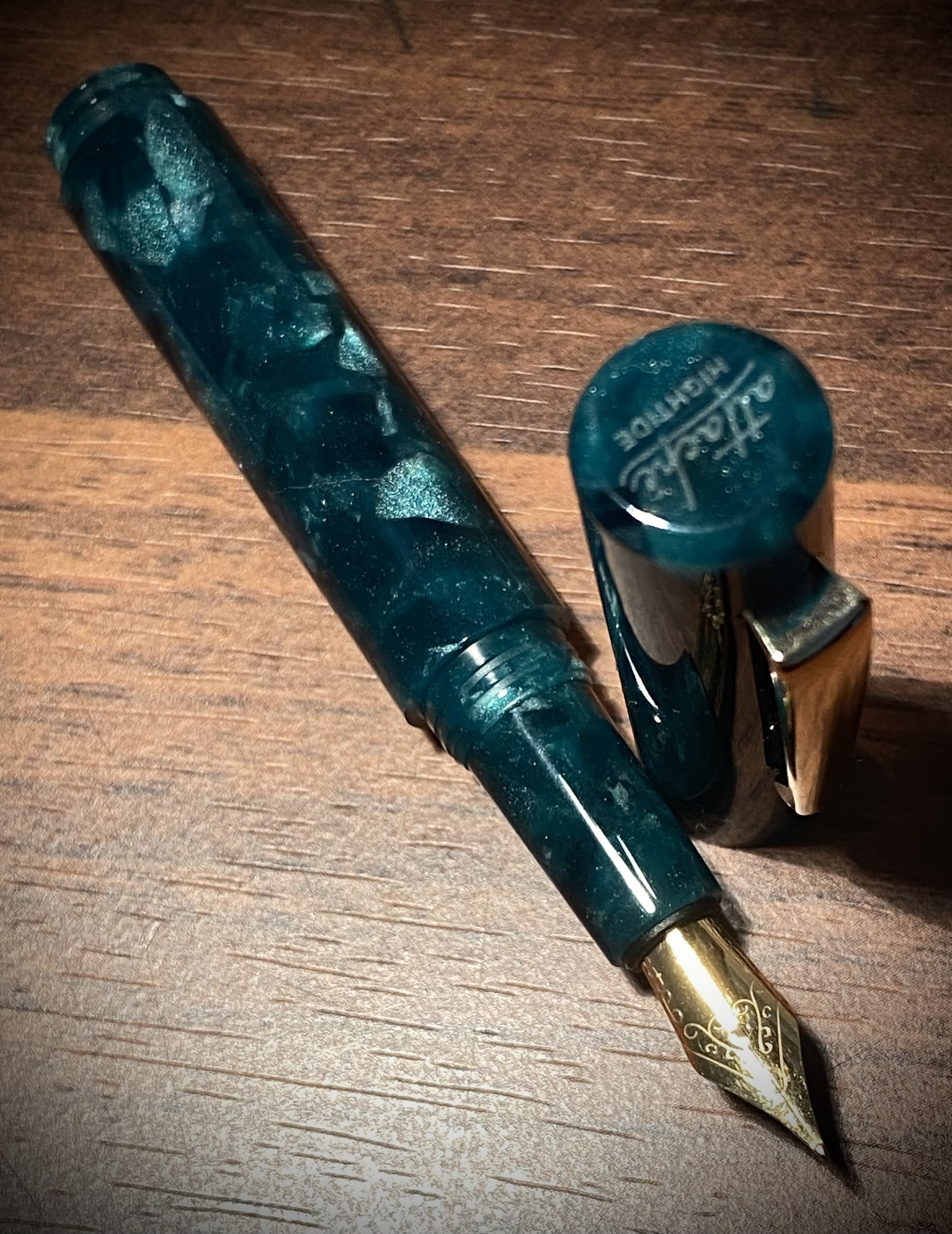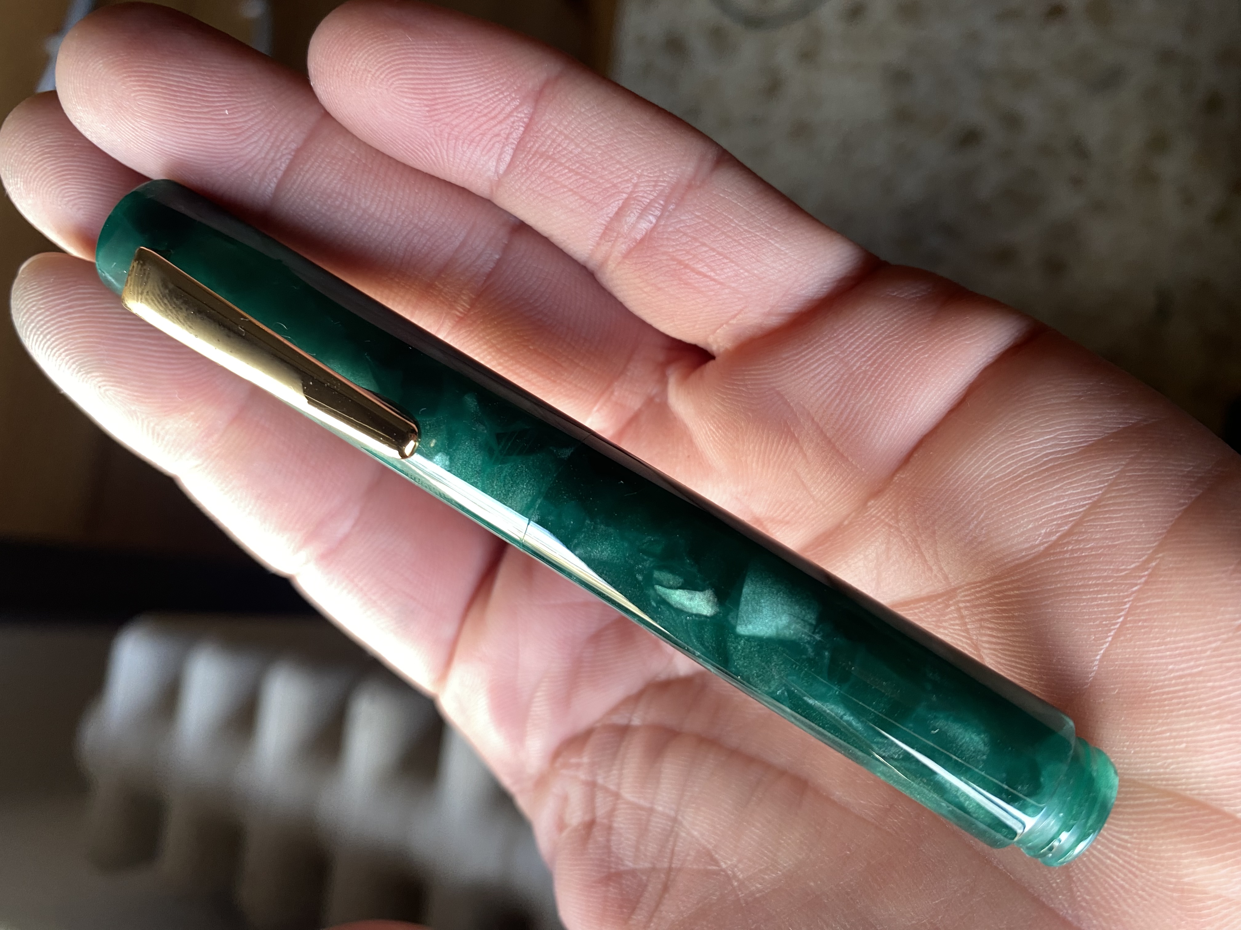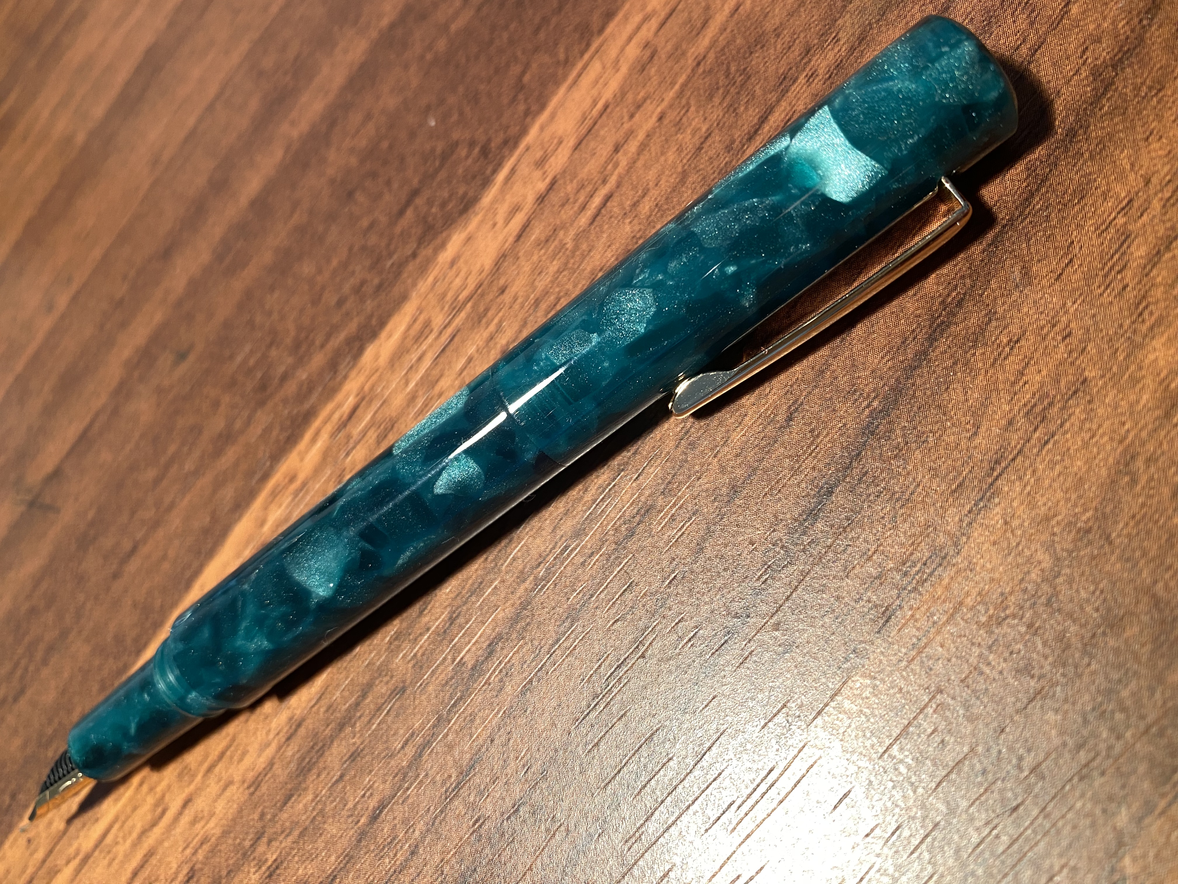 Molto carina questa penna. Non mi piacciono molto le penne su cui si deve avvitare il cappuccio sul fondello, però la resina di questa mi piace. Non la prenderei proprio per il cappuccio da avvitare, ma visto che è un regalo, va benissimo così. Anzi, gesto da apprezzare sempre