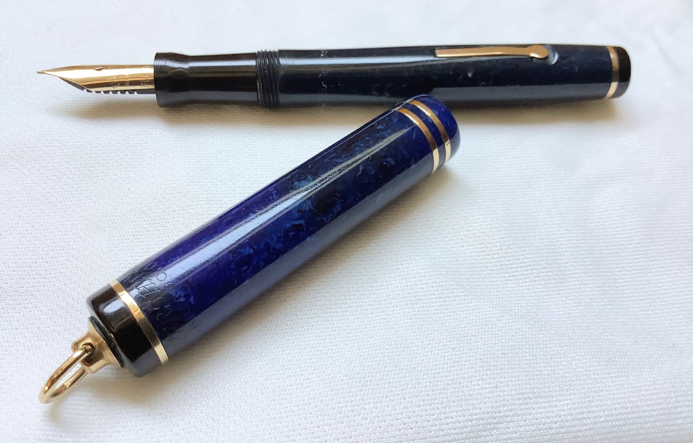 La Lazulitic è una delle più belle celluloidi di Wahl, la più bella celluloide blue per quel che mi riguarda. Sono alla spietata ricerca di una Decoband in condizioni formidabili, per ora mi accontento di questa (che ha anche la levetta con la molletta :mrgreen: )