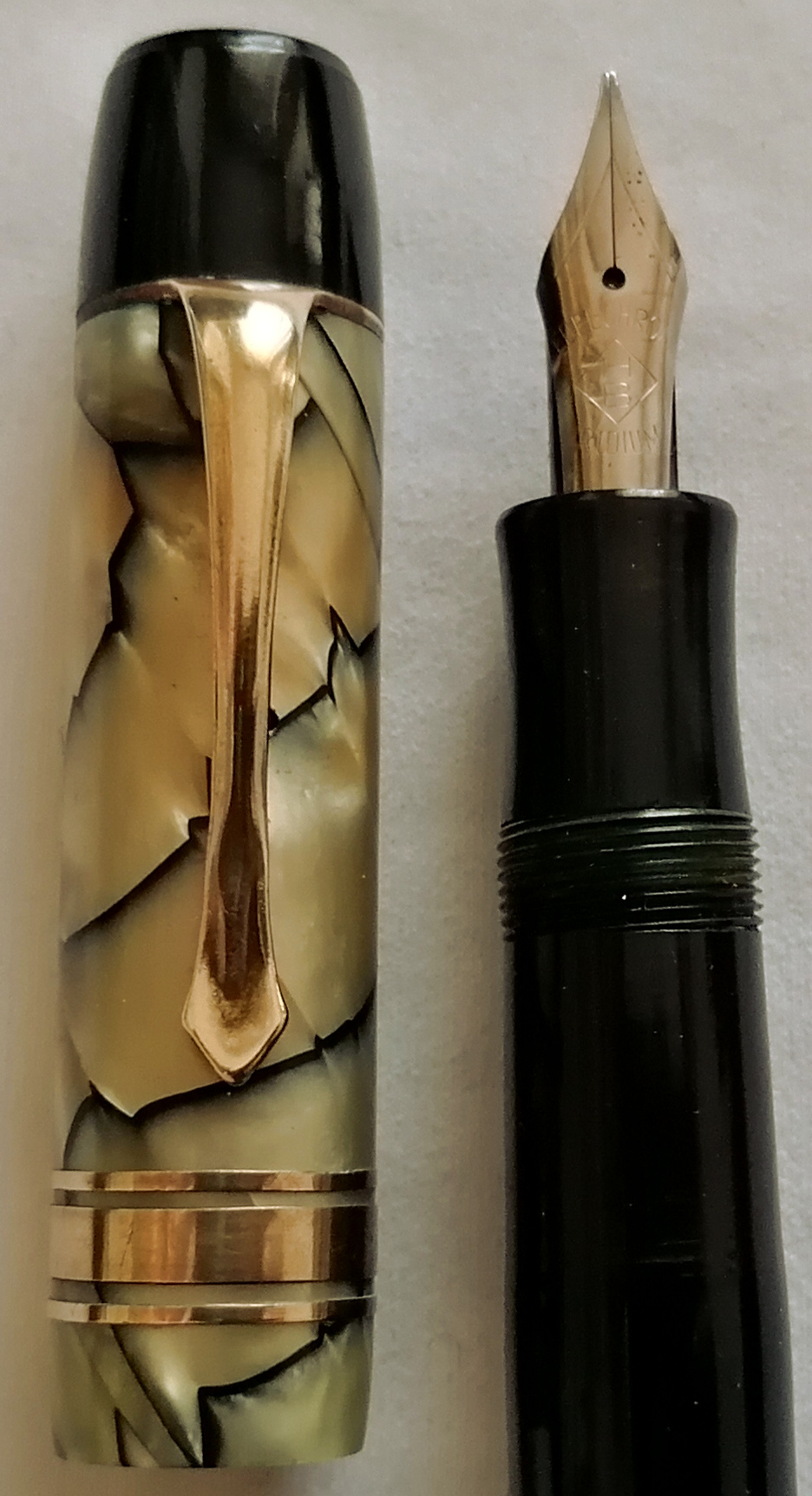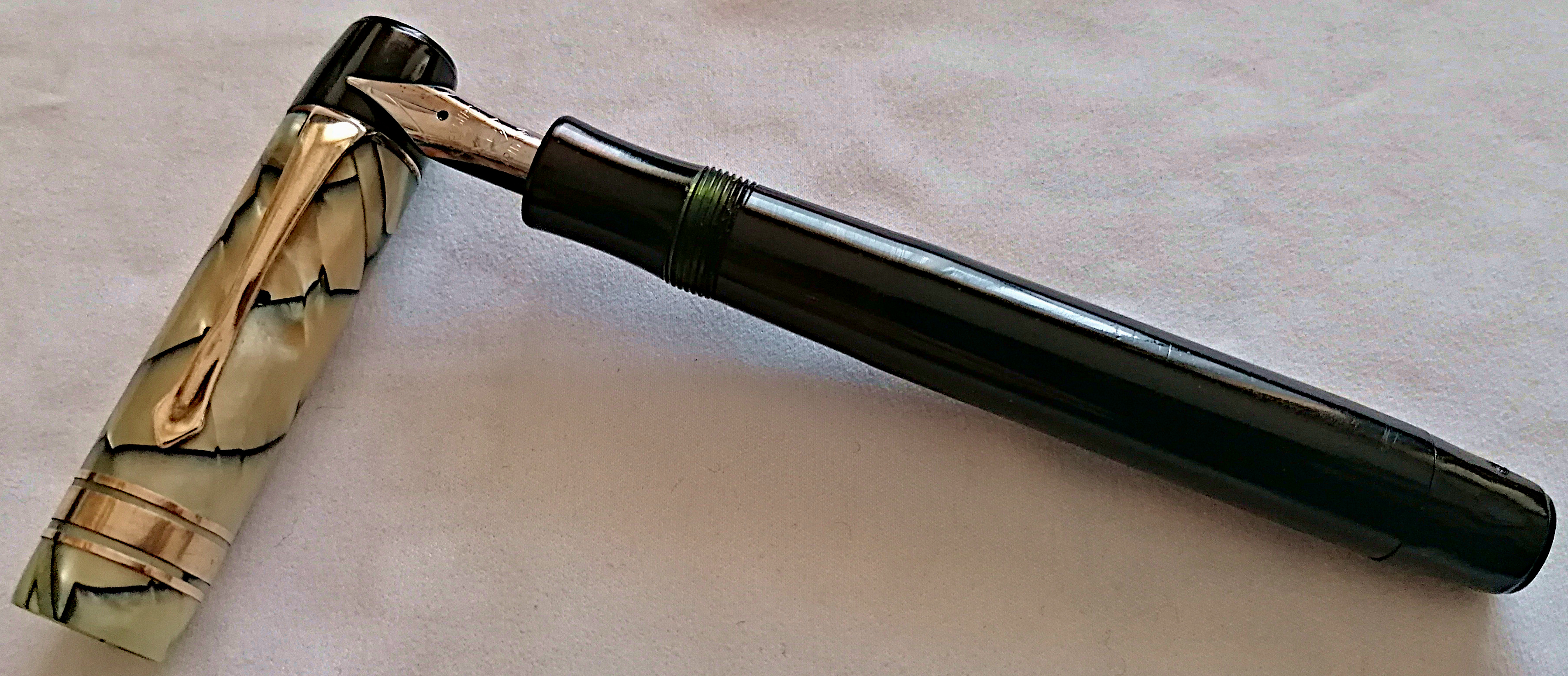 Il cappuccio mi ricorda tanto le Parker Duofold in Moderne Black & Pearl, anni "30 più o meno.