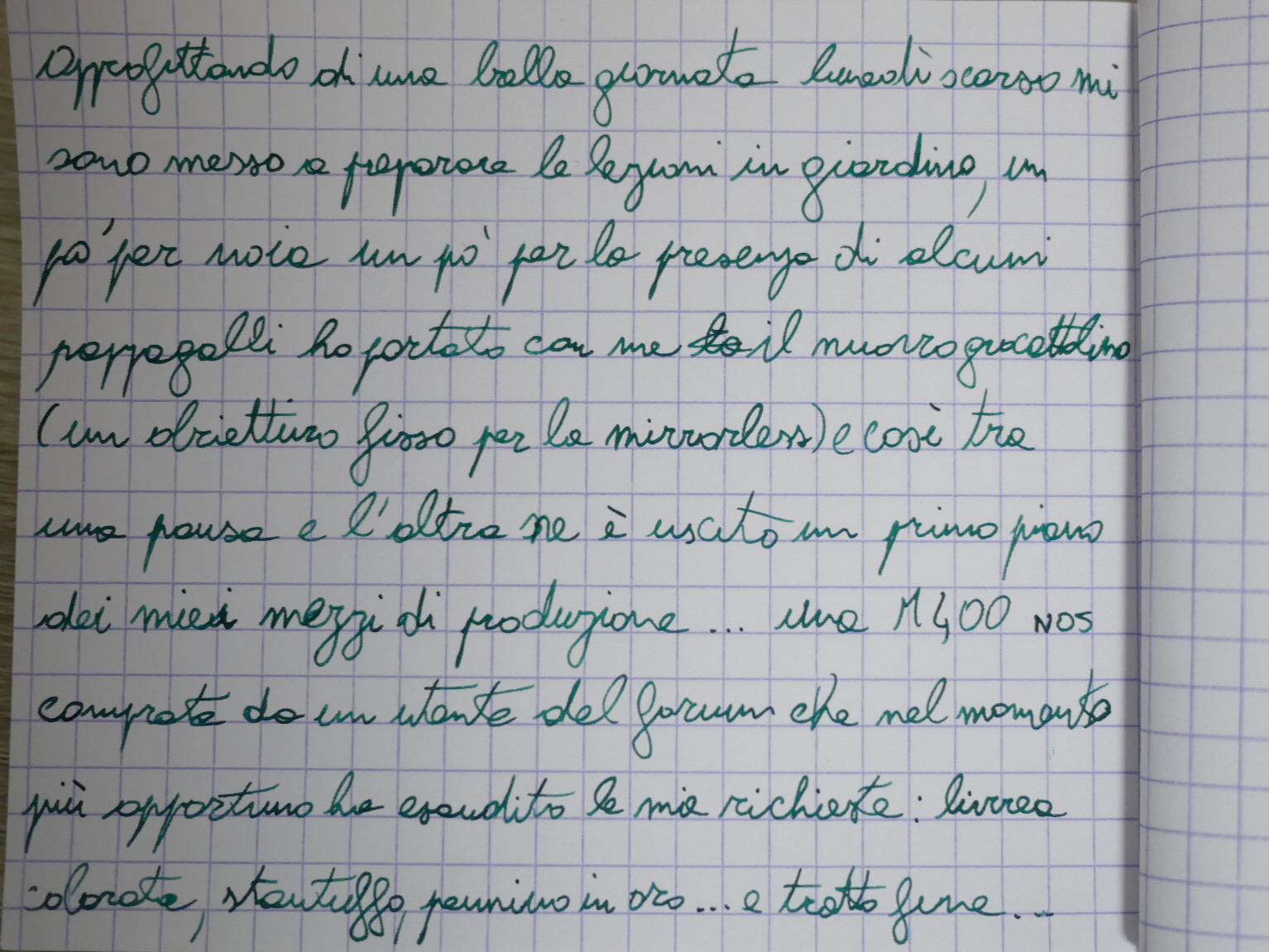 Bel bokeh, bel giardino, bella penna, interessante l’argomento della lezione e inchiostro perfettamente abbinato alla livrea della penna.