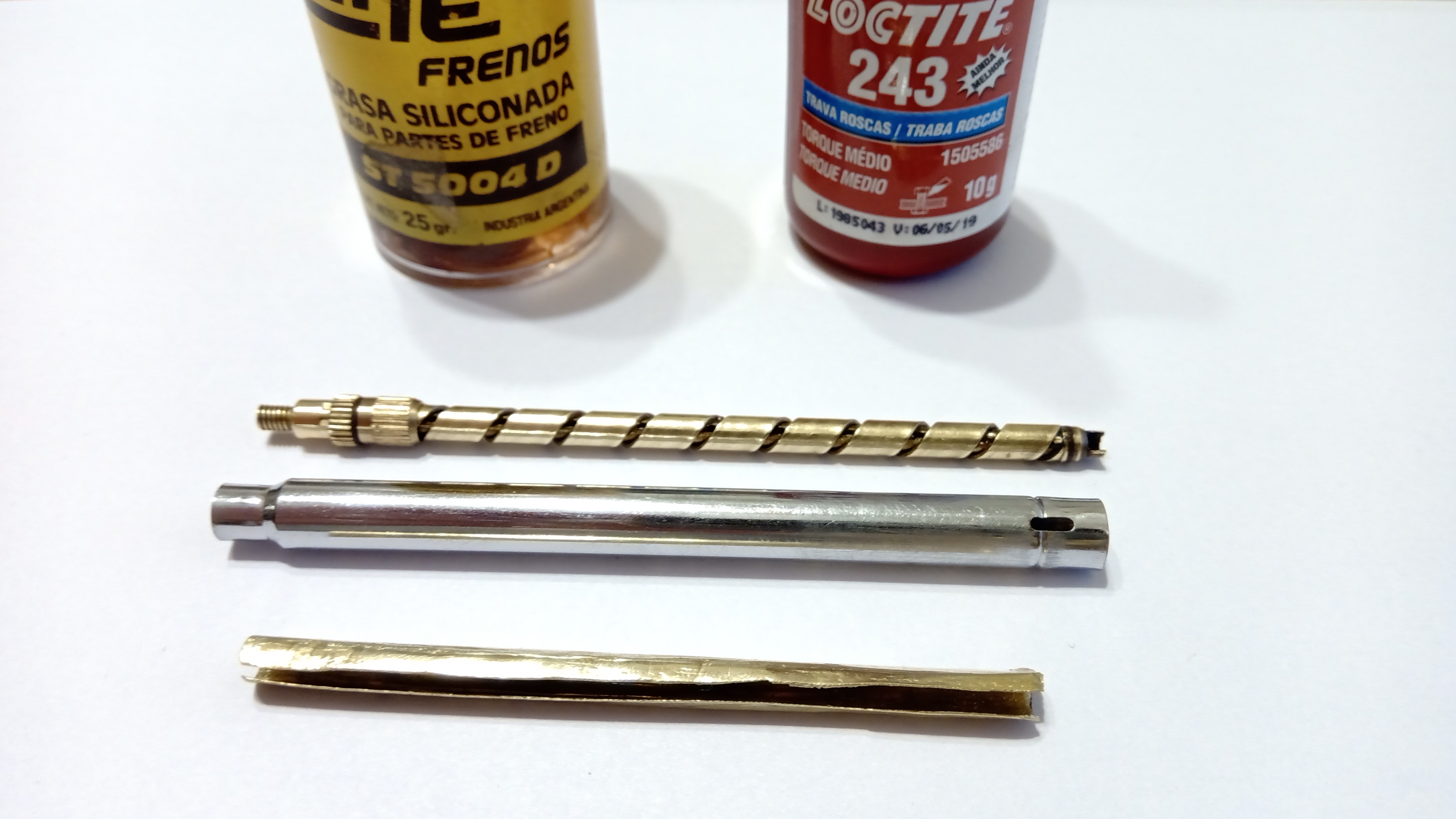 Il dispositivo interno del portamine doveva essere lubrificato con grasso al silicone e successivamente assemblato con la guaina esterna in ottone, che veniva fissata con Loctite 243, per poi introdurre il separatore interno...