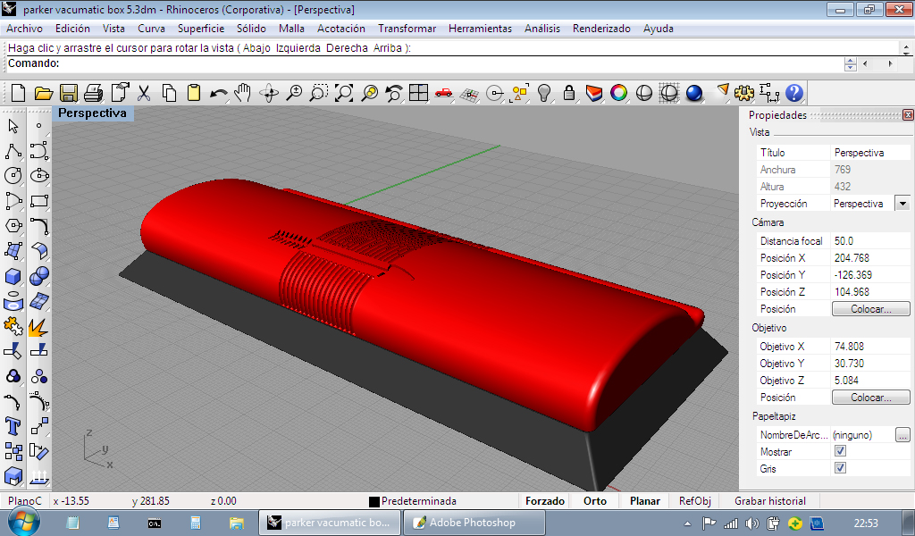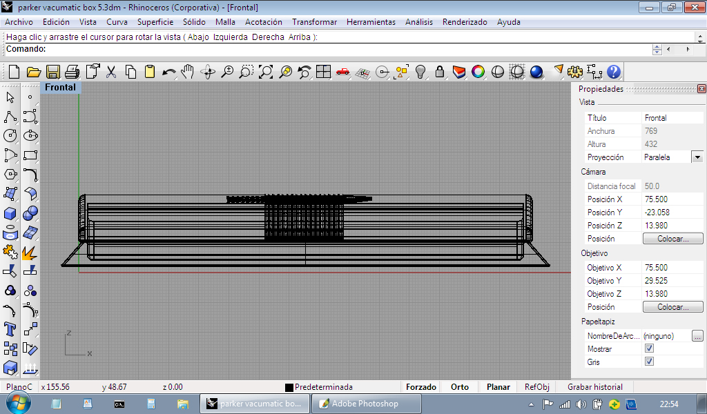 Quindi, con le poche foto che avevo, ho iniziato a progettare la stessa scatola in 3D con Rhinoceros per la successiva stampa 3D...