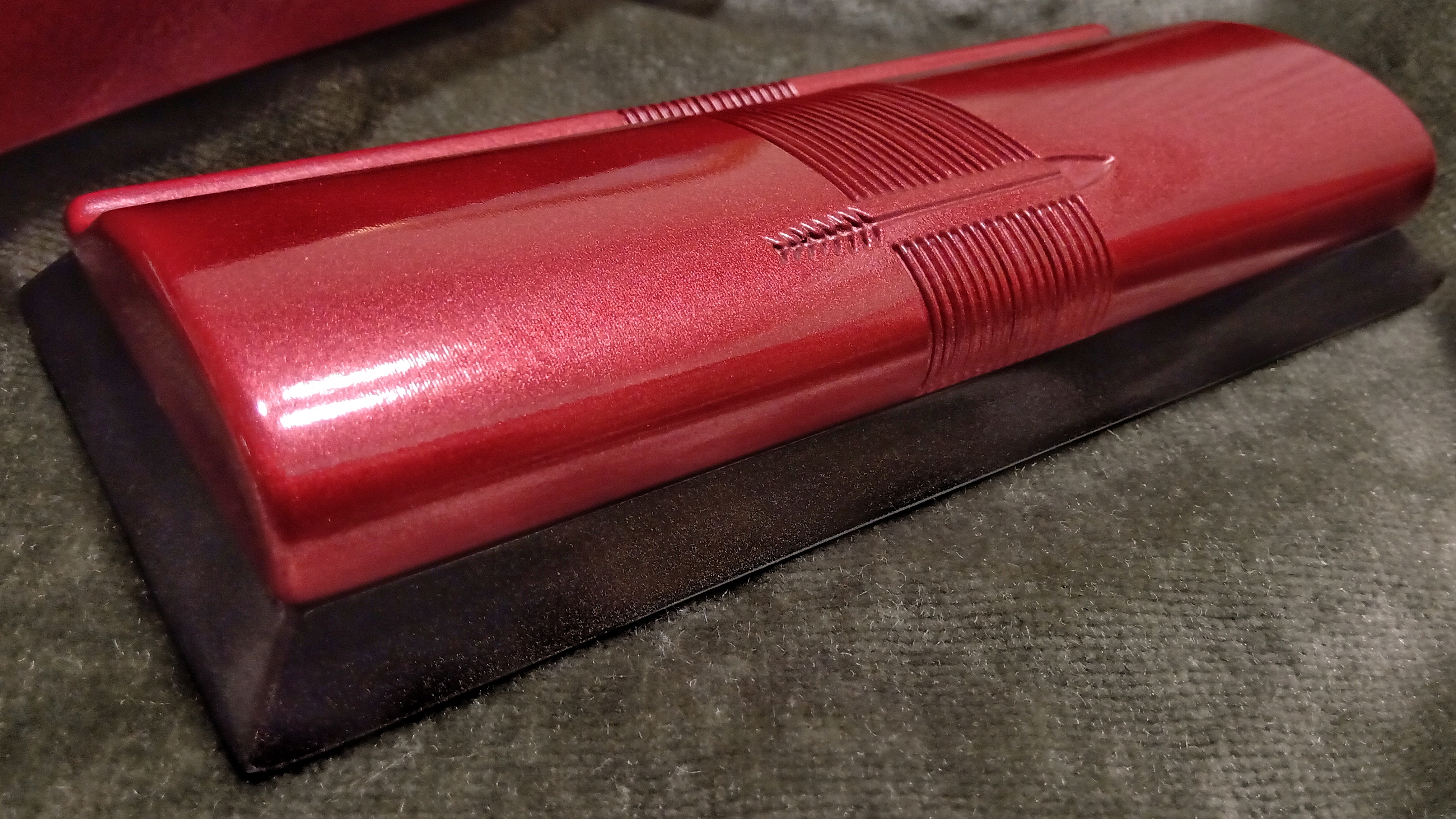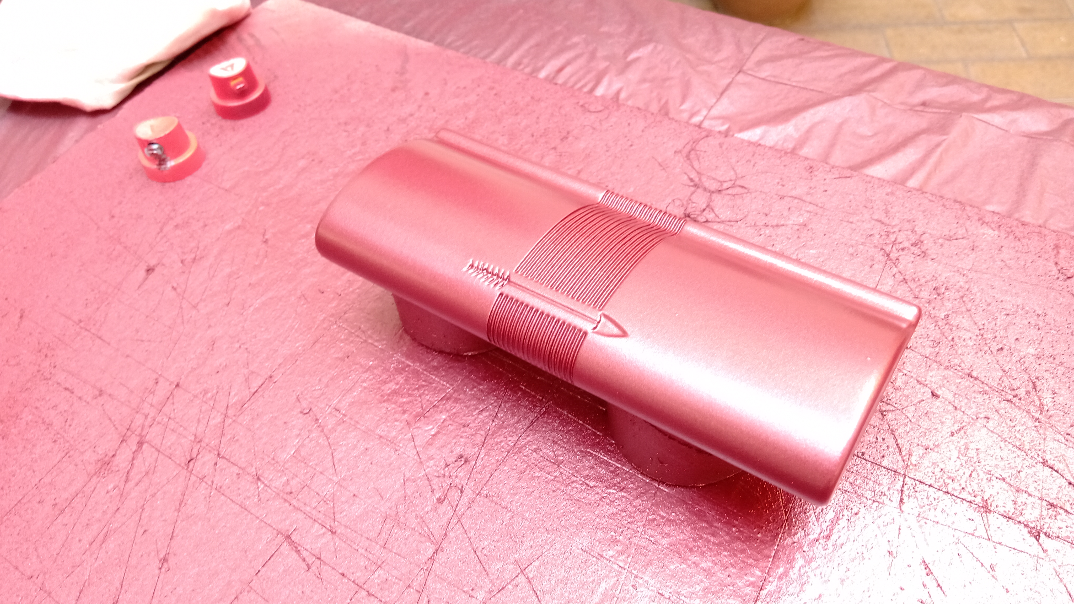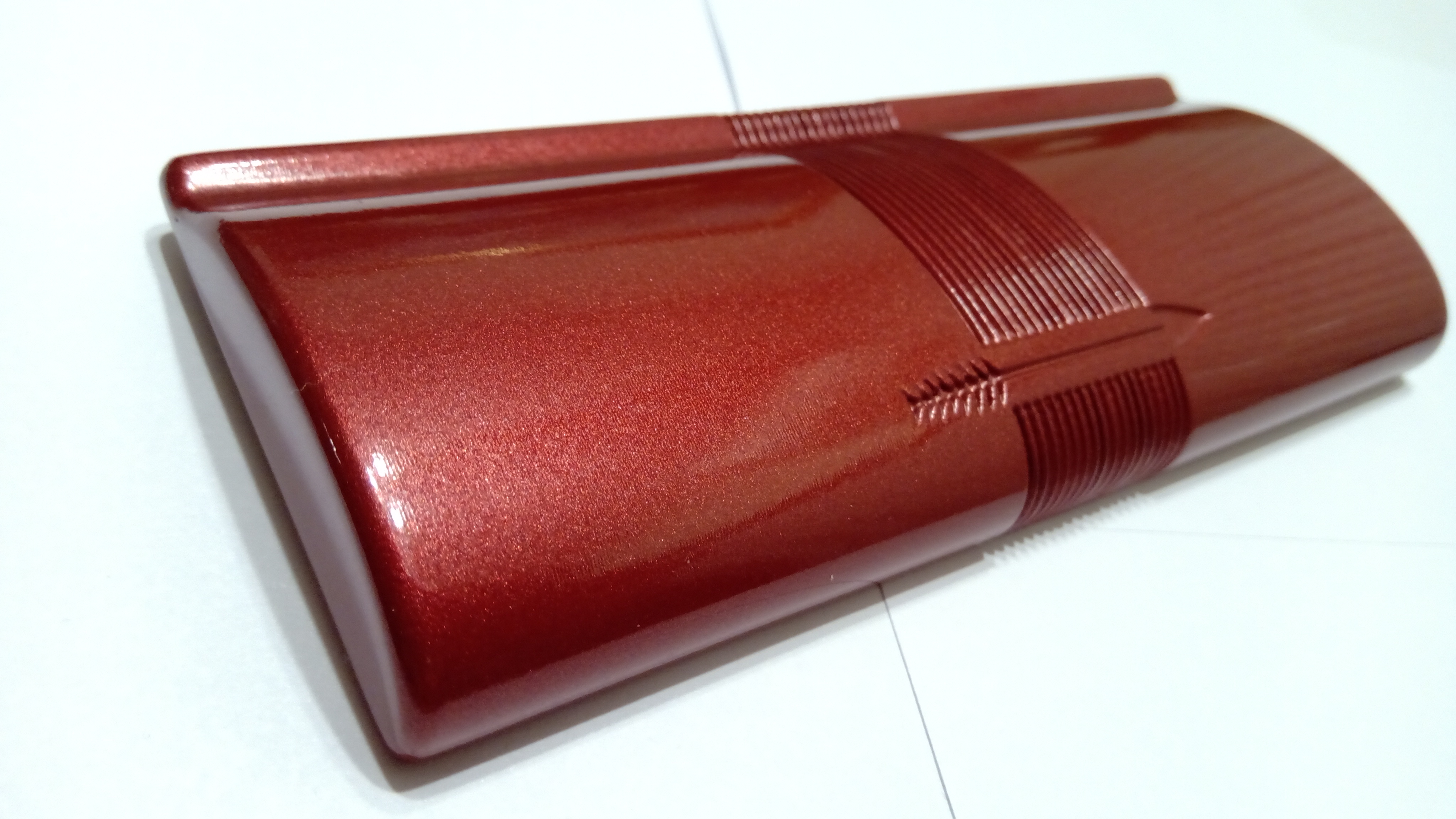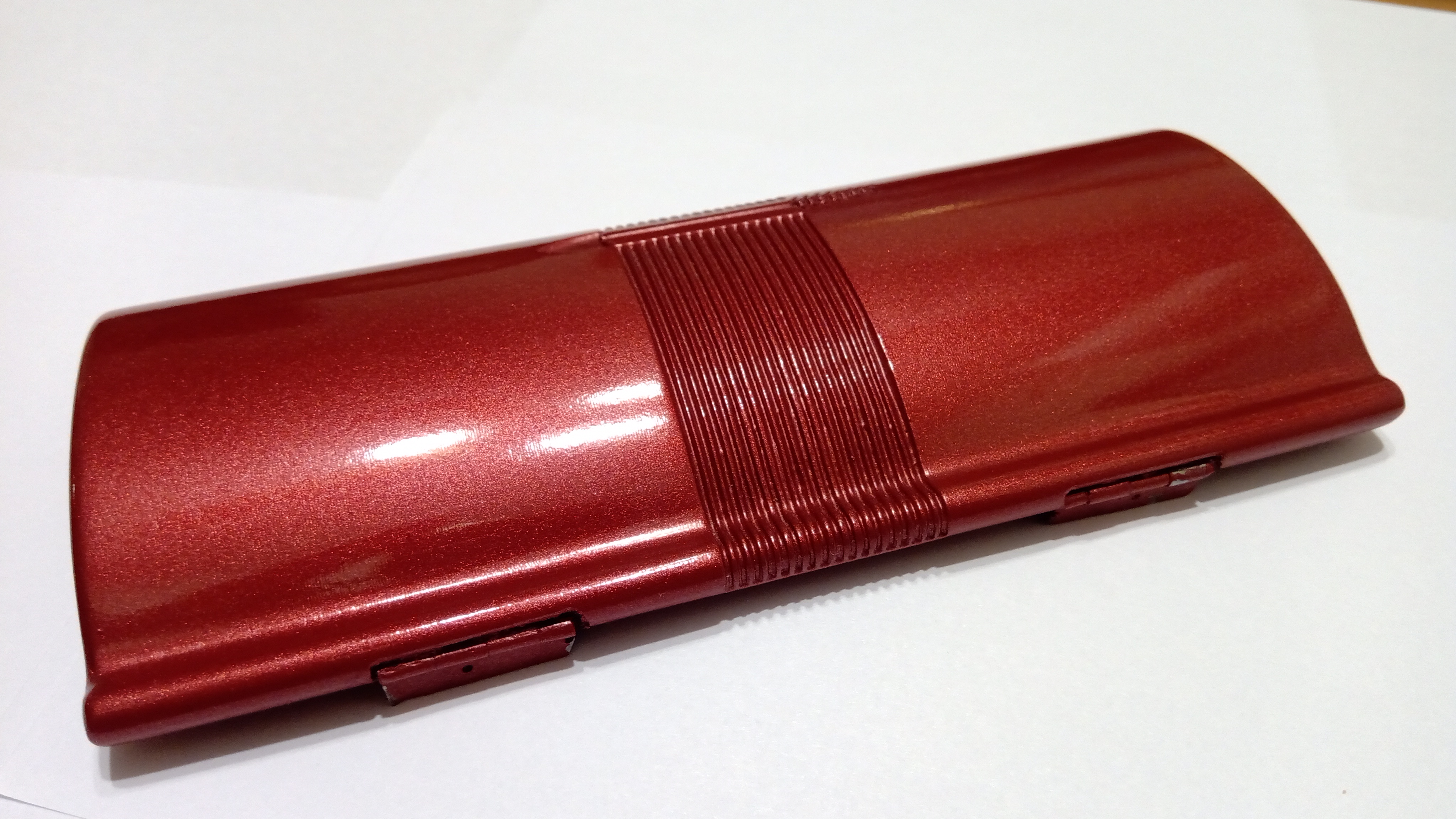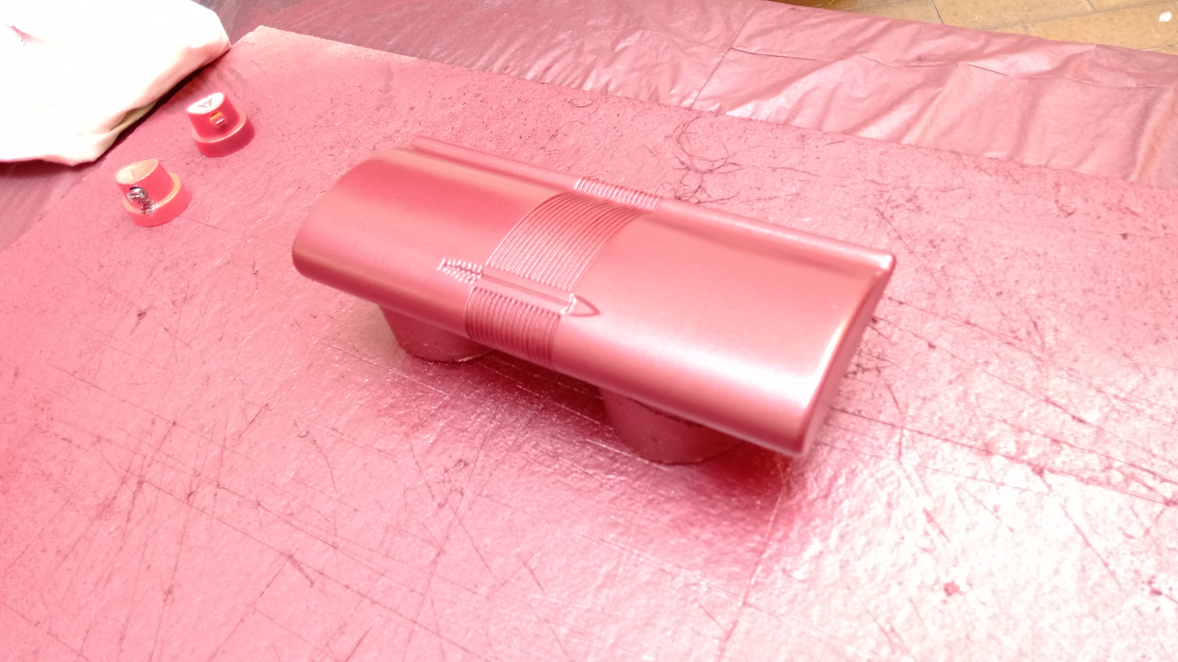 Per la verniciatura finale è stato deciso un nero metallizzato per la base (in origine era un nero lucido) e un rosso corallo automobilistico per il coperchio (in origine era un rosso corallo perlato)...