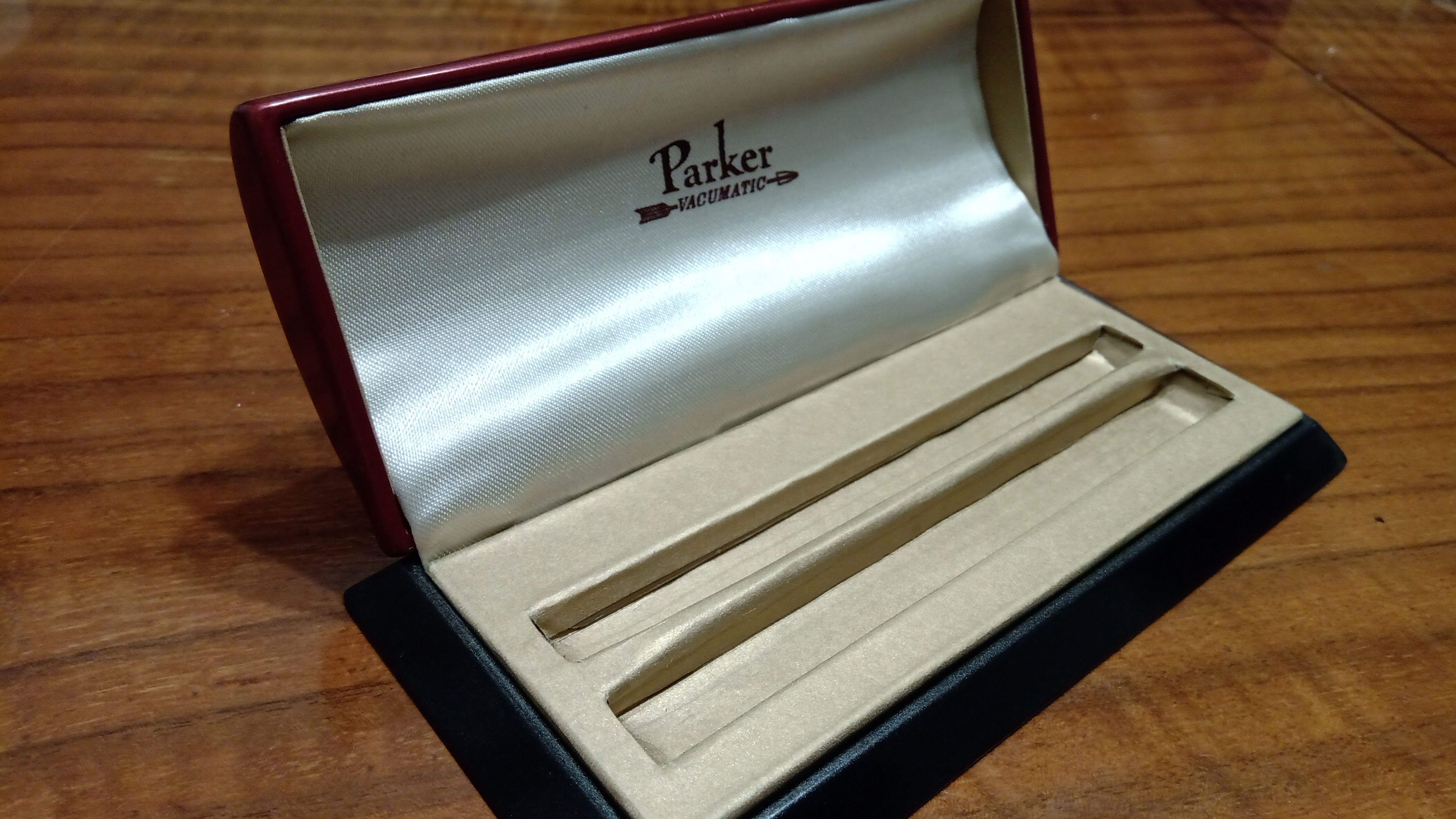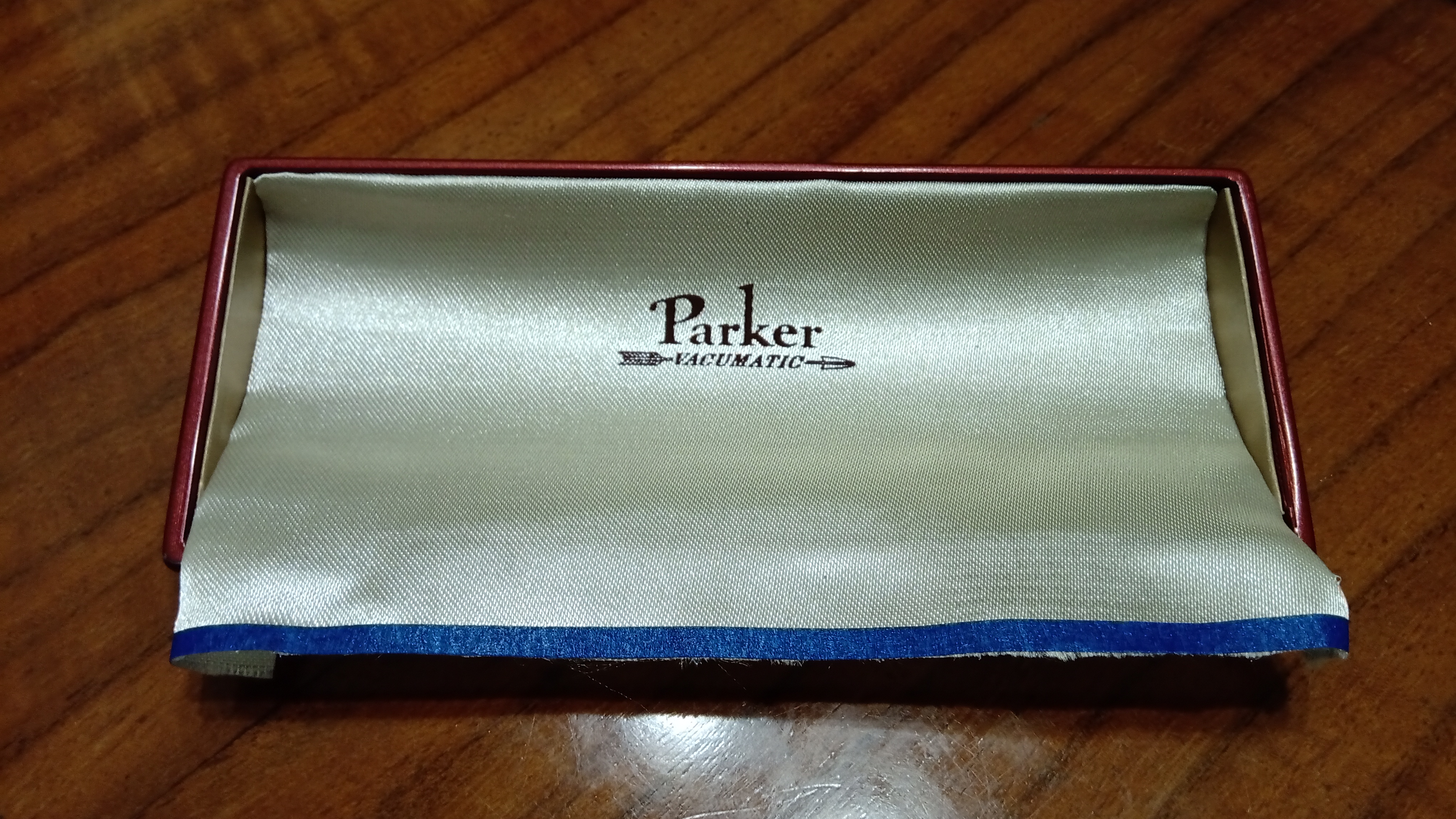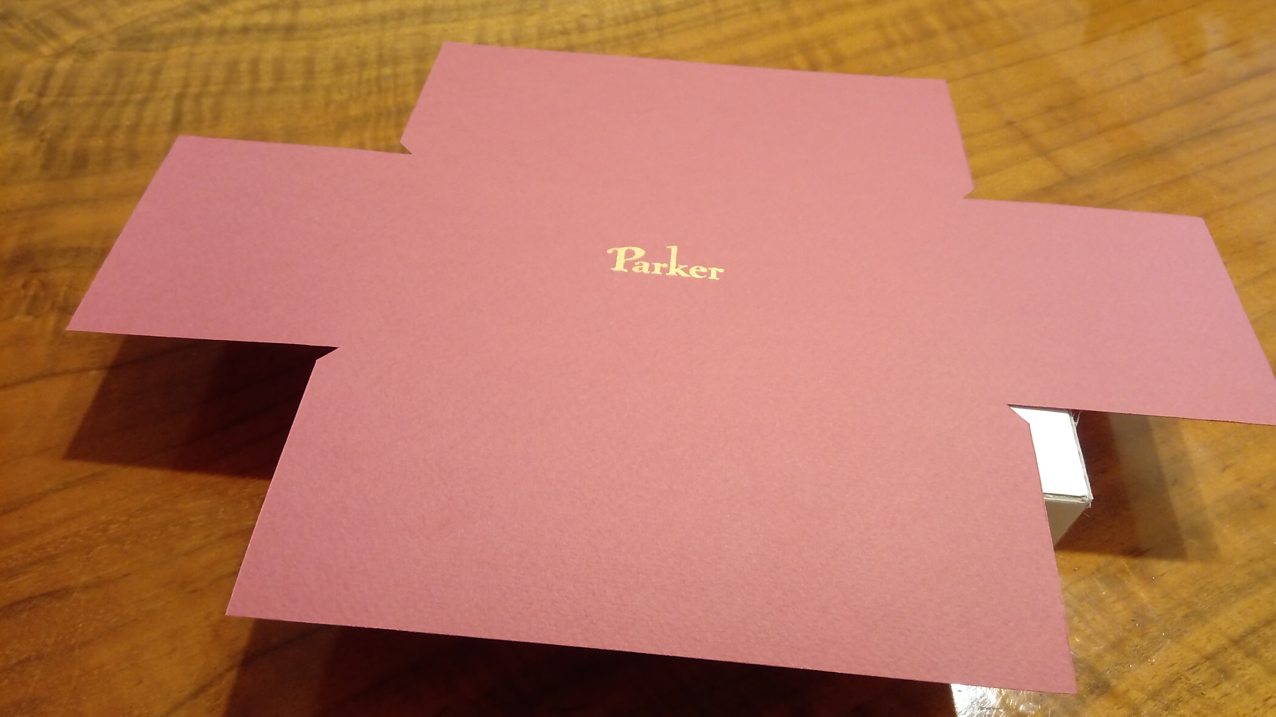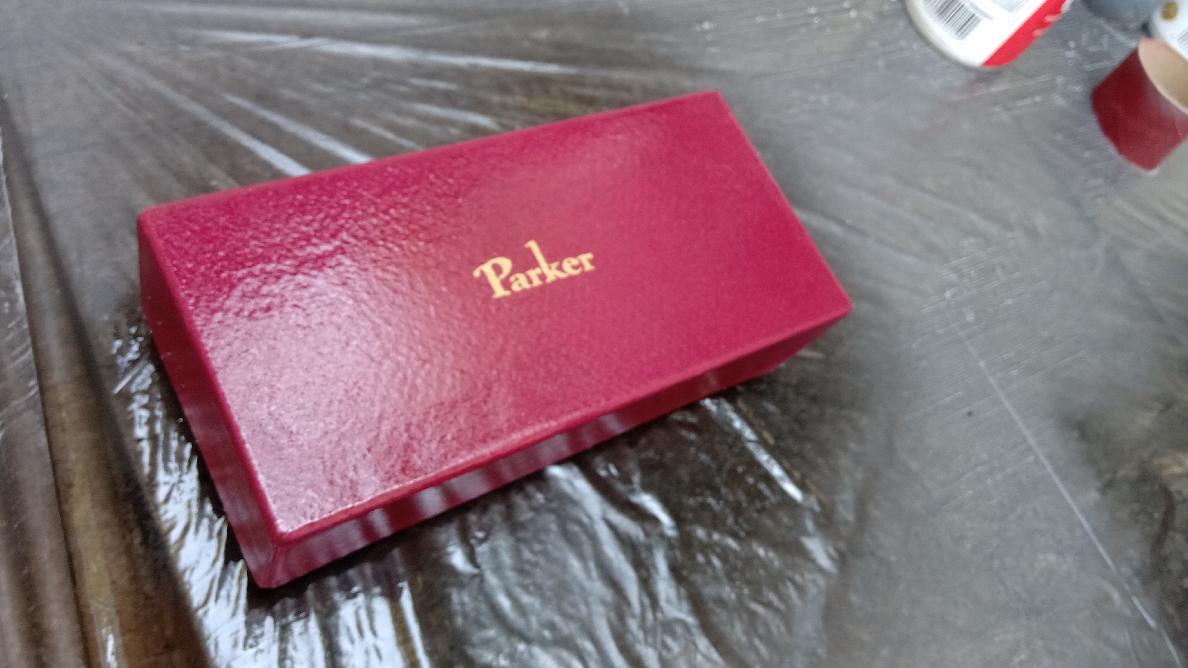 Tra le migliaia di diversi modelli di scatola che Parker aveva progettato e realizzato per le sue penne, aveva conosciuto questa scatola solo attraverso le foto, e le poche che erano state messe in vendita erano totalmente deformate.