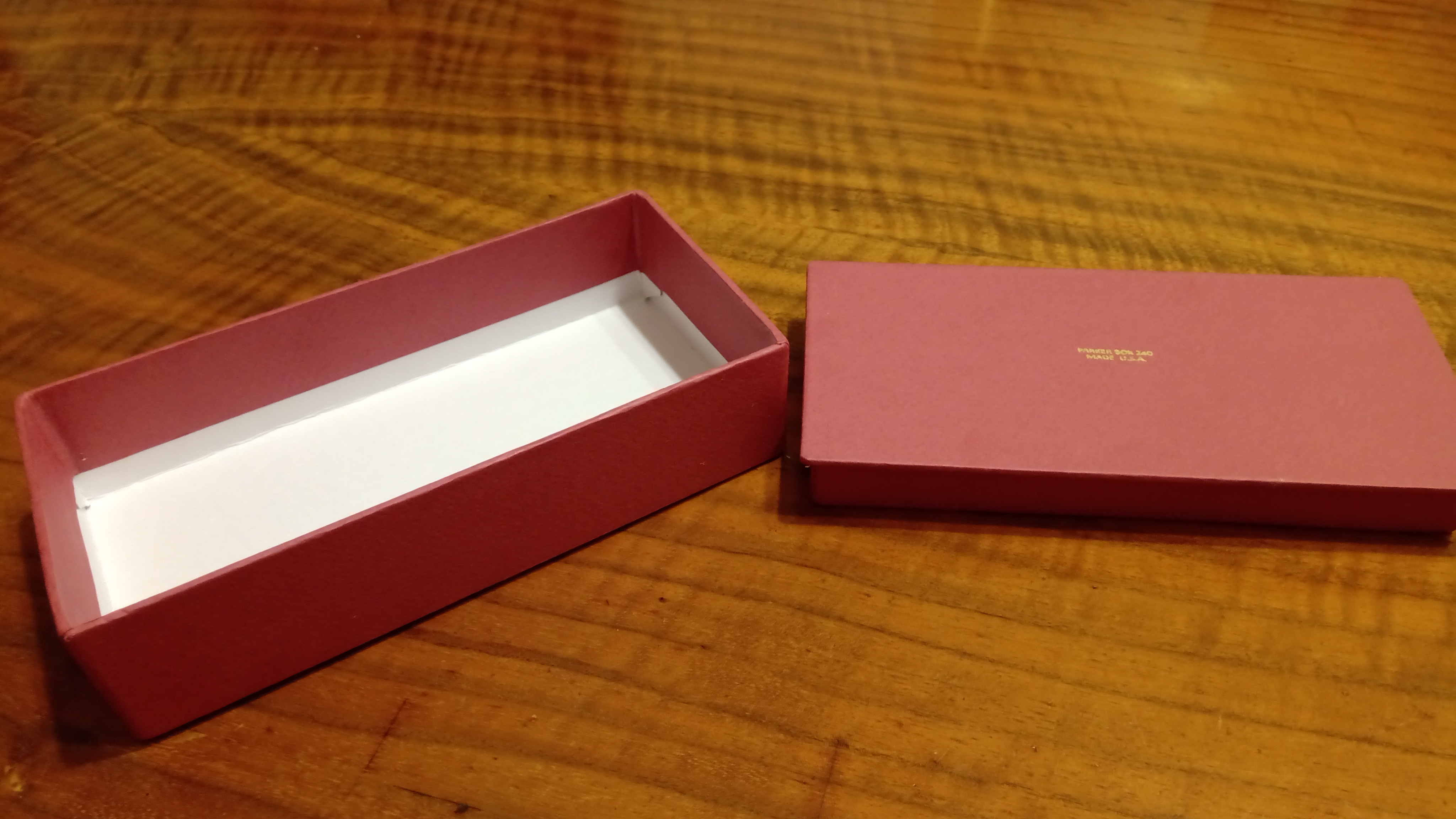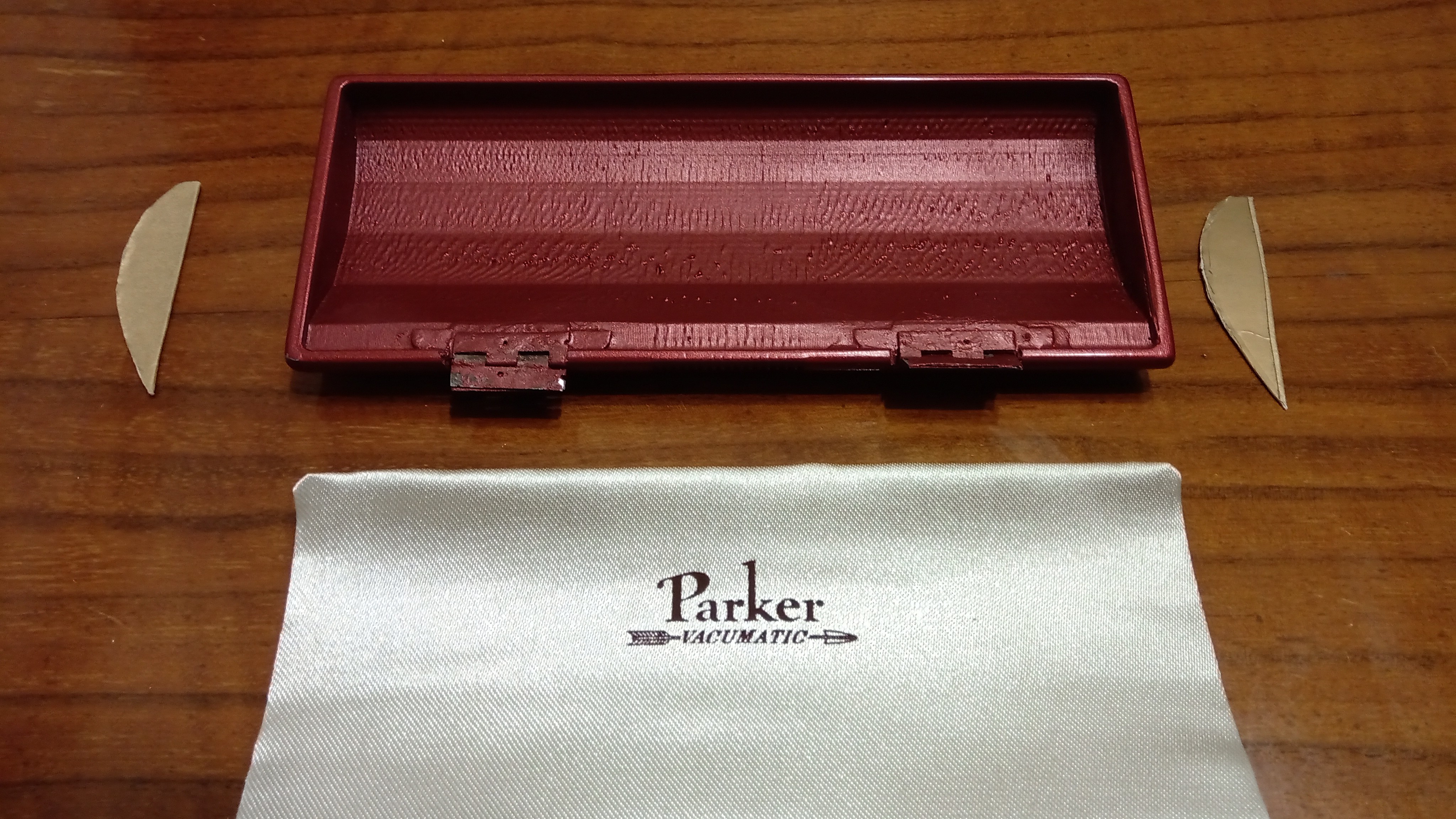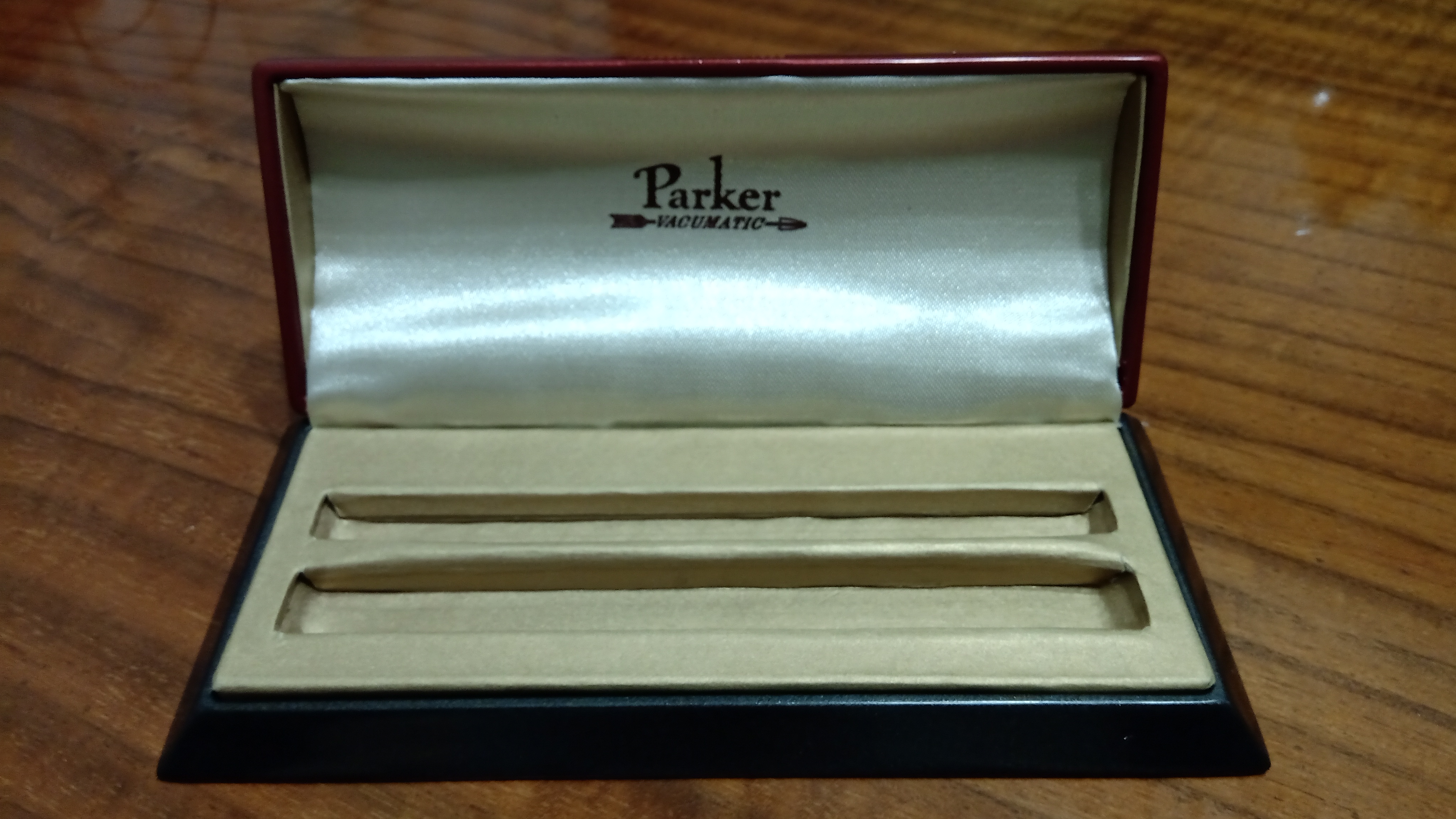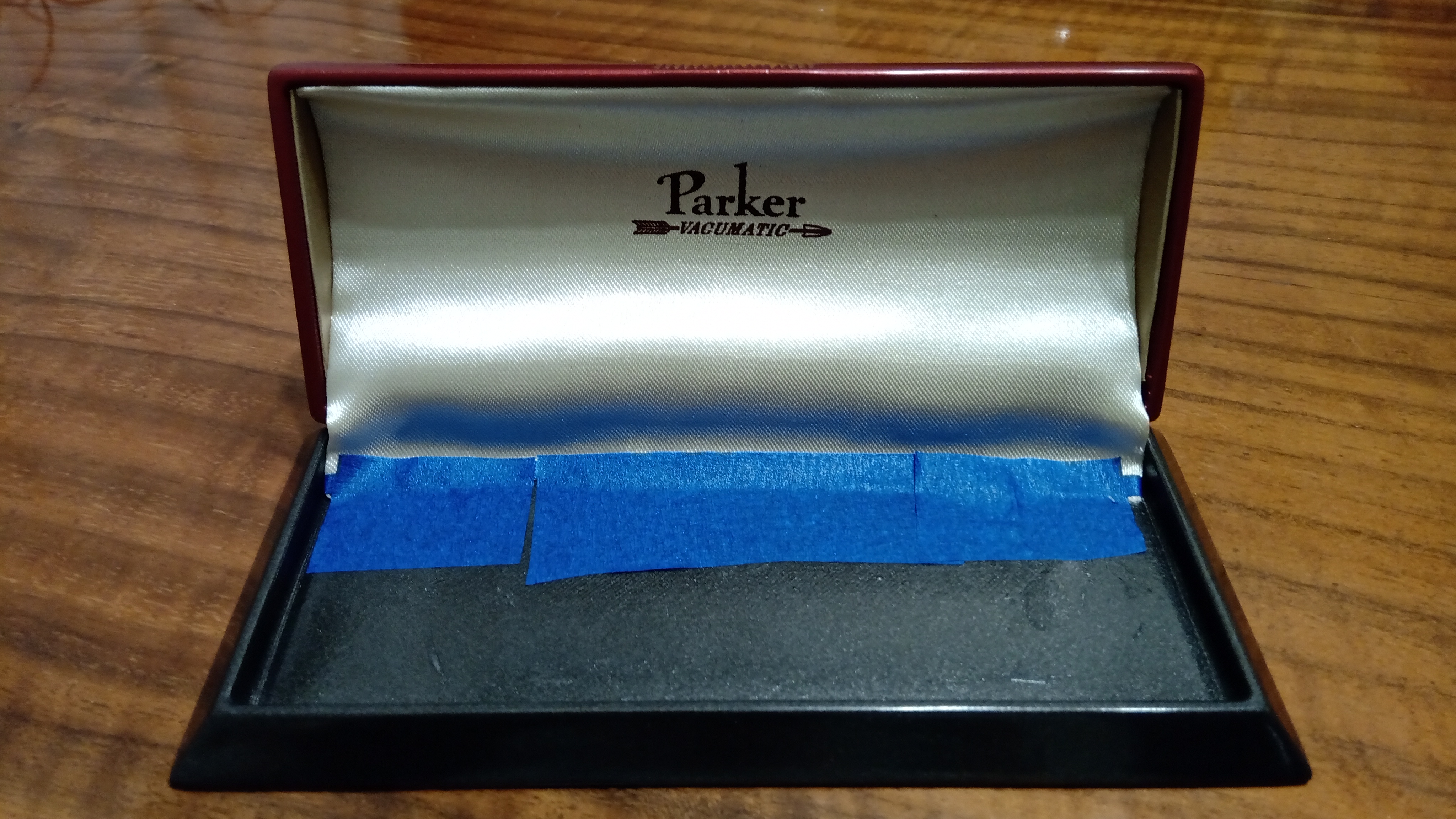 Tra le migliaia di diversi modelli di scatola che Parker aveva progettato e realizzato per le sue penne, aveva conosciuto questa scatola solo attraverso le foto, e le poche che erano state messe in vendita erano totalmente deformate.