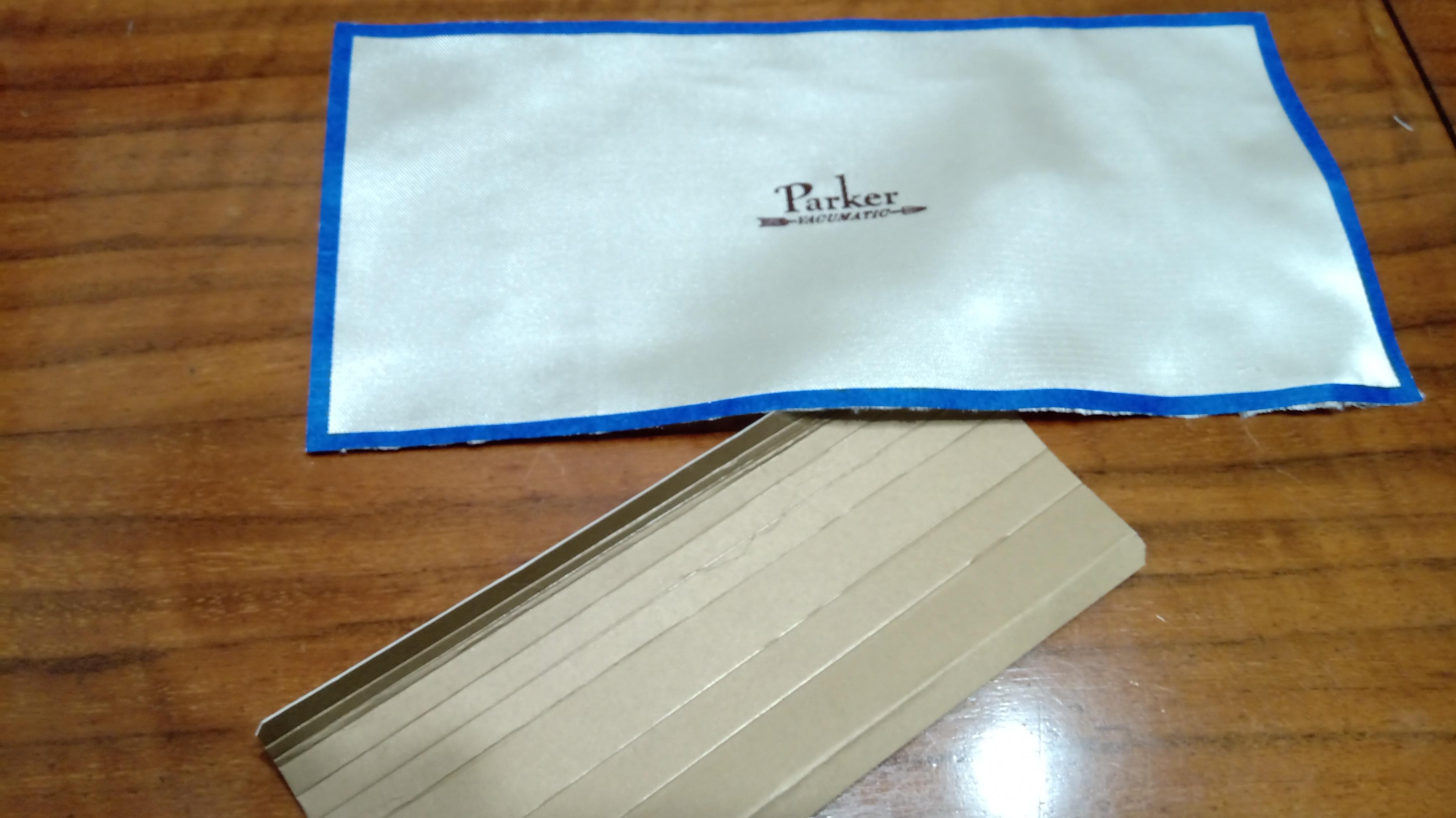 che ricopriremo con un cartoncino goffrato color borravino e sul quale abbiamo precedentemente stampato con inchiostro oro in serigrafia, il logo Parker e le etichette di base...