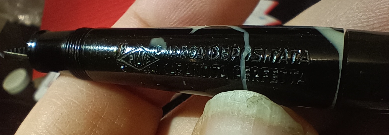 il pennino riporta altre scritte ma non pone particolari problemi; tra l'altro scrive anche bene, l'ho provato per intinzione...