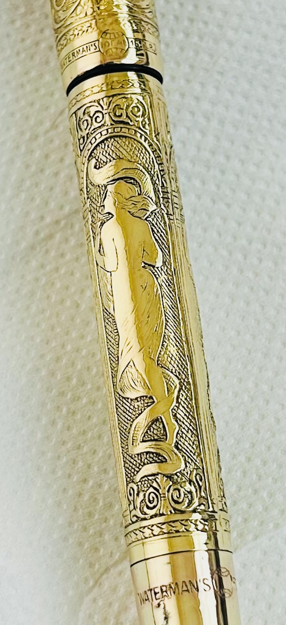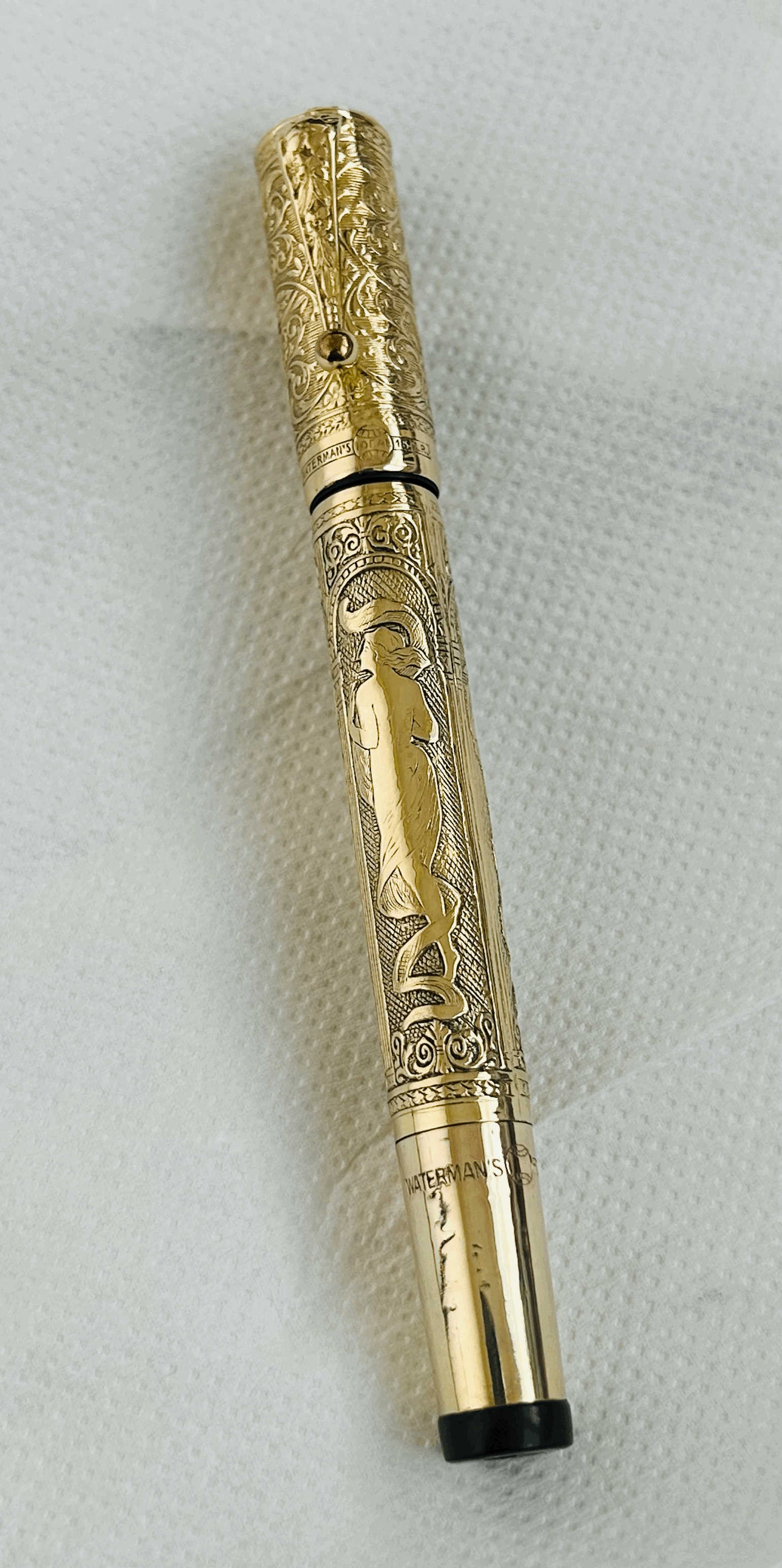 Uno dei disegni sicuramente più iconici realizzato per queste penne, uscito dai laboratori dei f.lli Cavaliere ad opera dell'artigiano Luigi Meazza che ha realizzato alcuni dei più bei rivestimenti ispirati all'iconografia classica.