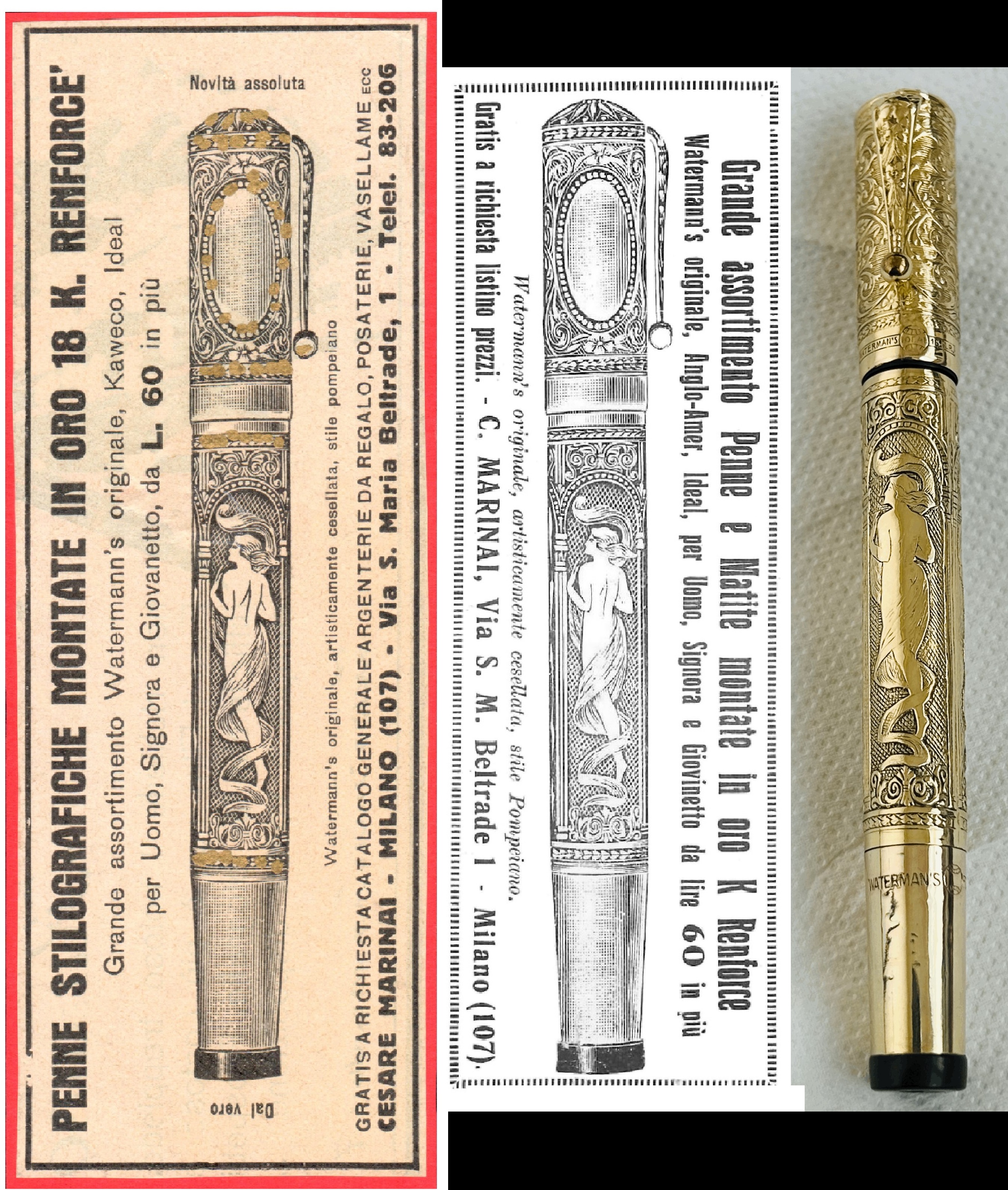 Per cui, o la data-ricordo (18 Luglio 1926) è stata incisa sulla tua penna (almeno) alla fine dell'anno seguente (per commemorare qualcosa di importante per il donatario), oppure le Pompeiane erano già in vendita un anno prima della prima pubblicità disponibile (sul Wiki) che le presenta come "novità assoluta" solo a ottobre 1927.