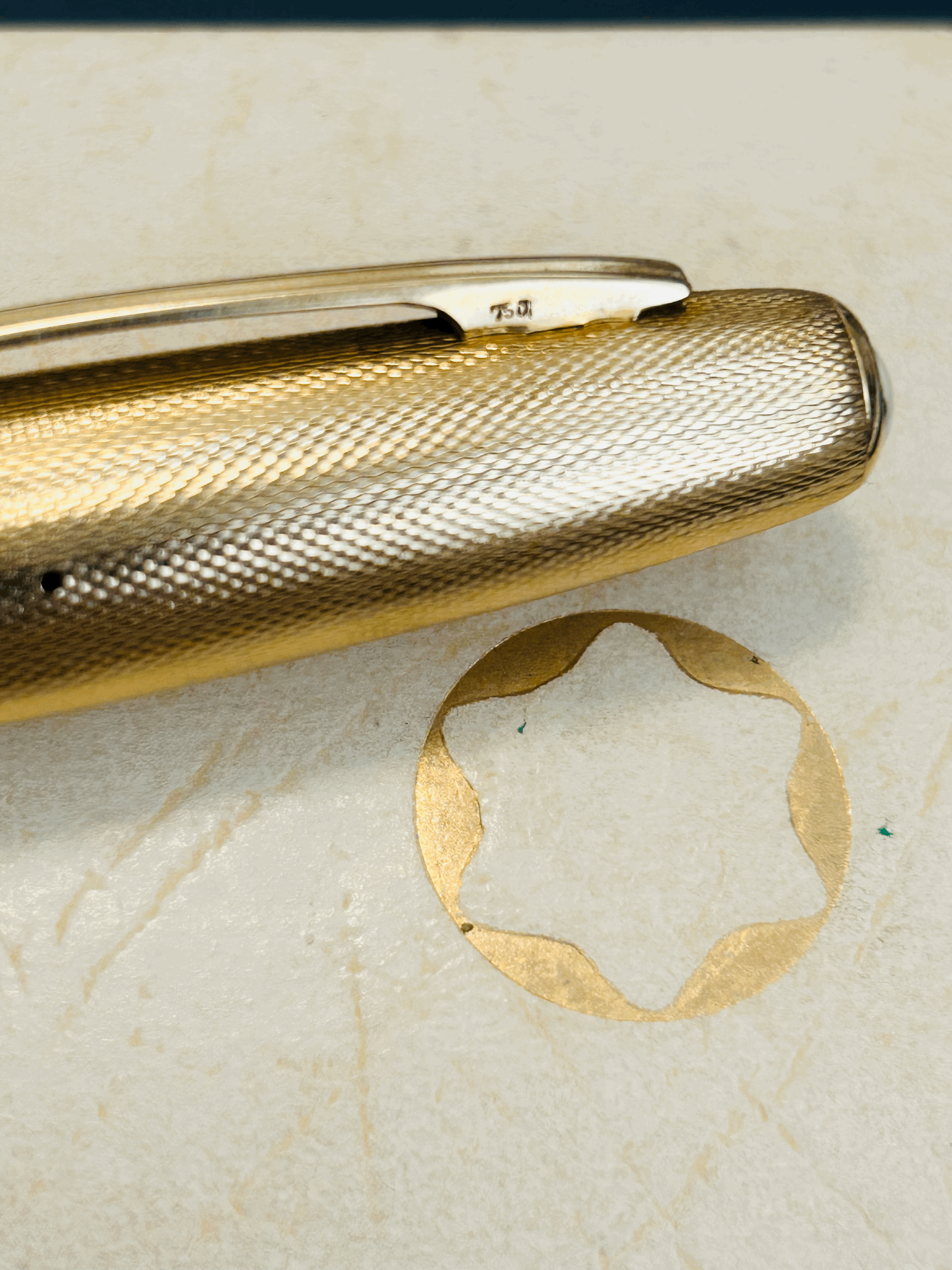 Ho visto pochi esemplari del genere e sempre marcati in oro 585; questo invece riporta la marcatura 750.