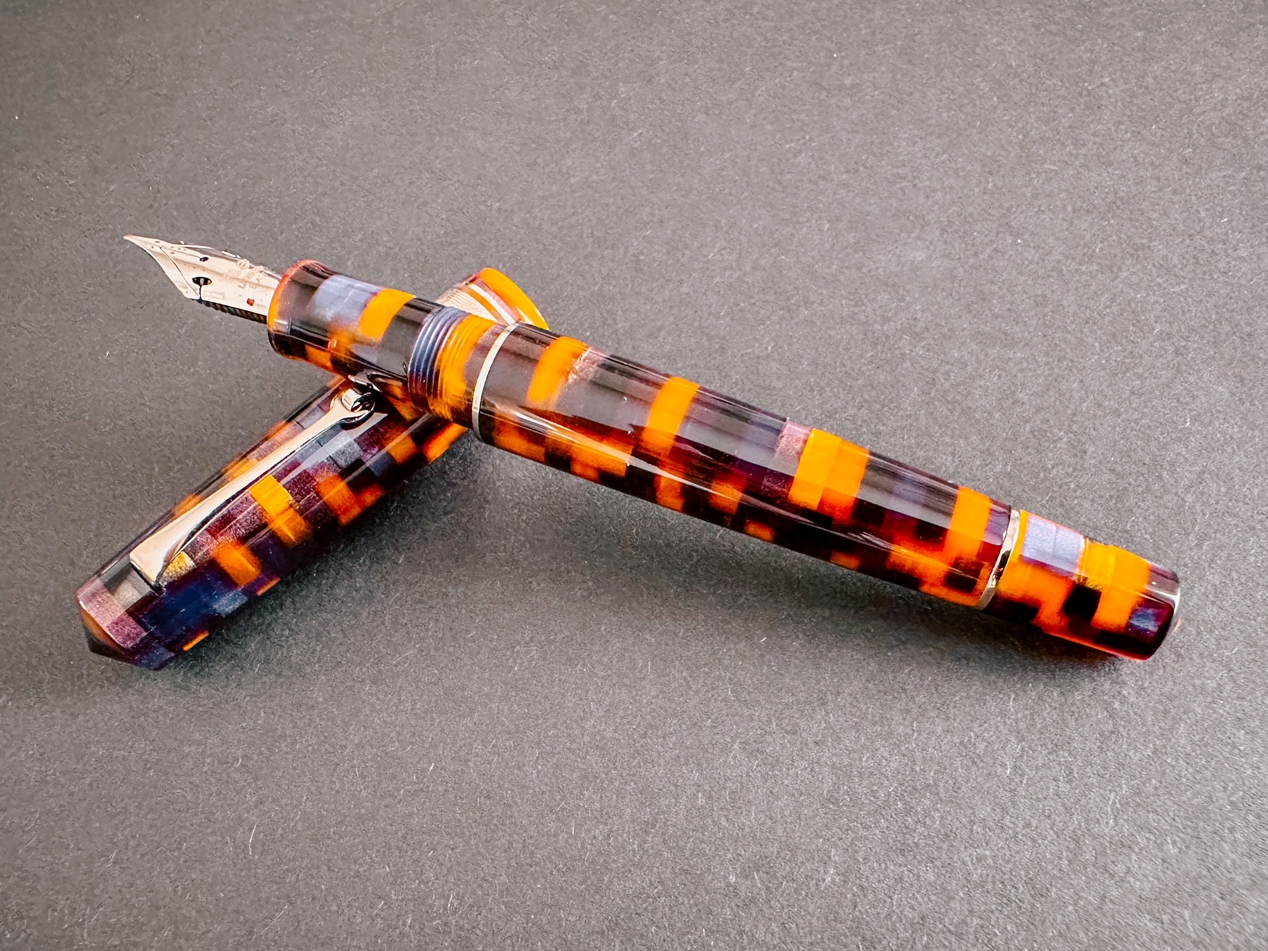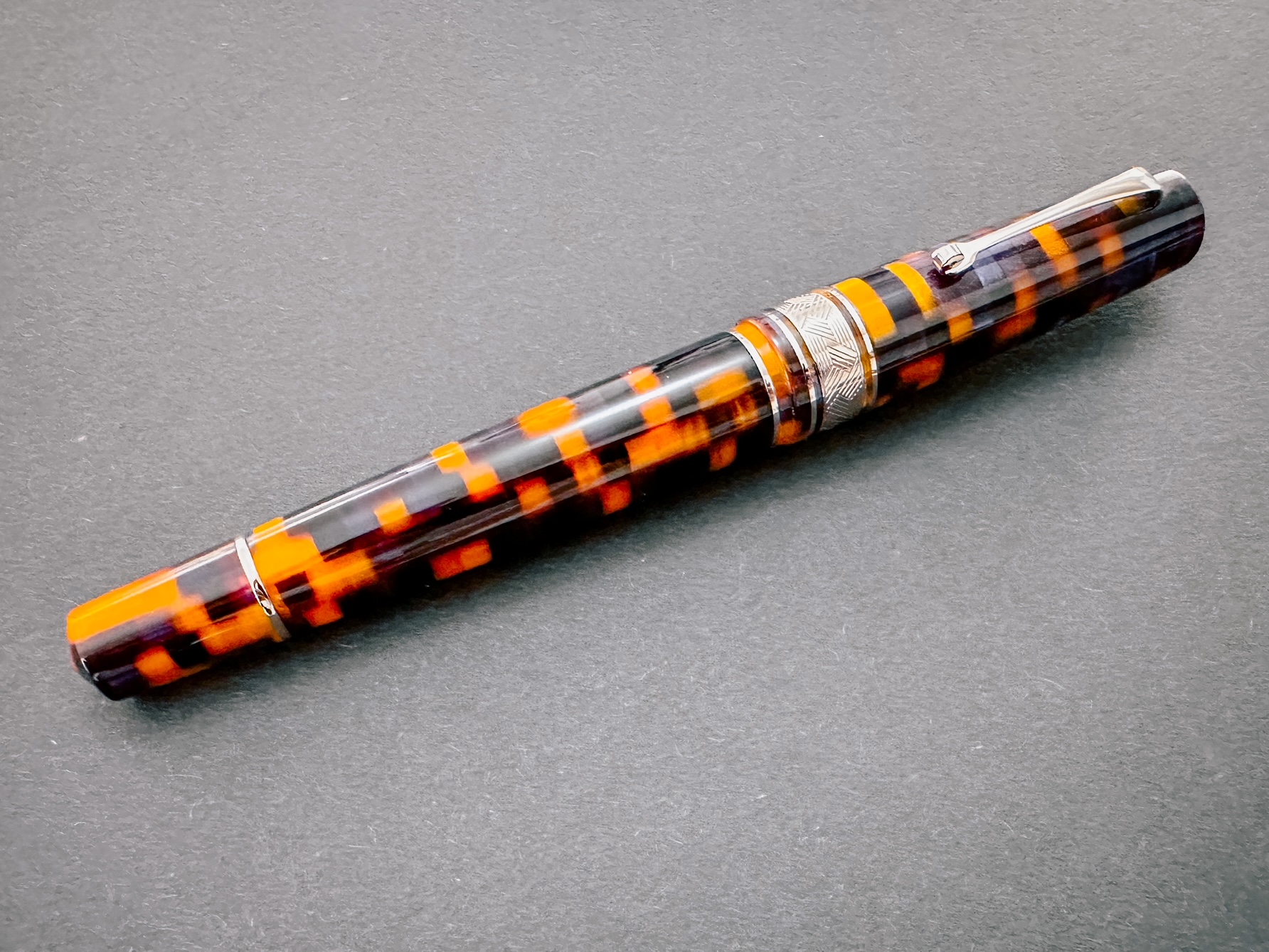 La penna è di grandi dimensioni, nonostante questo, leggera, maneggevole ed estremamente bilanciata, almeno nella mia mano. Dotata di un serbatoio molto capiente (1,5ml) si carica tramite il solito ottimo pistone prodotto in casa.