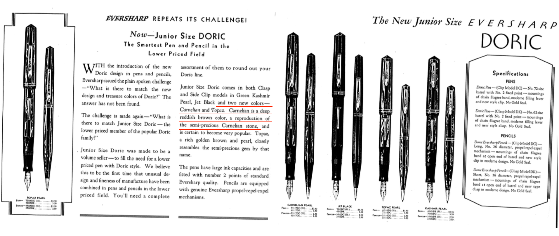 Agli inizi degli anni trenta del novecento Eversharp propone quello che sarà uno dei suoi (tanti) cavalli di battaglia : la Doric .
