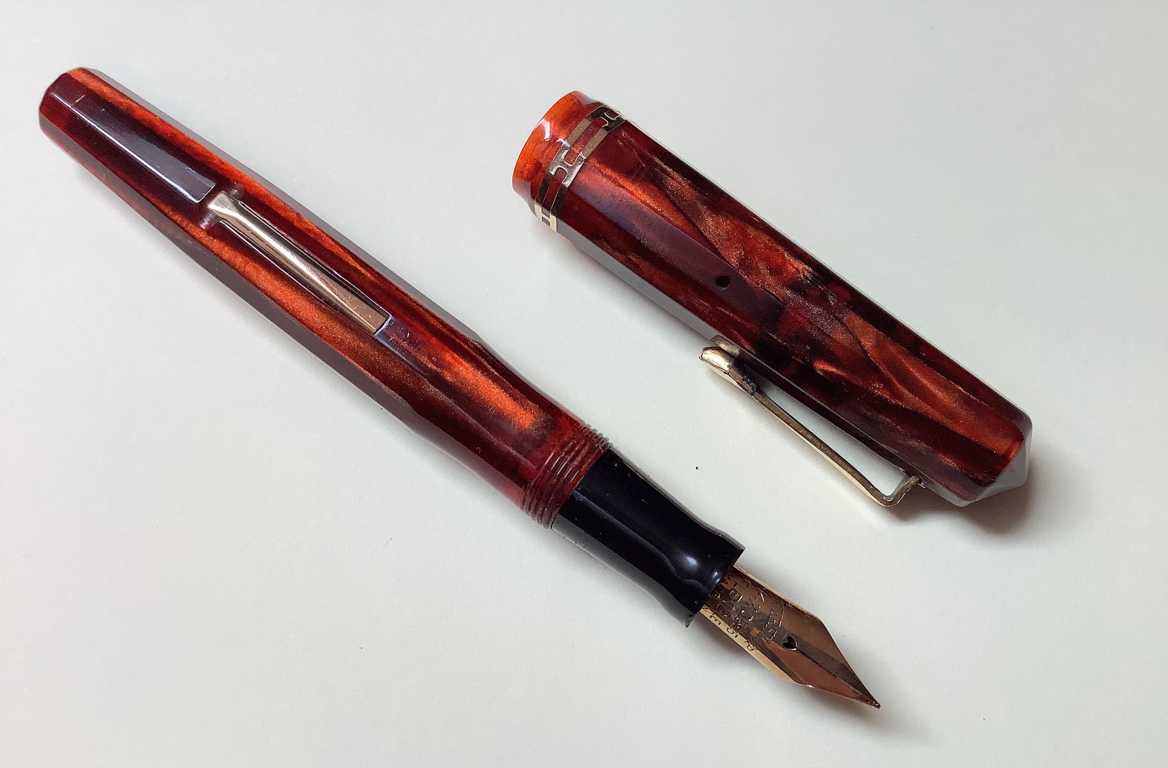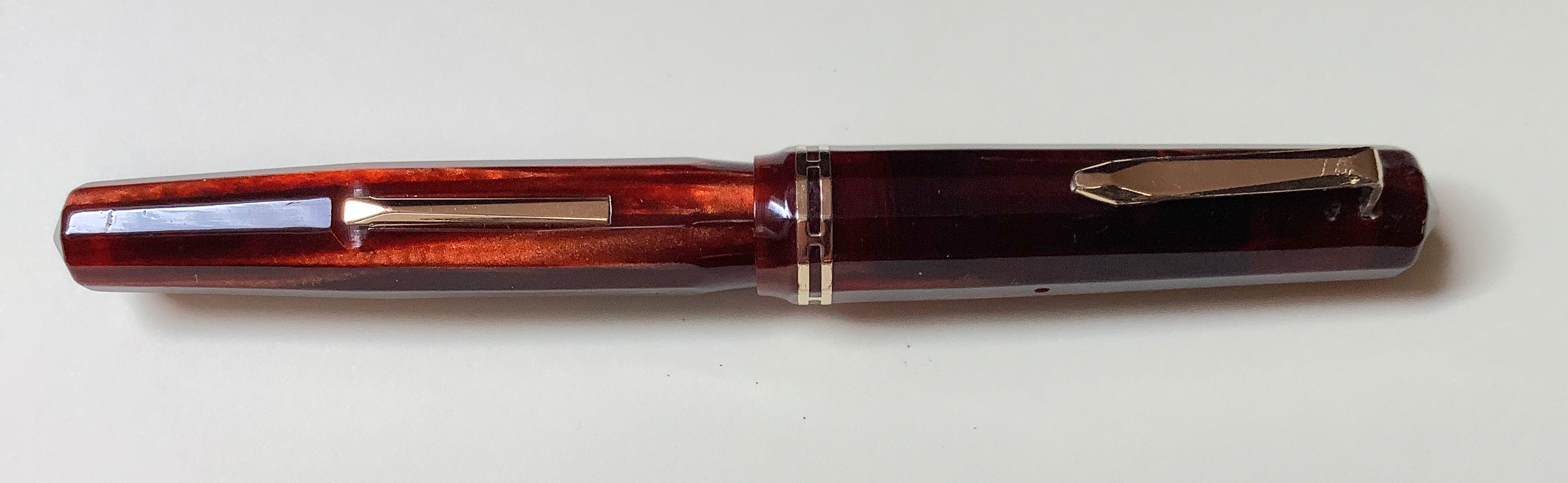Mirko, è davvero di una bellezza mozzafiato questa penna! La celluloide non solo è di un colore davvero bello, ma è anche in condizioni strepitose. Condivido in pieno il giudizio di Simone: Carnelian 10 - Morocco Red 1.