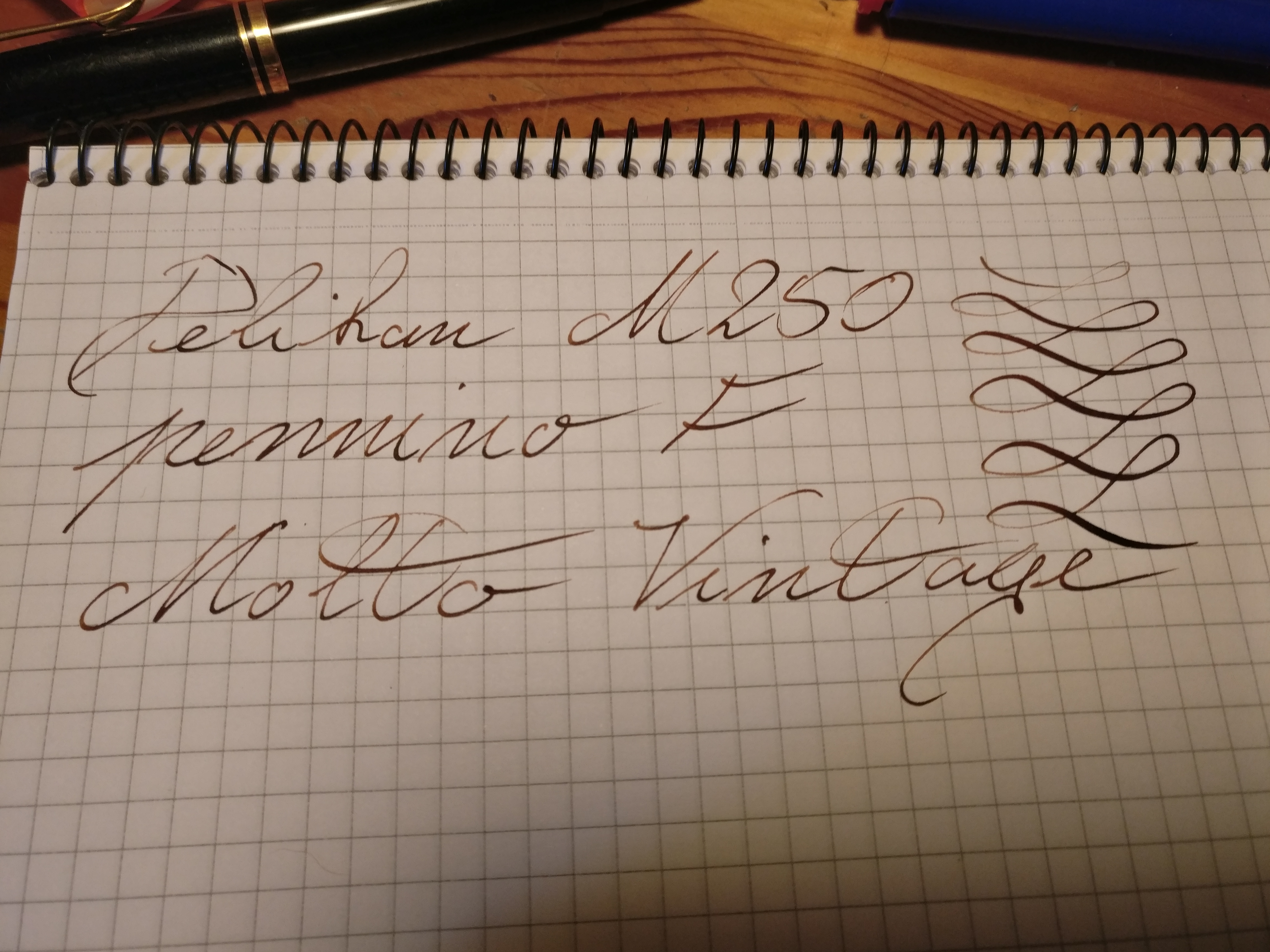 La penna monta in teoria un F a 14kt, ma in pratica parte da un EF a un B+ o oltre sino allo stop inchiostro per il distanziamento dei rebbi...ma quello che mi spiazza è la flessibilità ovvero il range di pressione è minimo e non sono abituato a gestire un pennino simile...non comparabile con le Radius o i W Ideal... poi con Pelikan ero abituato ad un ottimo flusso, scorrevolezza di scrittura e qualche volta ad una leggera flessibilità ...ma mai capitato un flex simile su una Pelikan...