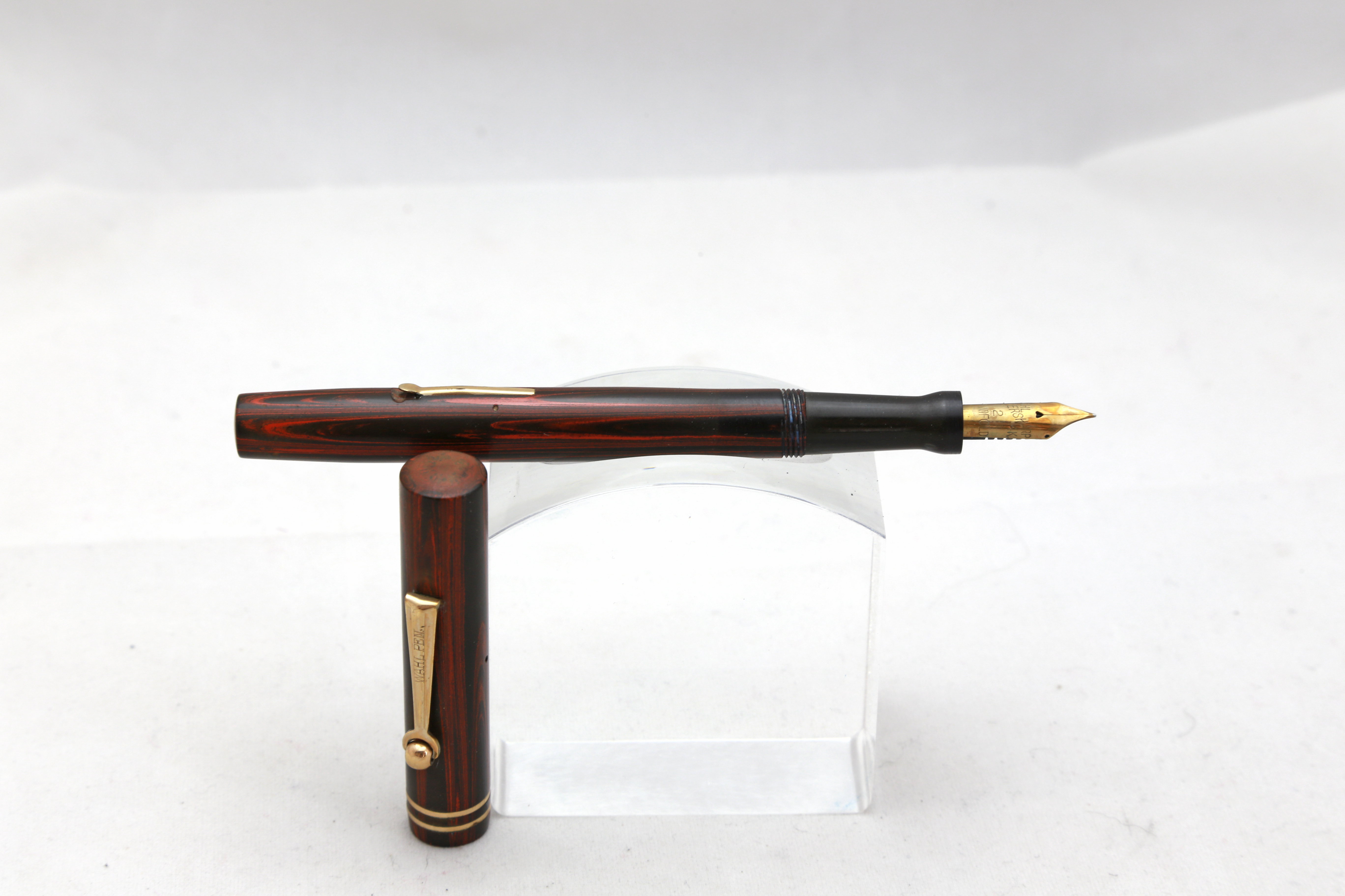 La prima è questa "bestiolina" in ebanite arancio e nera, prodotta nella seconda metà degli anni '20, pennino n. 2, riempimento a levetta, lunghezza cm. 13,09, diametro cm. 1,07, in condizioni direi perfette.