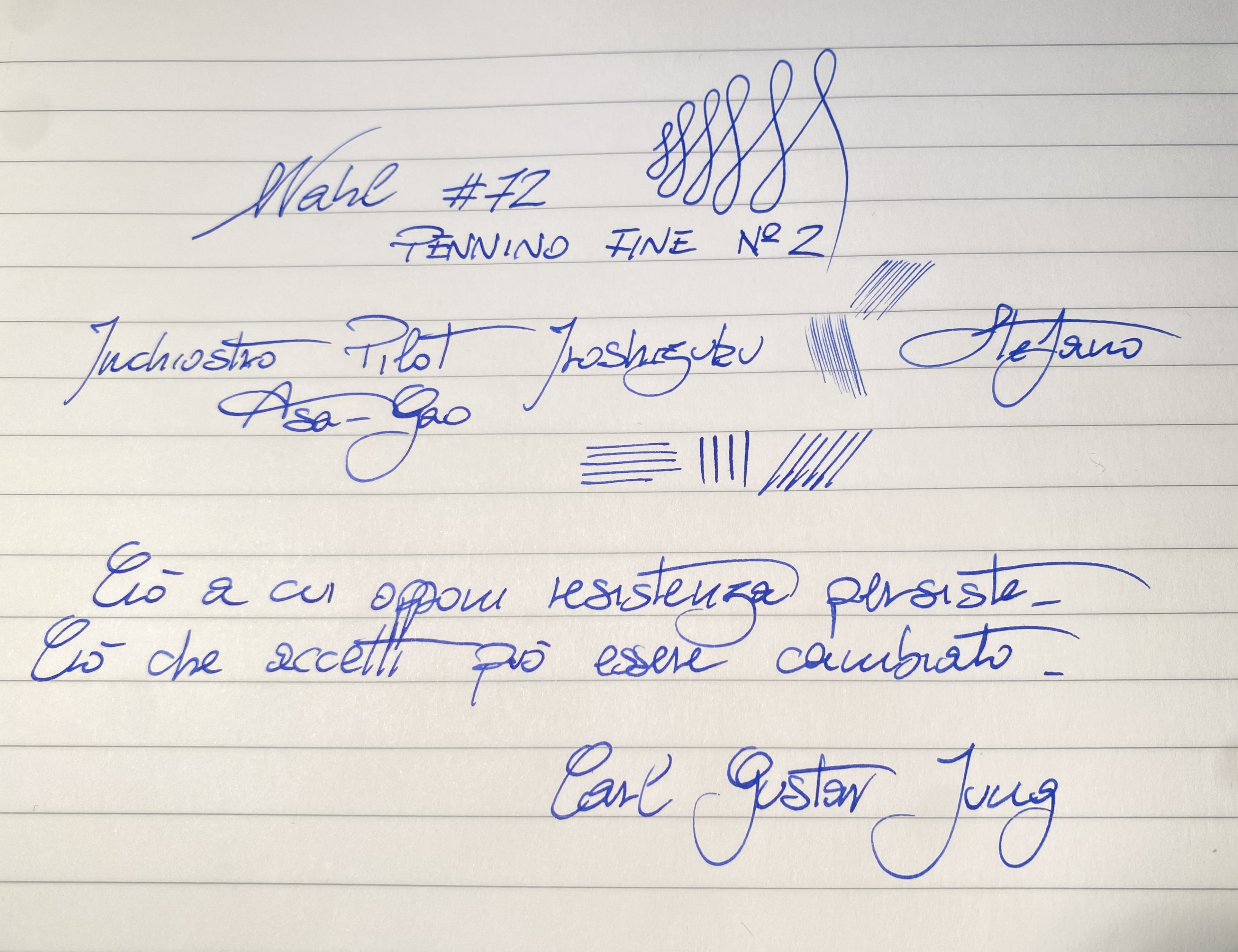 Solo feedback ma è strano, non so spiegare. Probabilmente le mie aspettative erano di trovare un pennino morbido come gli altri, invece l’ho trovato rigido ma un rigido ‘strano’, non scorre come altri… boh…