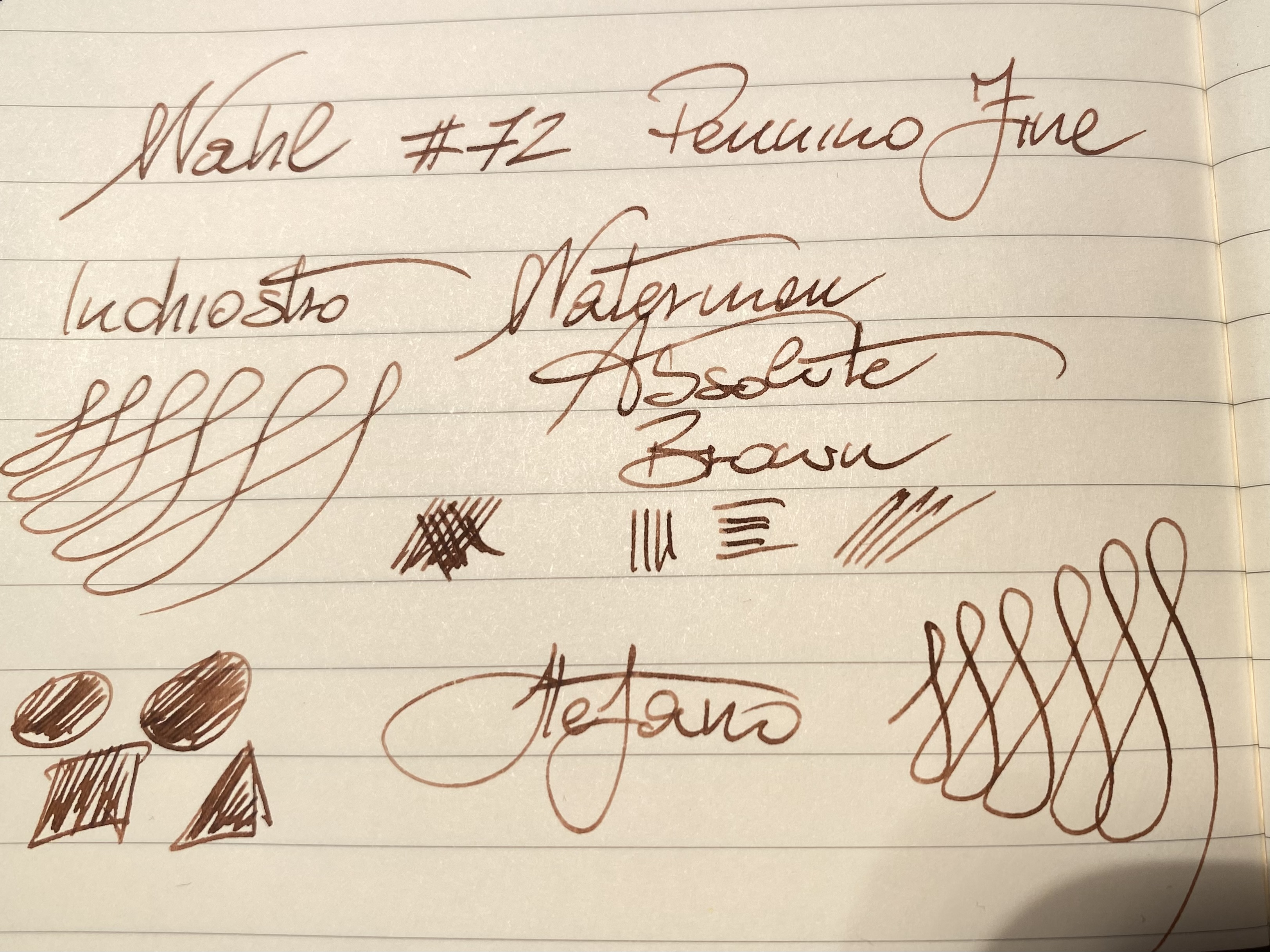 Credo, ad occhio e lente, che l’iridio sia un po’ passato… ora ci provo un waterman ed un kwz, con gli herbin è peggio… altrimenti il solito diamine copper (che se continuo così sta su 11 penne su 13! 😂😂