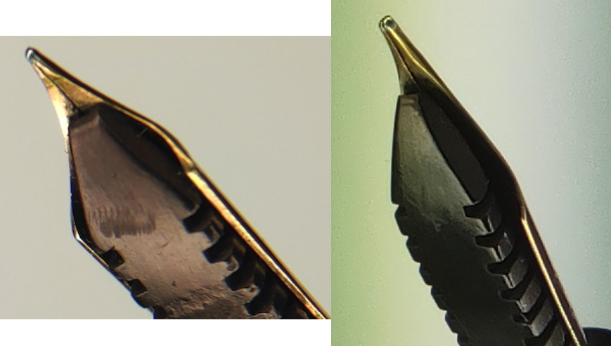 Questi ad esempio sono dei pennini della Skyline, quindi un poco più recenti ; a sinistra rigido (a triangolo equilatero), a destra flessibile (triangolo isoscele).
