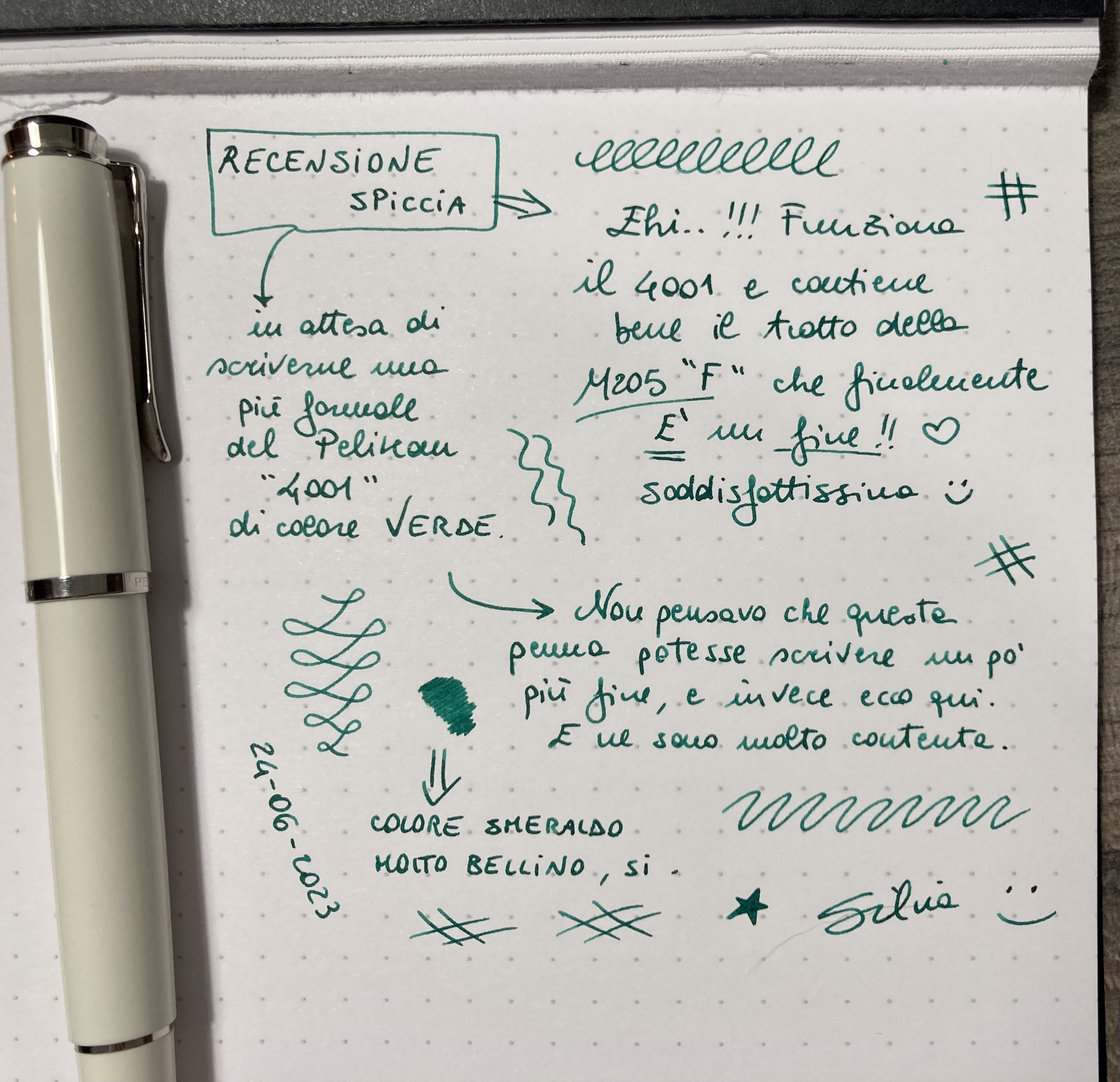L’ho preso proprio per aver letto delle sue caratteristiche di contenimento del tratto di penne altrimenti un po’ abbondanti. Beh funziona! La M205 pennino F con vari inchiostri scrive piuttosto generosa, diciamo come un bell’M. Caricata con il 4001 verde.. è diventata fine sul serio :)