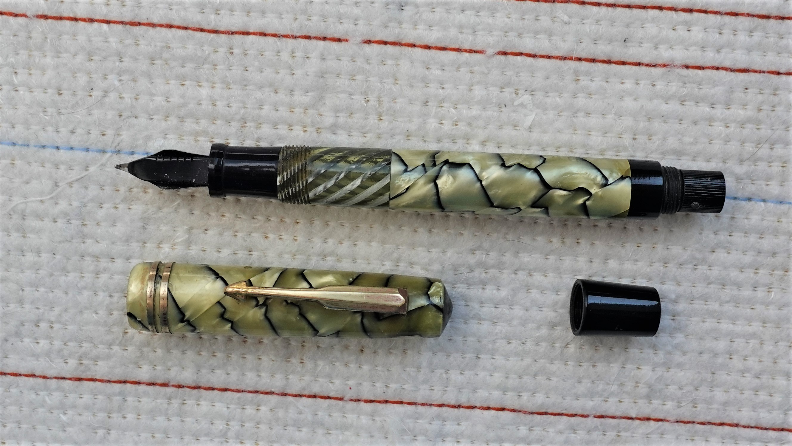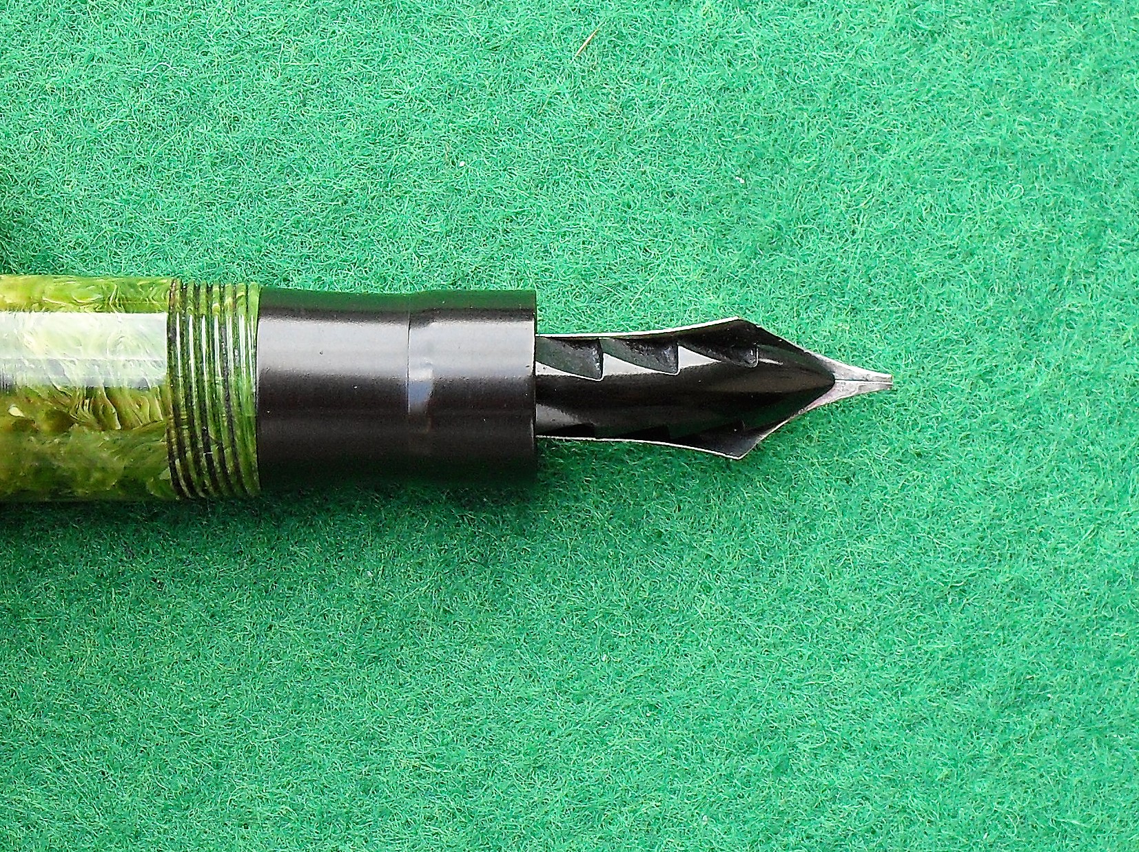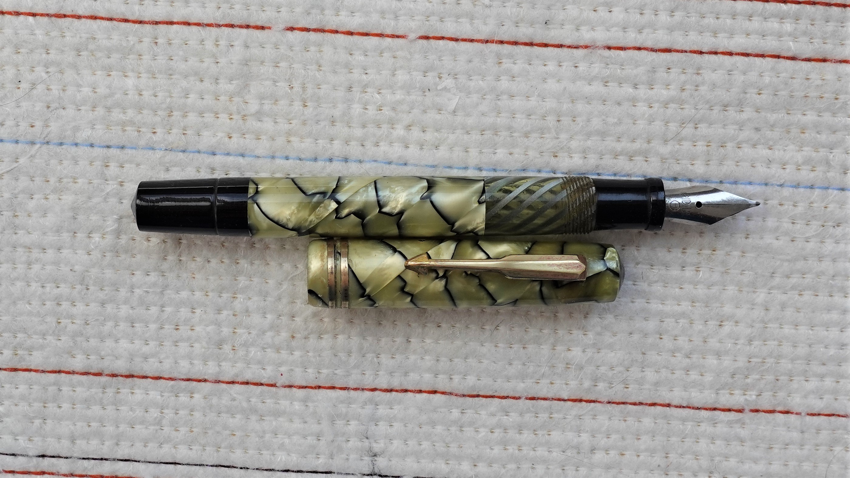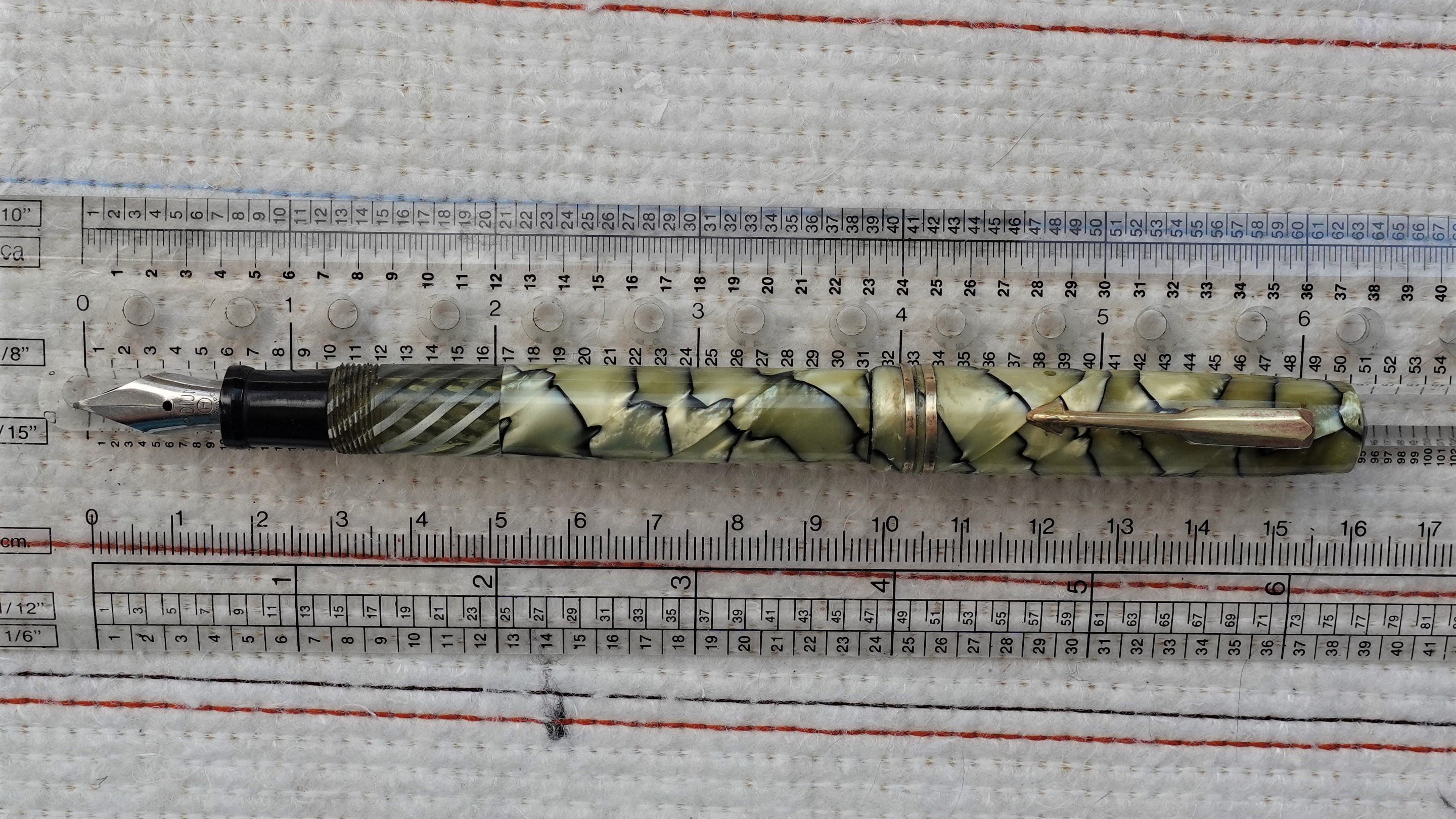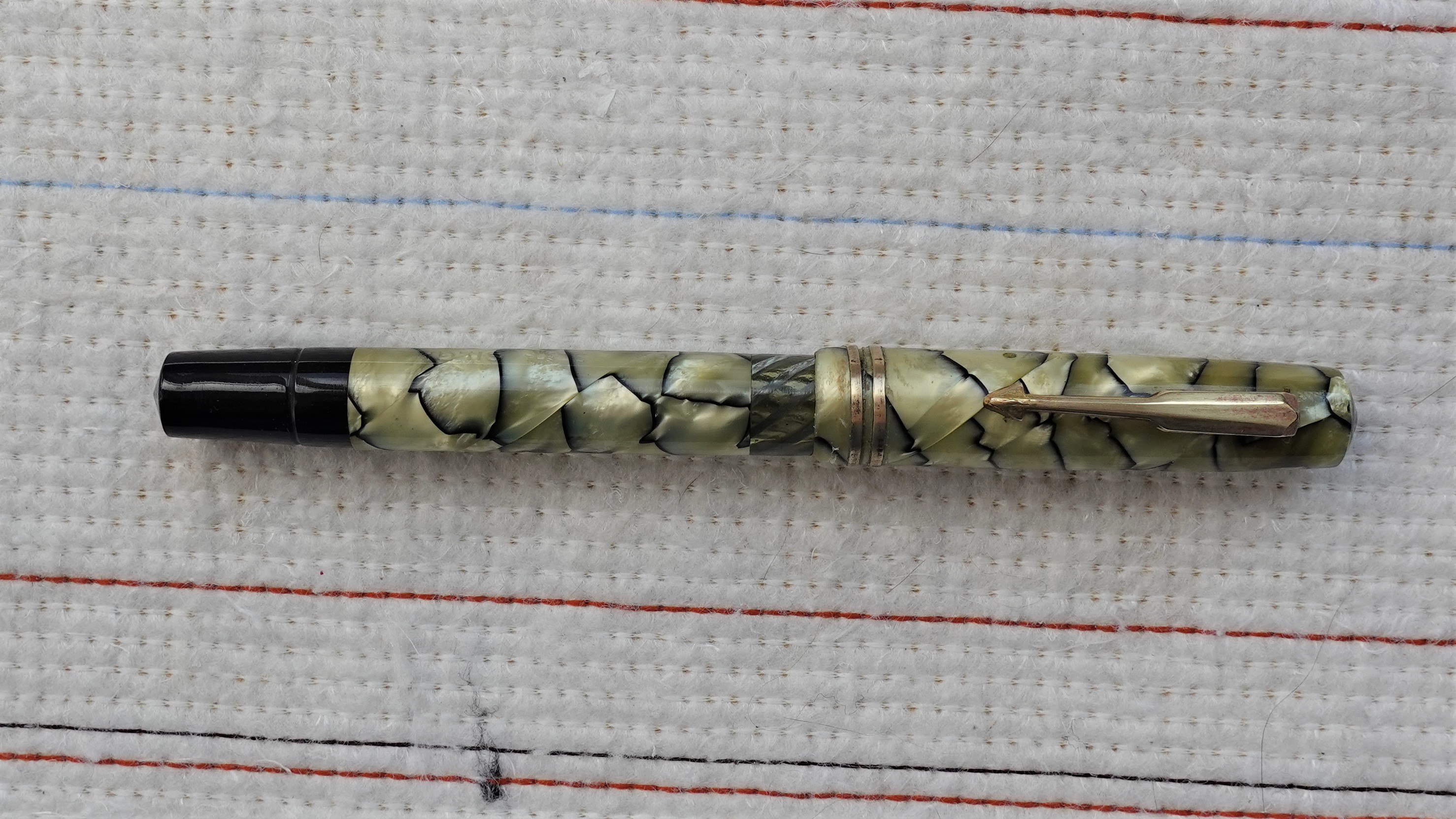 Molto molto bella la celluloide; ho solo qualche perplessità per il fondello di colore nero così lungo : più corto sarebbe stato esteticamente più grazioso, ma son gusti personali (sto cercando qualche scusa del tipo "la volpe e l'uva"...