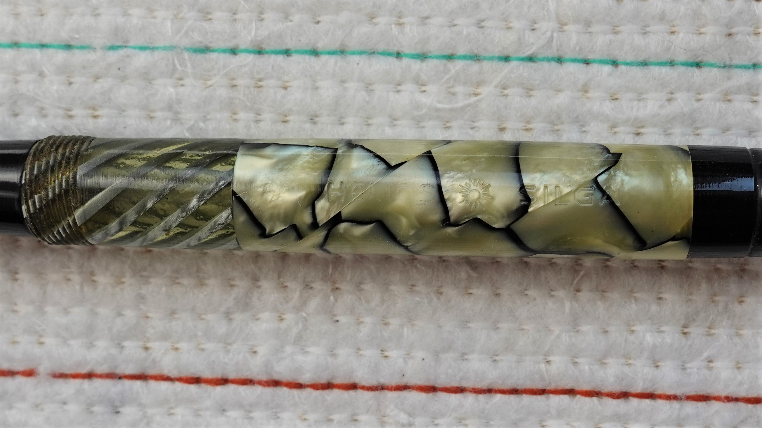 È solo un effetto ottico, oppure la sezione è composta da due parti incollate?A Casirati ha scritto: ↑lunedì 3 luglio 2023, 10:48 A proposito di Helios non nere, ecco la mia: pennino ed alimentatore non sono originali, ma la celluloide è piacevole e le dimensioni importanti.