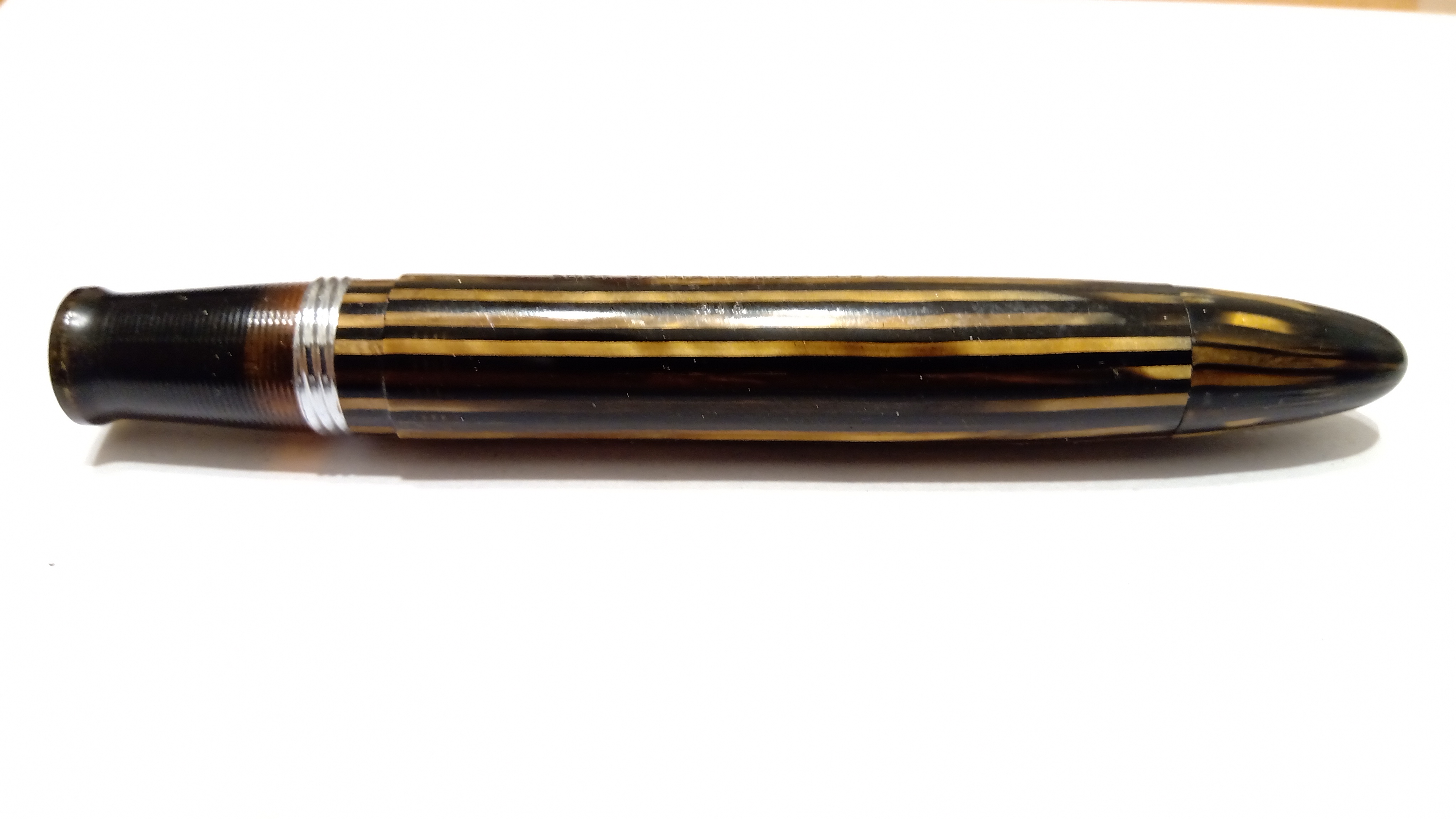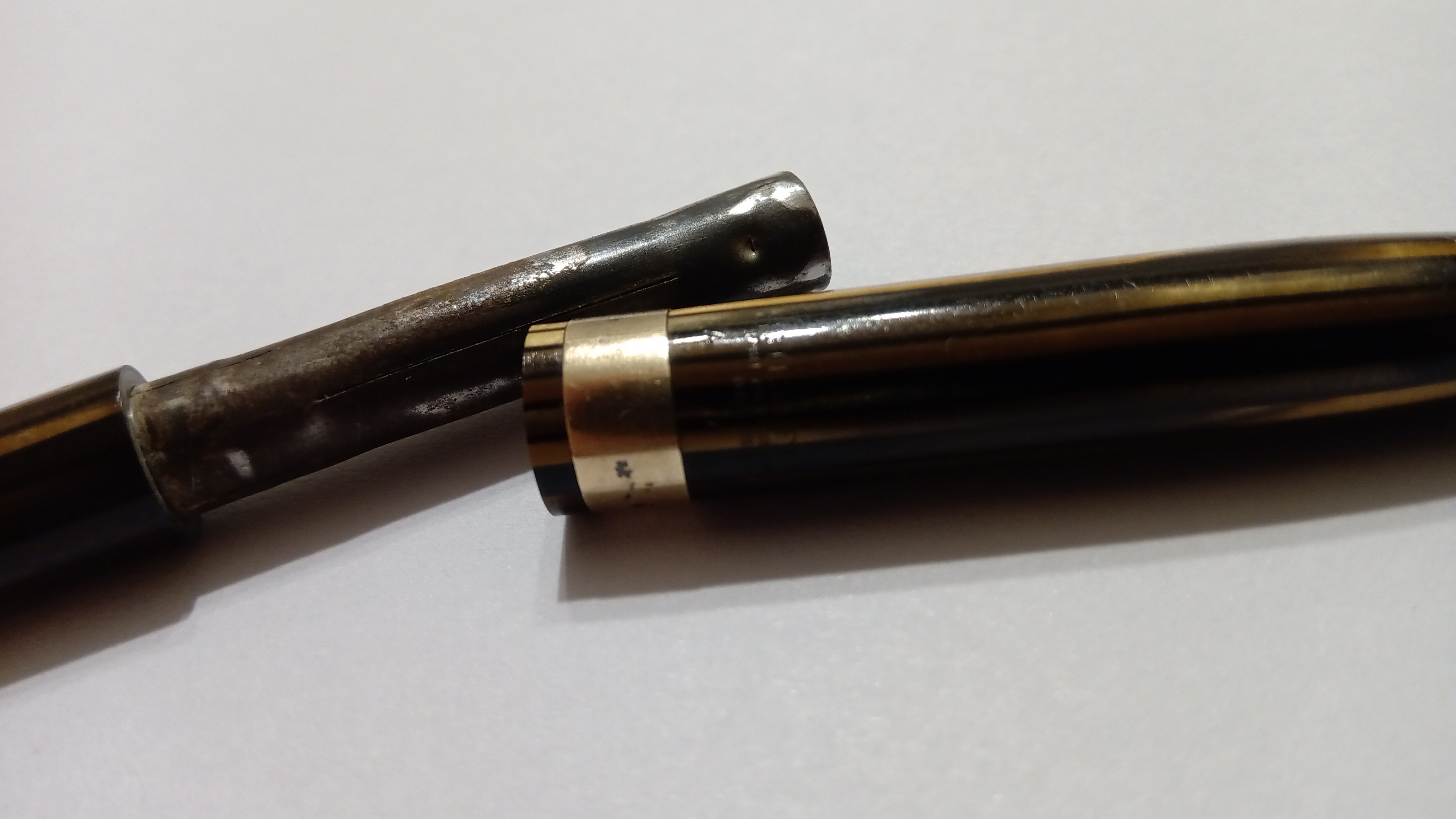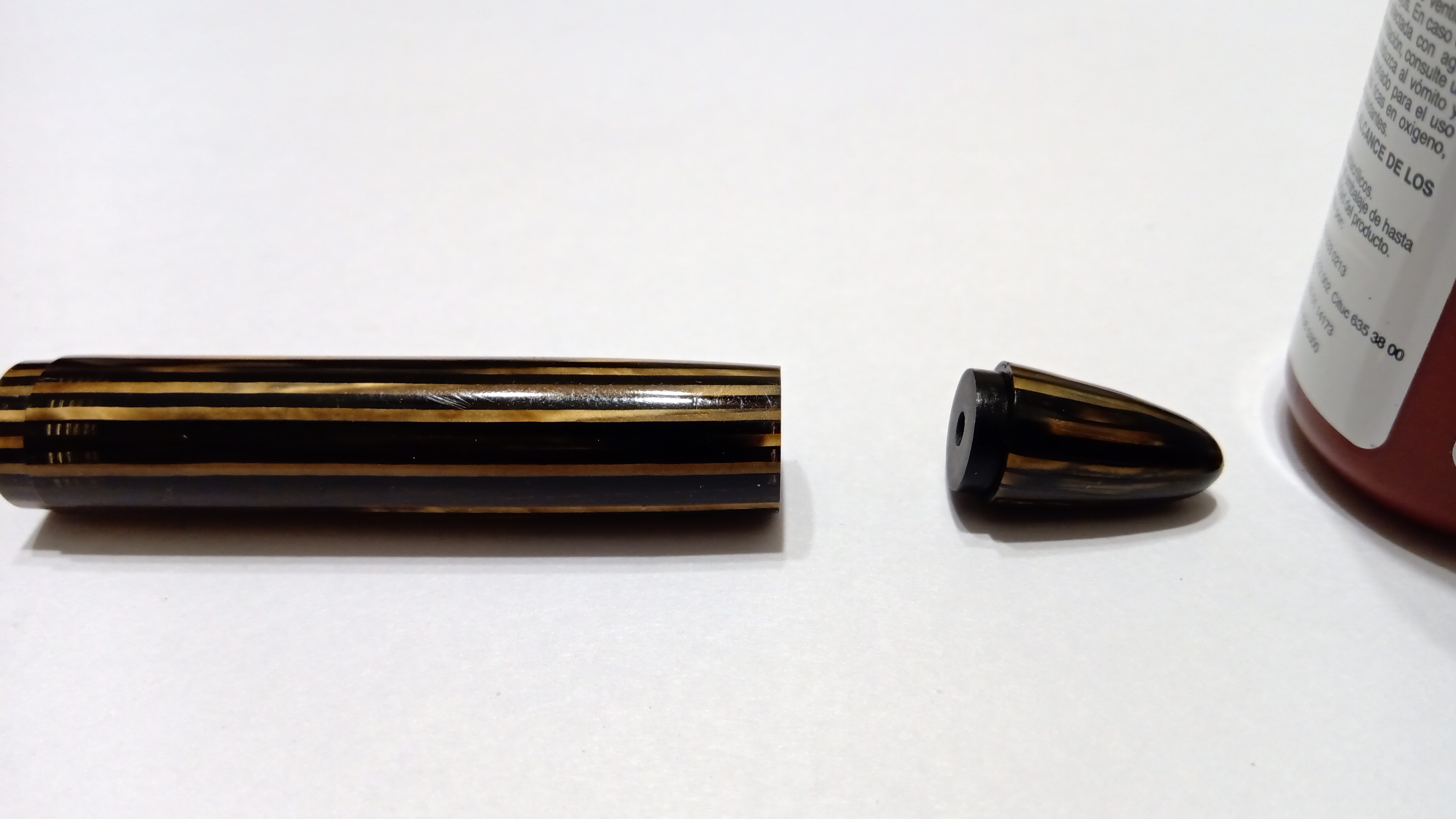 La cosa interessante di questo modello che mi sono dedicato a restaurare, a differenza degli altri, è che invece di avere un corpo o canna trasparente, è stato realizzato con un manicotto interno che entra all'interno della canna. Indagando un po' di più, ho scoperto che secondo gli studiosi in materia, esistono due generazioni di stilografiche sottovuoto, una prima generazione, con il fusto trasparente, e una seconda generazione con un manicotto interno che sembra essere stato realizzato in dal 1947 al 1948, per essere successivamente sostituito dal sistema di riempimento TouchDown nel 1949.