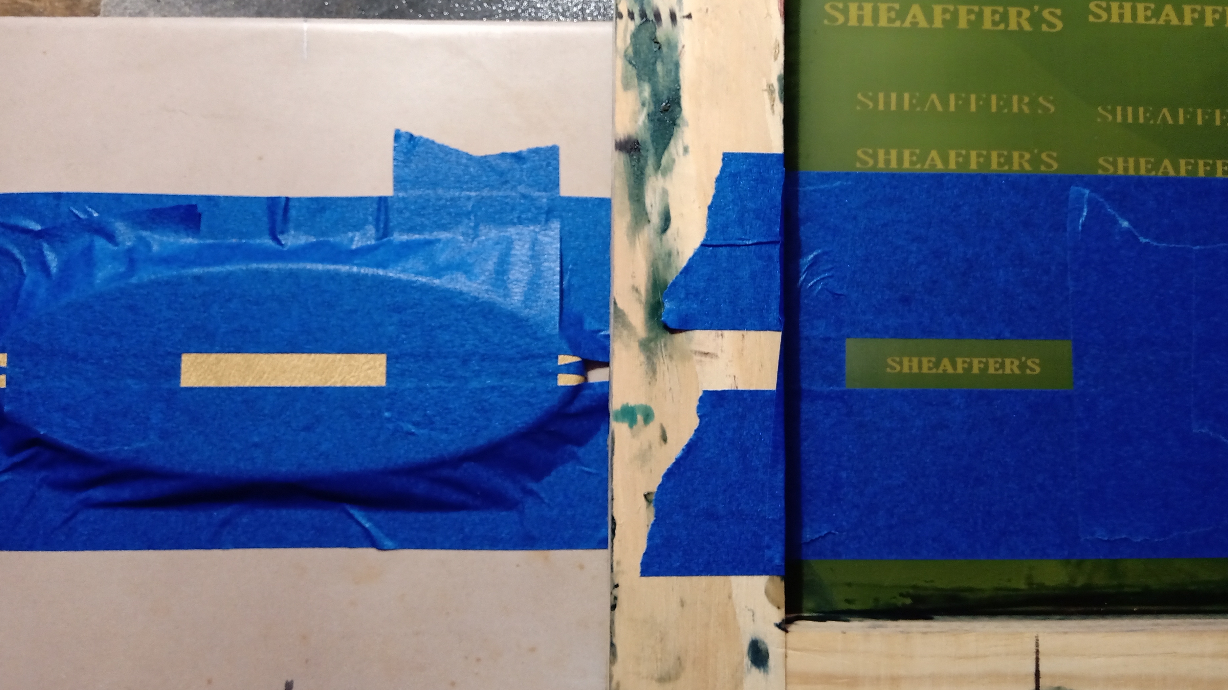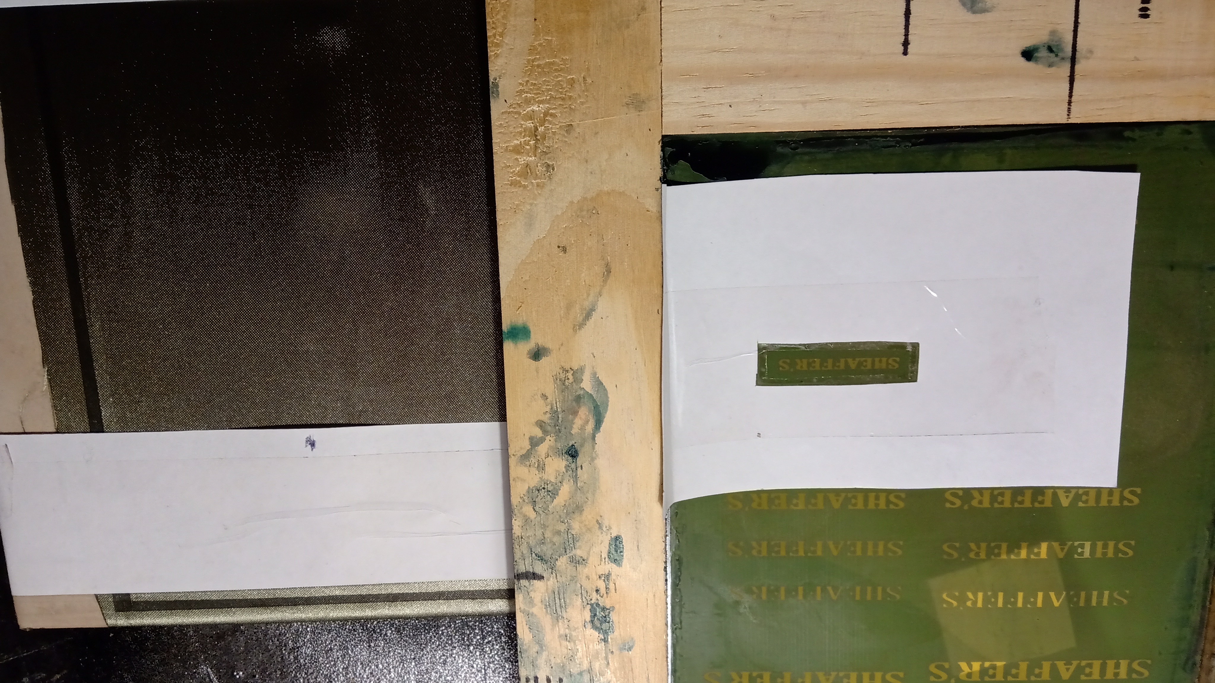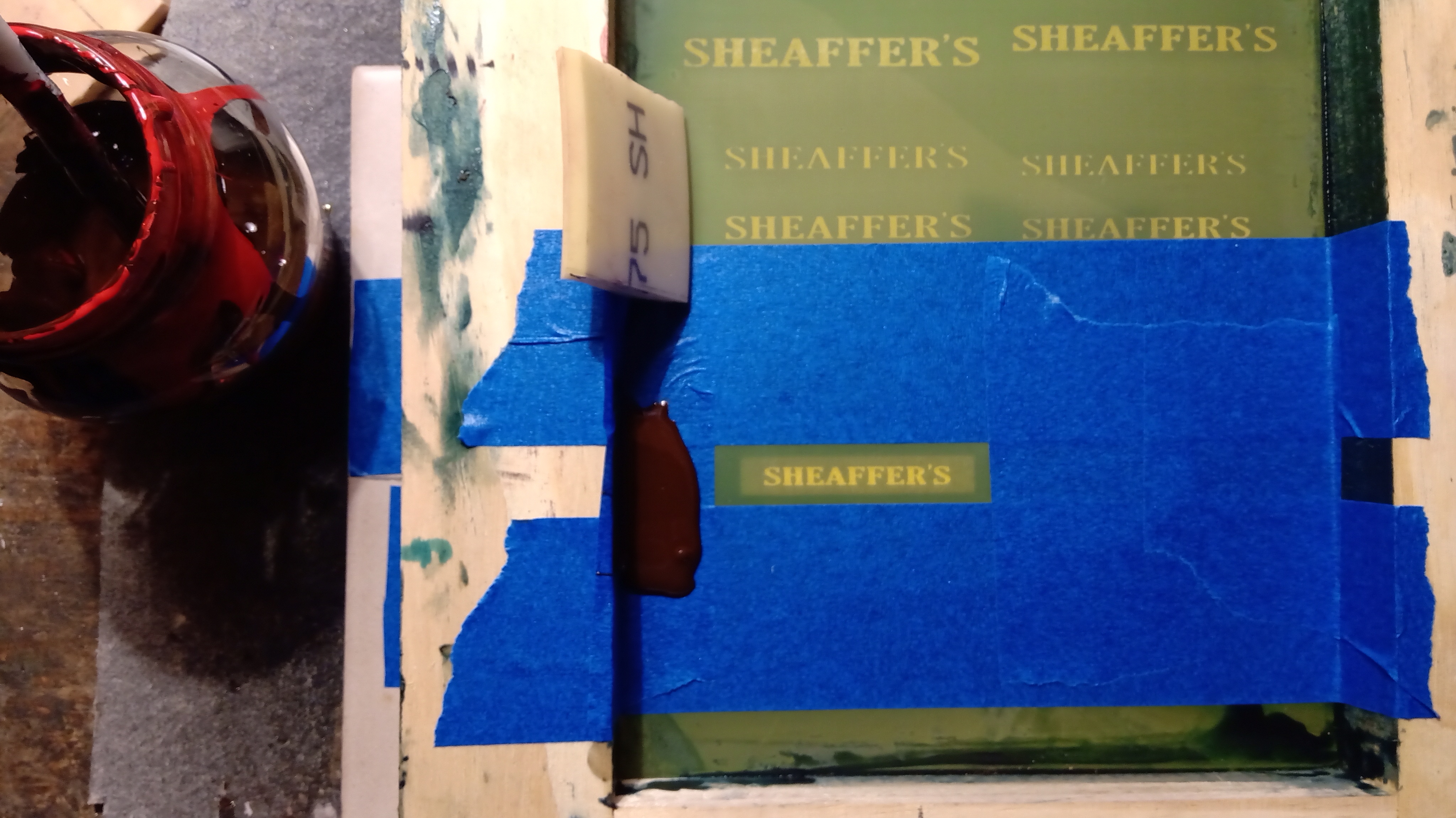 Quello che una volta mascherato e posizionato sul mosto maschile, servito a trasferire il logo stampando con inchiostro di vinile...