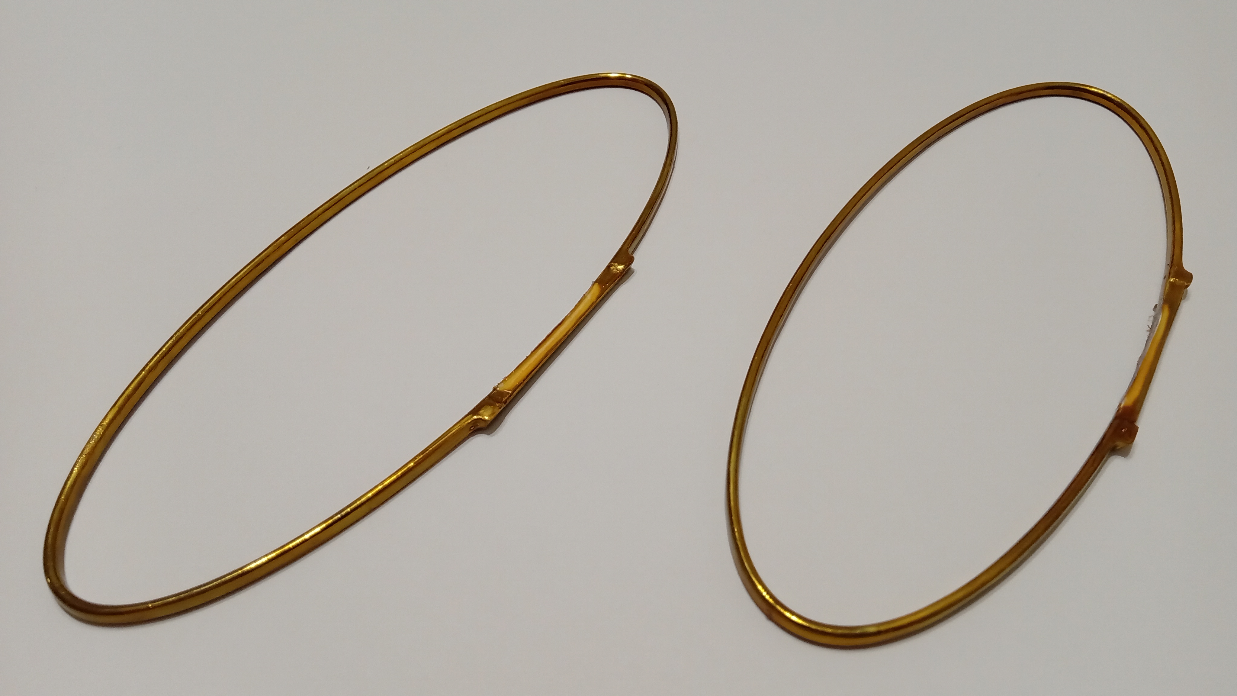 Nel caso dei bordi, attraverso un processo di deposizione e flambé, sono stati cromati e poi virati con una laccatura color bronzo...