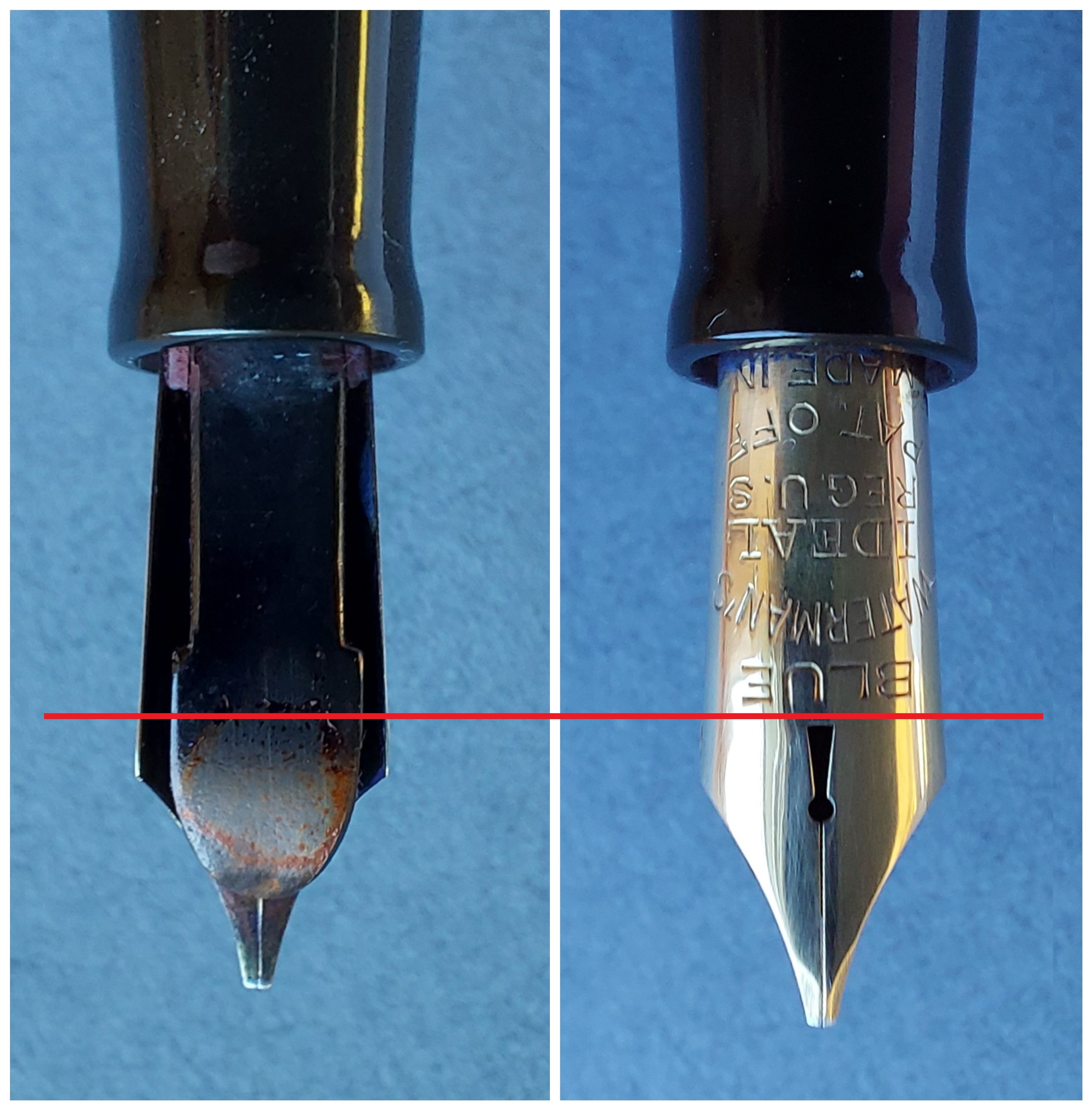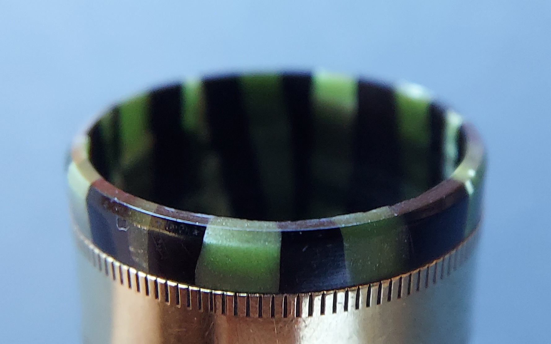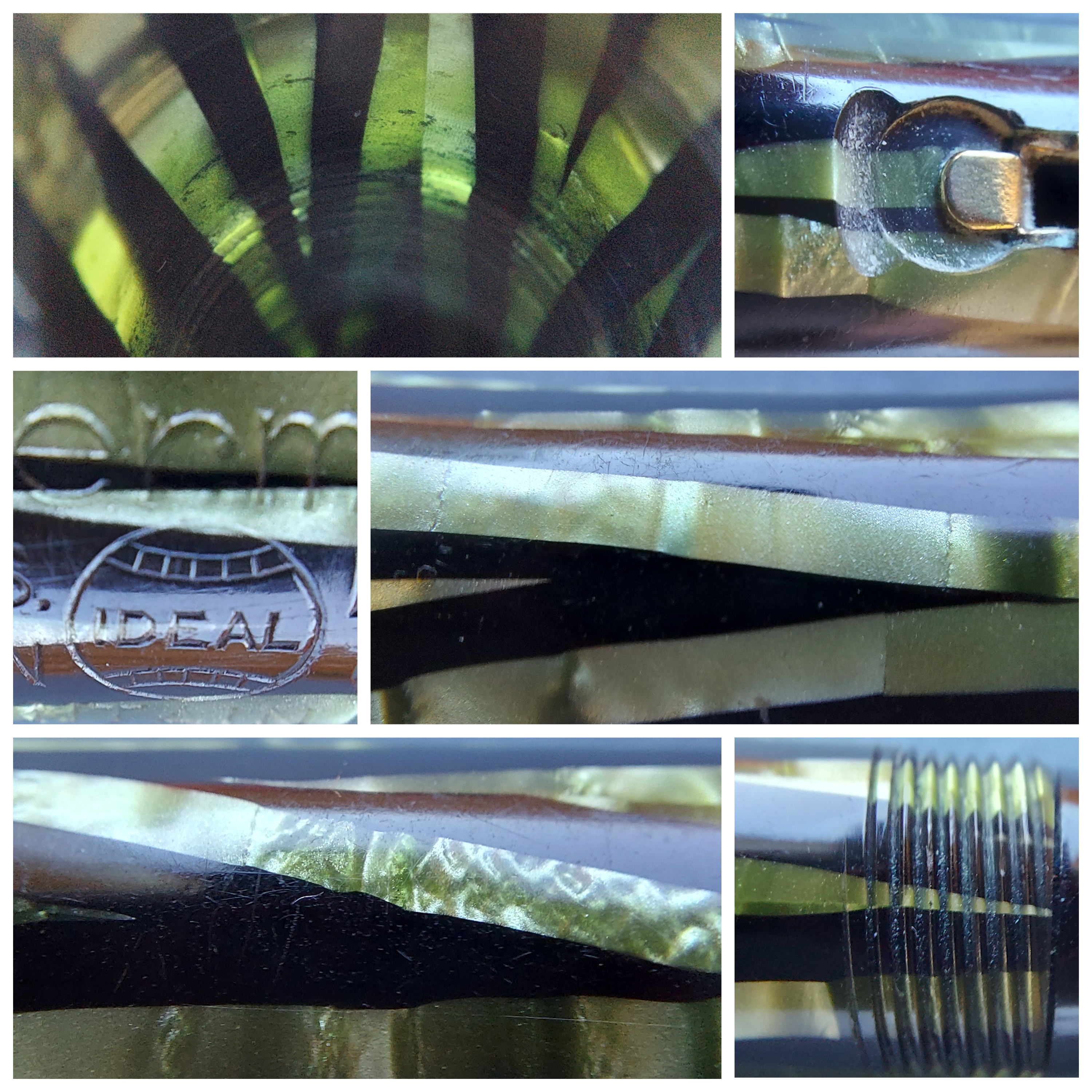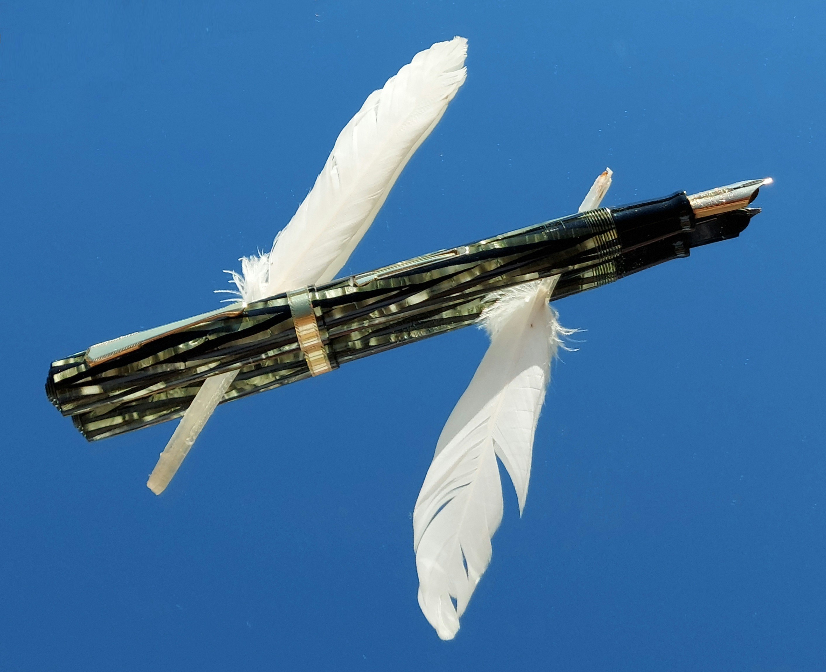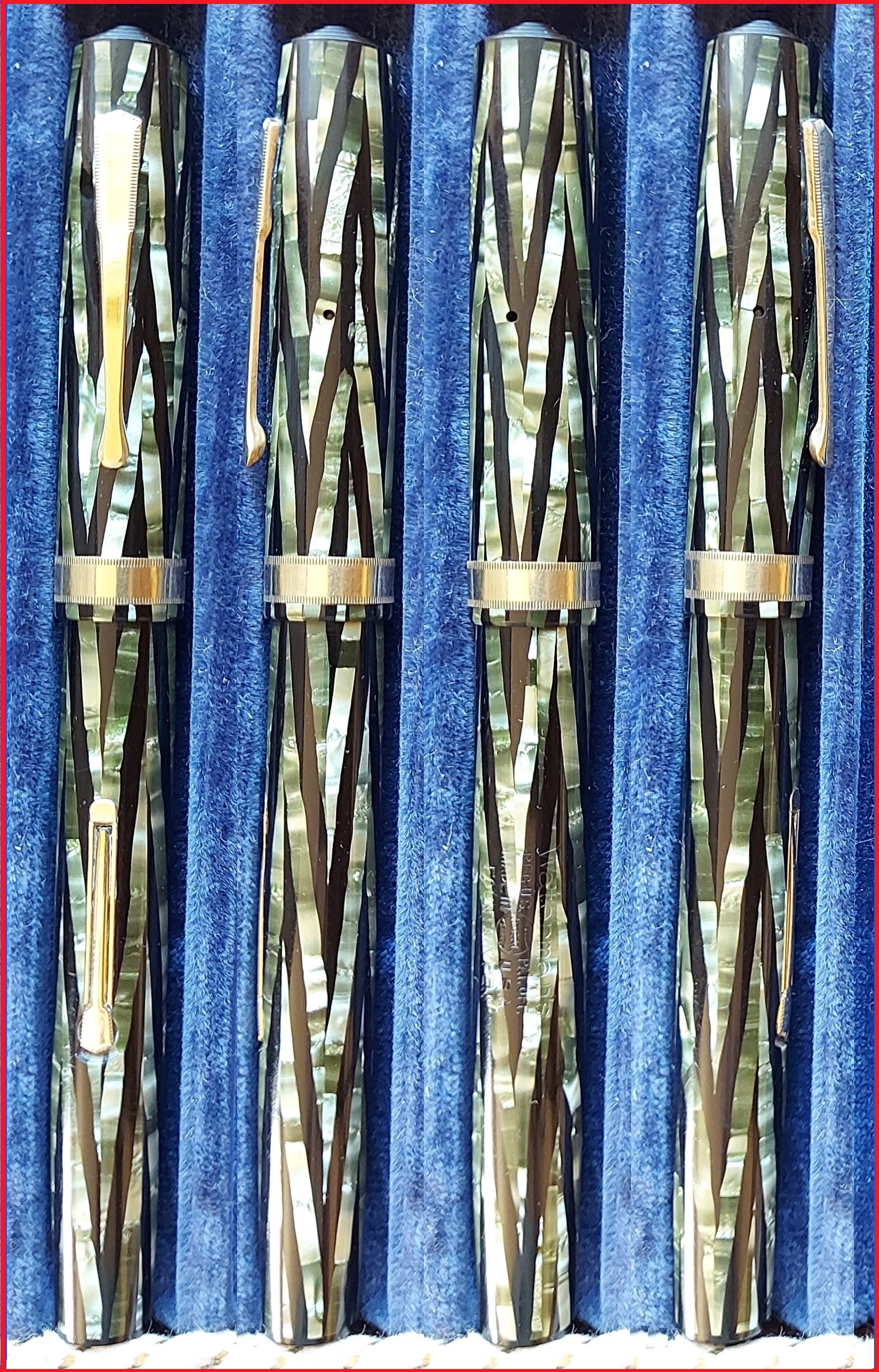 La penna oggetto della mia recensione è una <No.7> appartenente a questa seconda tipologia nell’unica colorazione diversa dal nero prodotta dalla Casa, che fu presentata nel 1935 in occasione del lancio della esclusiva celluloide brevettata “RAY” (che andrà ad equipaggiare anche la nuova gamma “Ink-Vue”, le prime penne “trasparenti” della Waterman).