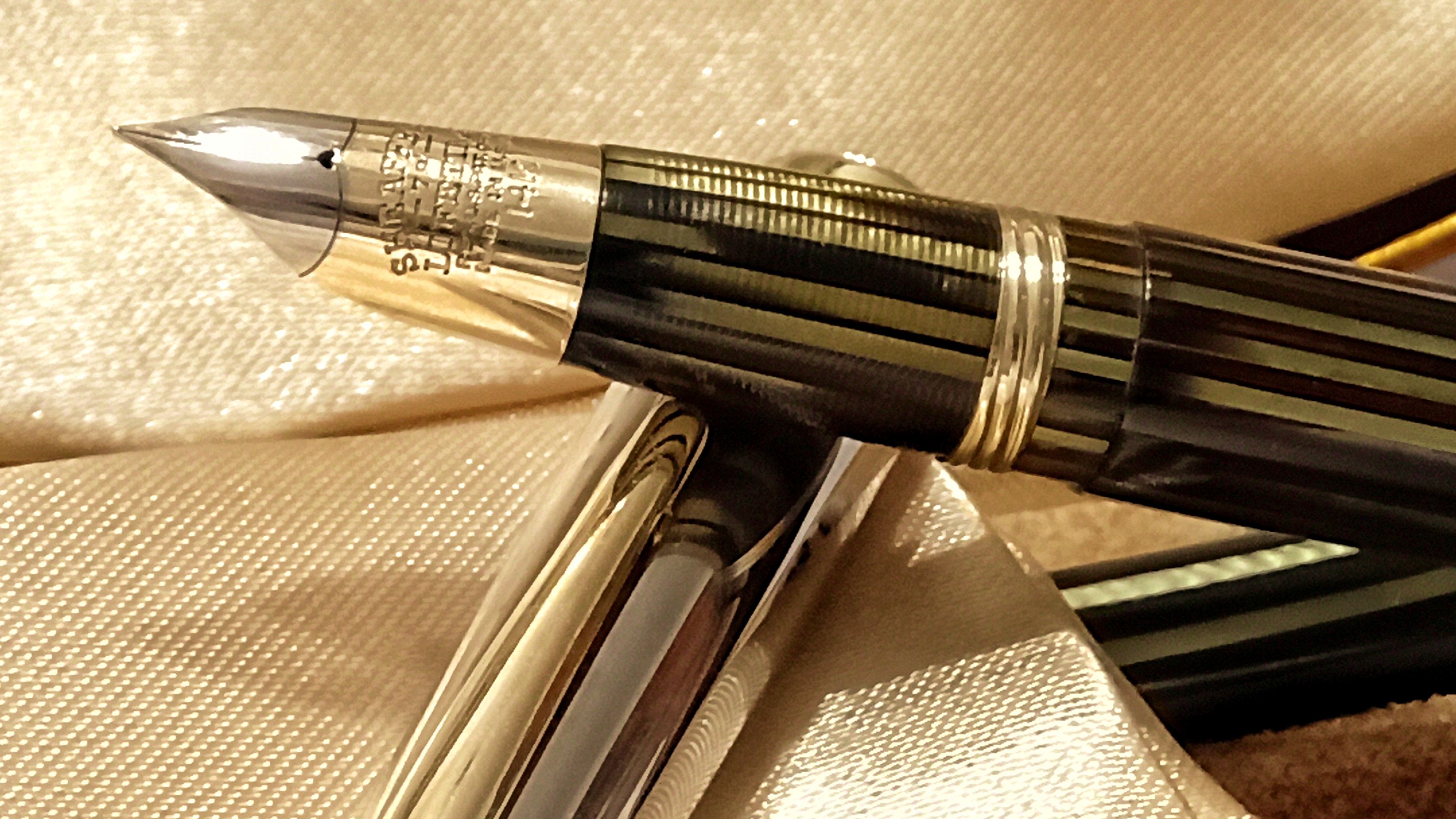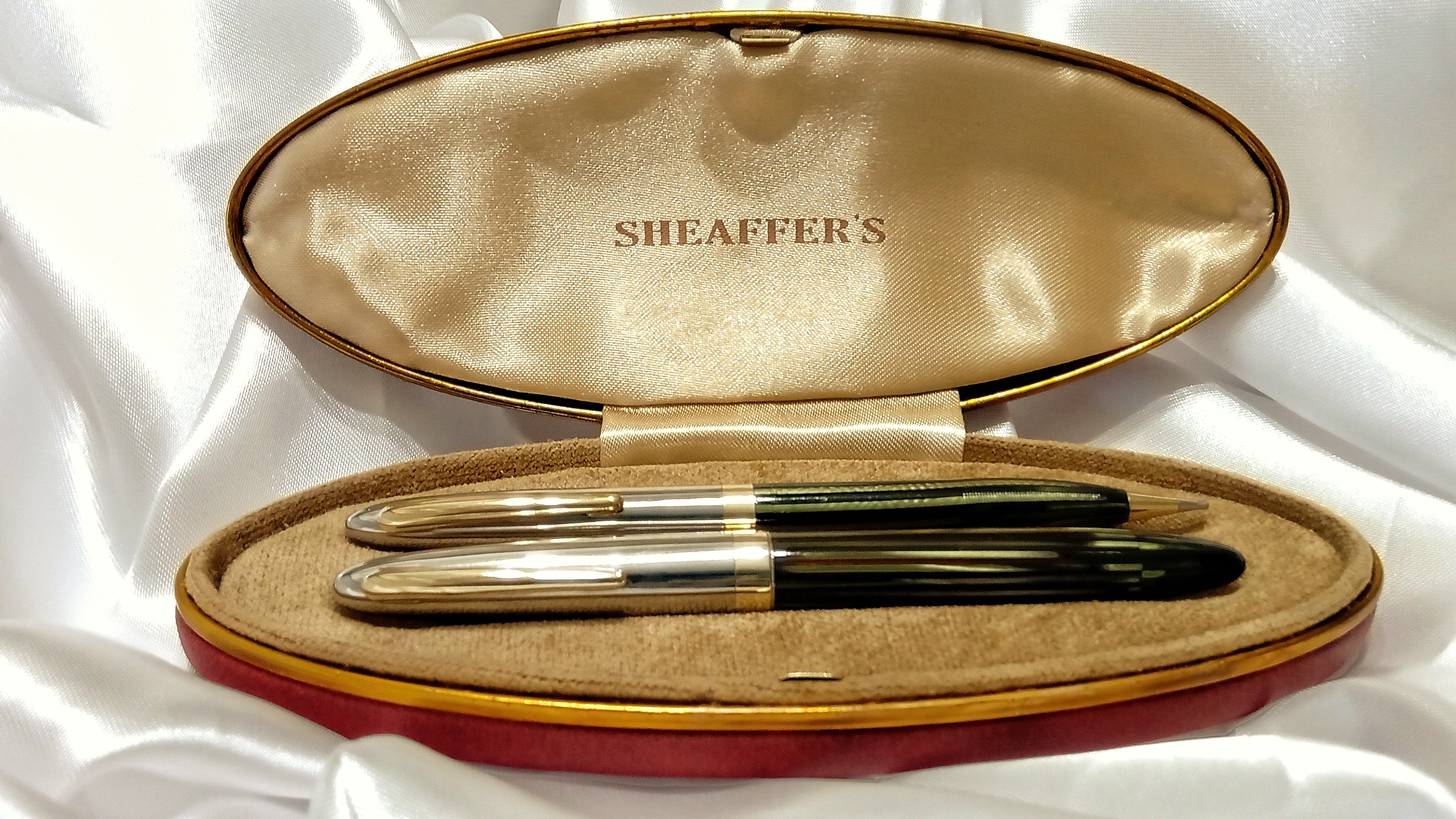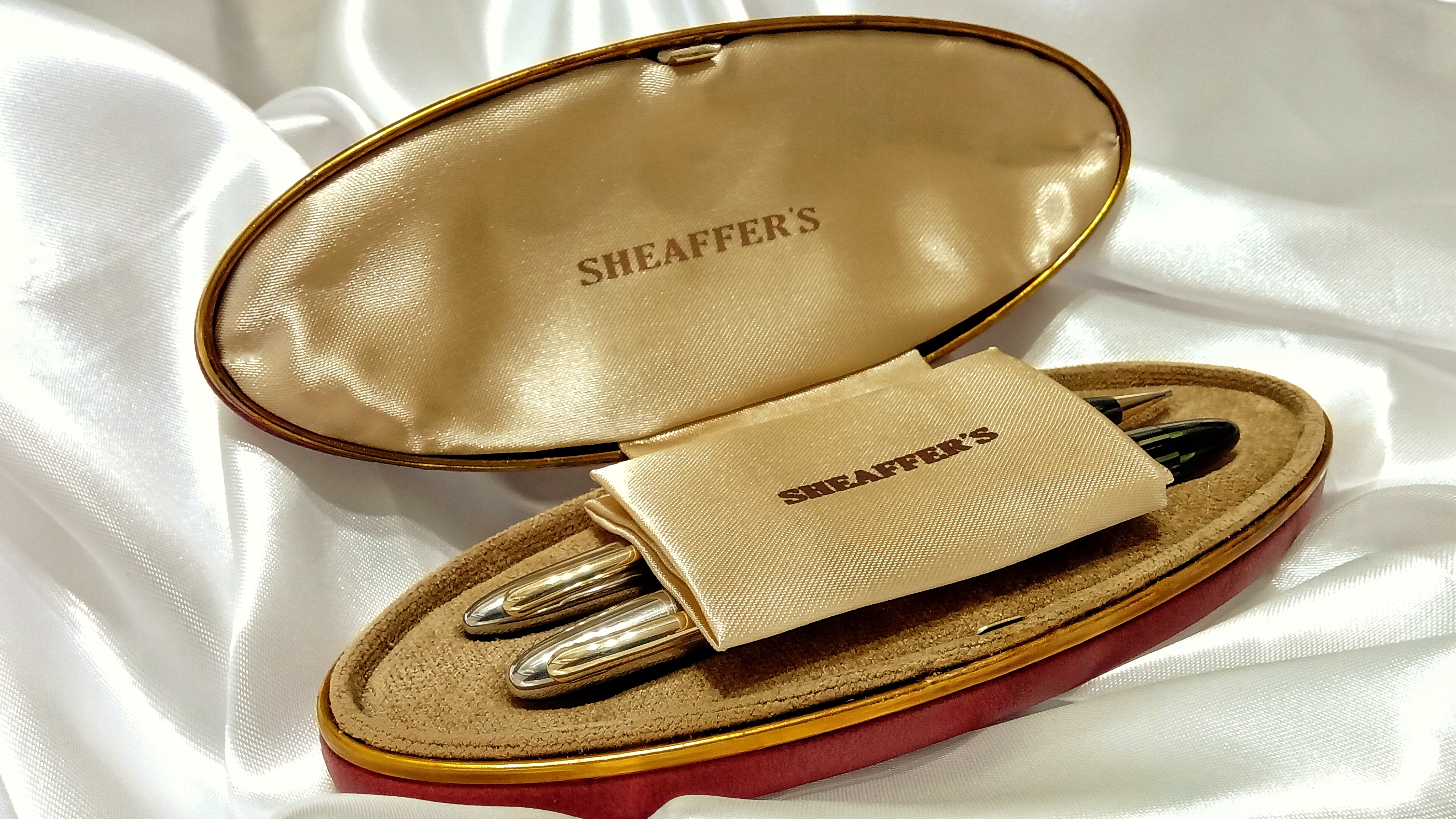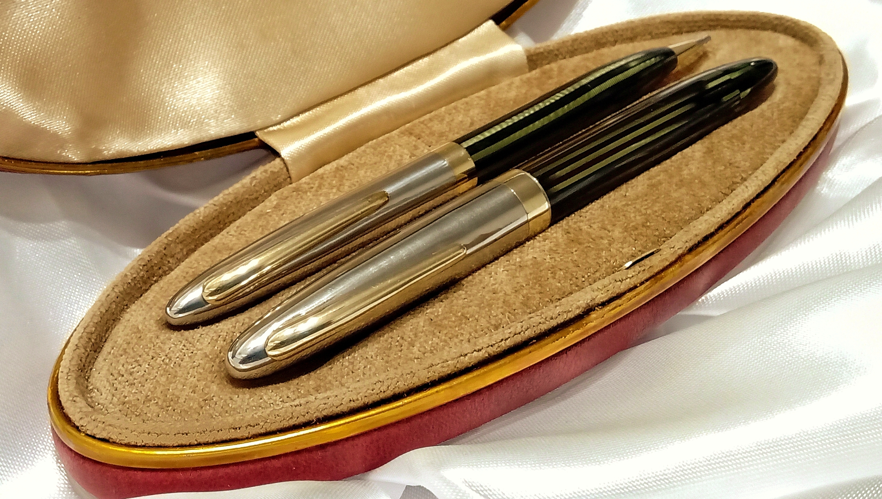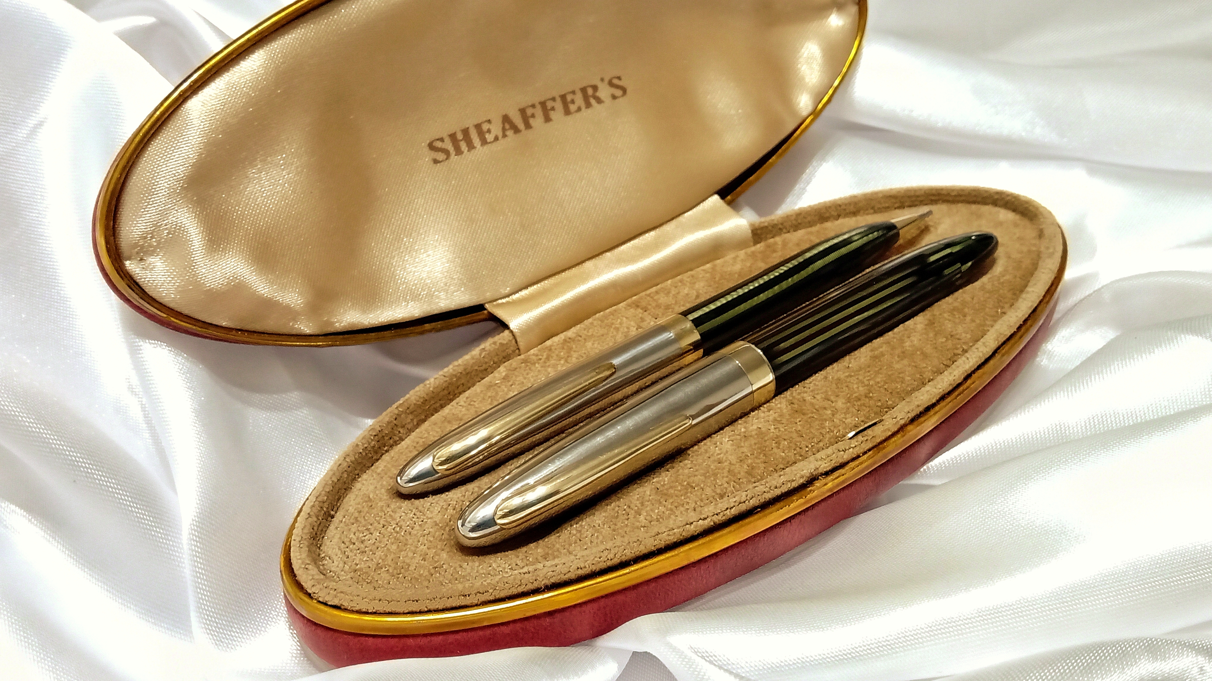 Vi lascio qui questo video del test di caricamento e scrittura che vi dovevo, relativo a questo restauro che ho presentato qualche mese fa ( viewtopic.php?t=27833 ), e che riguardava questo bellissimo set di Sheaffer's Sentinel degli anni '40, prima generazione del sistema di ricarica Vacuum Filling, con pennino conico Lifetime bicolore.