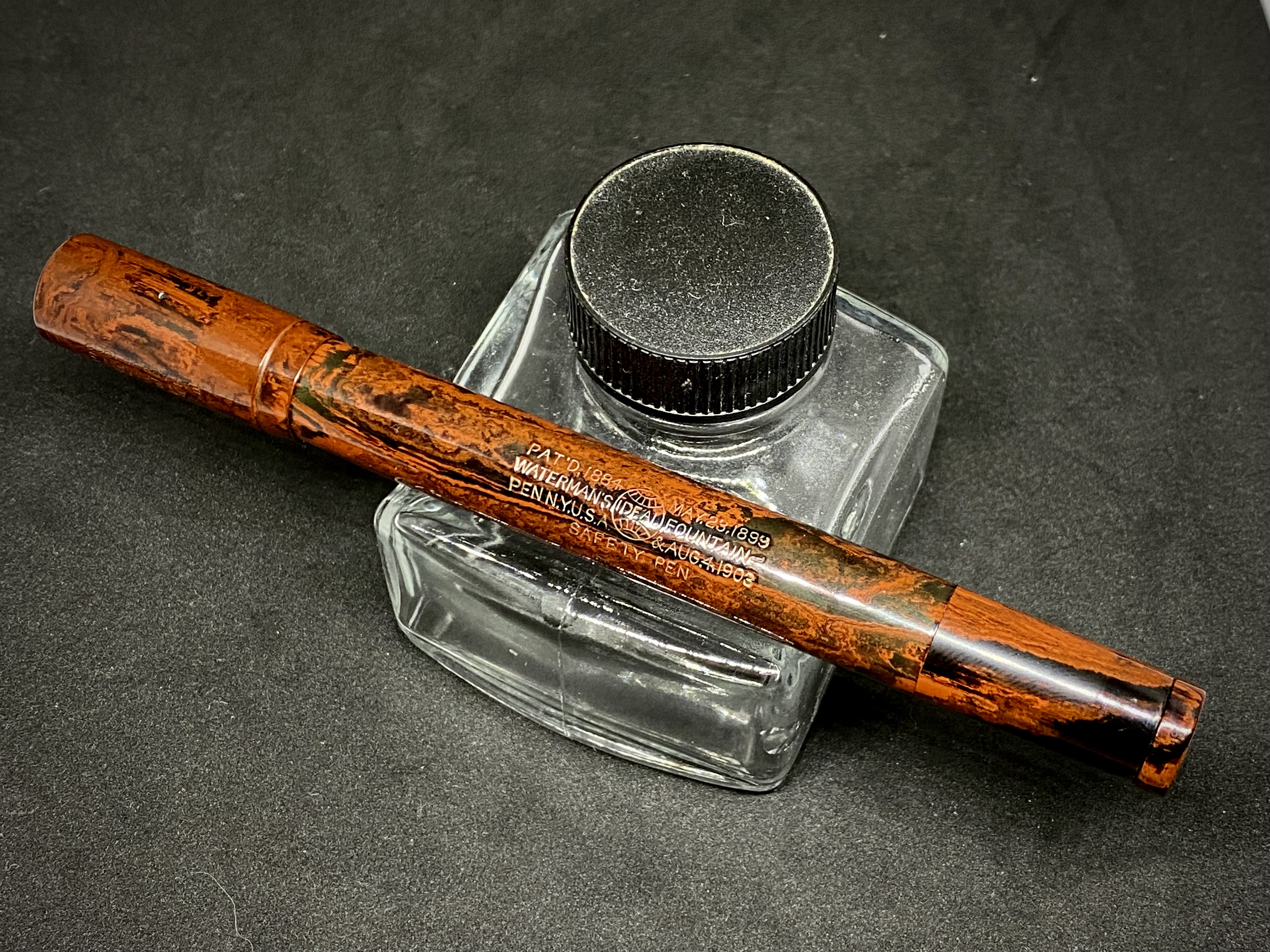 Comunque una lavorazione più estetica dell'ebanite che, da come ho capito, nelle intenzioni della Waterman doveva contrastare l'avvento del nuovo materiale infrangibile e colorato: la celluloide....