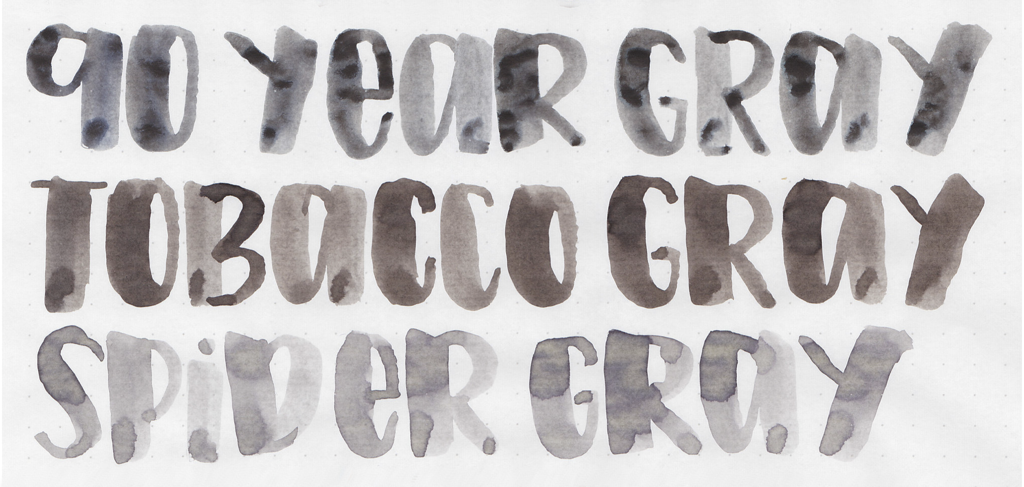 Ho amato anche io il grigio, nel colore dell’inchiostro Rohrer & Klingner ‘Nero di Lipsia’ (non ricordo bene come sia scritto in lingua madre, quindi uso l’italiano per non sbagliare). Era a tutti gli effetti un bel grigio-grigio, però con poche sfumature se non ricordo male. Mi spiace un po’ averlo ceduto in effetti