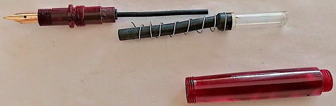 Una volta aperta era evidente l’assenza di un sacchetto a fisarmonica e/o di una molla, in una penna costruita per funzionare con il sistema di caricamento Accordion. ( https://www.fountainpen.it/Accordion_filler )