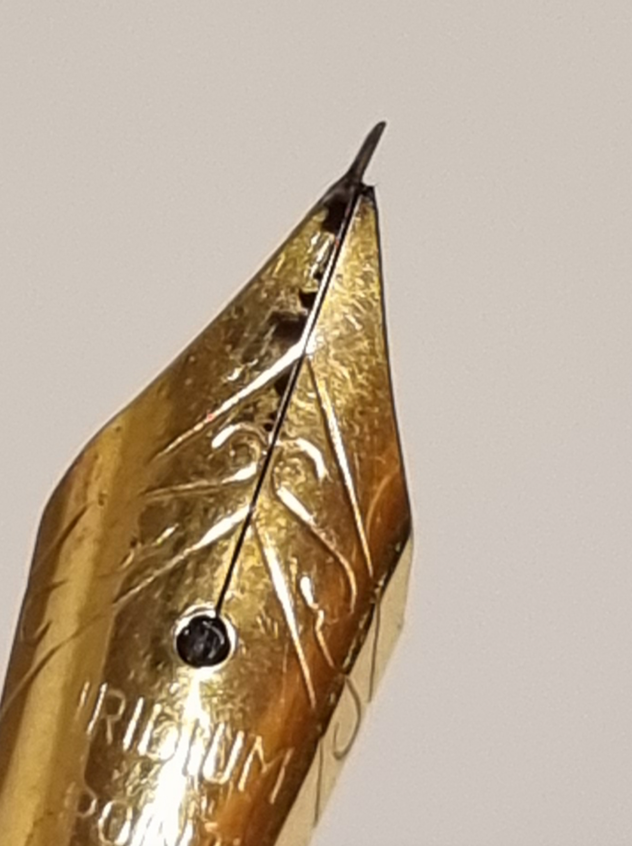 Volevo chiedervi se qualcuno sa darmi qualche informazione su questo pennino e se avete qualche suggerimento per farlo funzionare: l'ho lavata (non scrive almeno da una 15ina di anni) e inchiostrata, ma l'inchiostro non sembra giungere all'estremità di questo particolare pennino, però se ruoto la penna facendo toccare sulla carta l'intero pennino l'inchiostro esce...