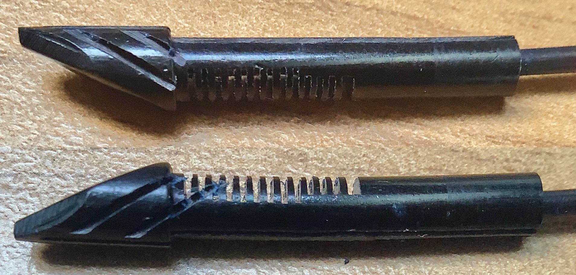 Complimenti, spero proprio che tu possa completare questa penna perchè lo merita, soprattutto per quel pennino. I canali laterali del conduttore sono assai simili a quelli adottati dalla Wahl Eversharp per le Skyline .