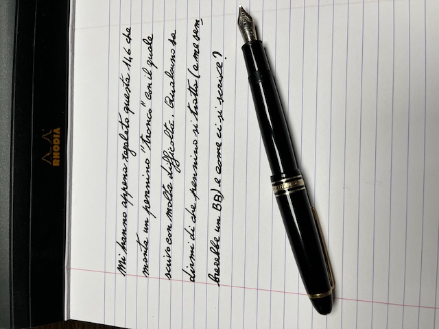 Avevo una 144 con pennino BB regalatami da mia sorella. Inutilizzata per 20 anni e alla fine rivenduta in favore di una M meno ostica (e altre 16/17 penne, ma questa è un’altra storia).