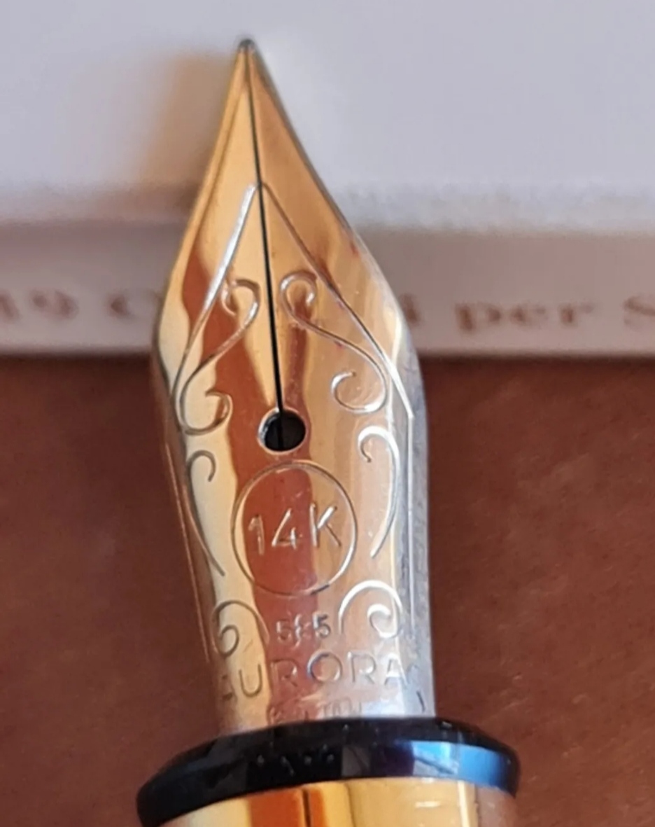 Come si nota, uno presenta la scritta Aurora incisa, l'altro solo il simbolo 14kt centrale al pennino.