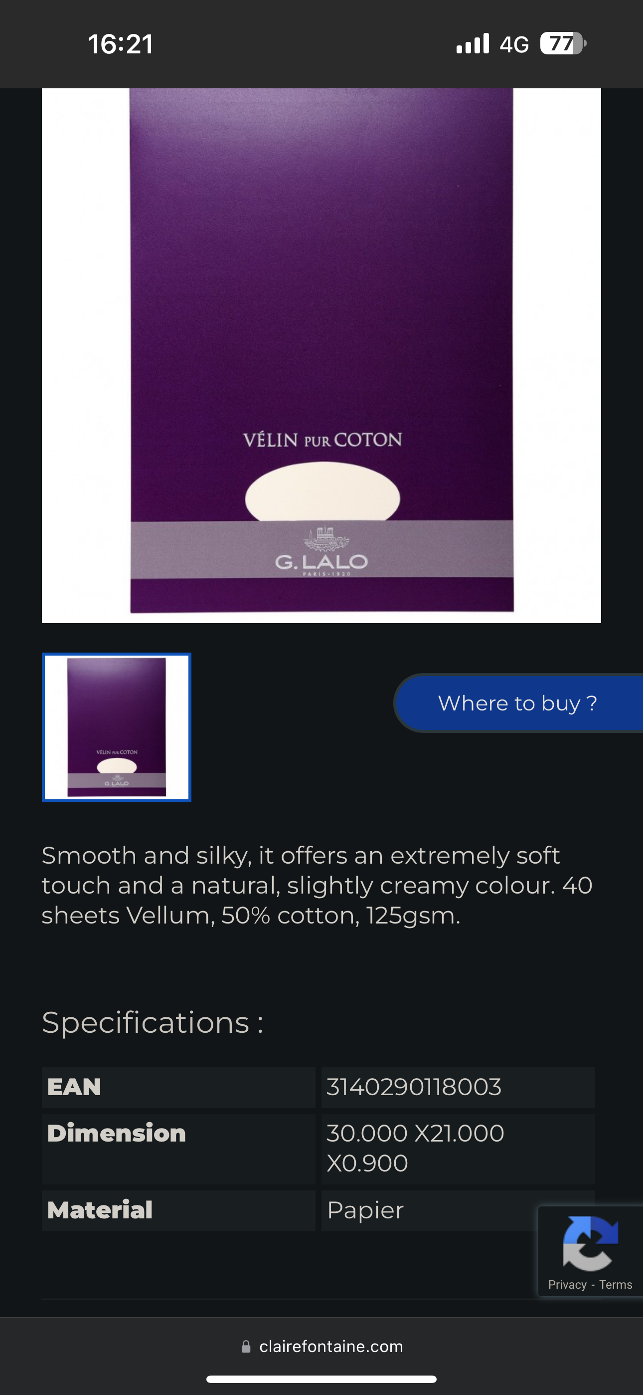 Un’altra loro carta da corrispondenza è la “Vélin PUR COTON”, che nelle specifiche riporta composizione al 50% cotone. L’altro 50% è colla o “PUR COTON” è soltanto marketing perché “DEMI COTON” suonava male?