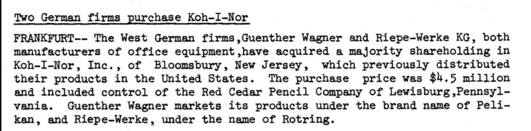 Poi nel 1970 ROTRING e PELIKAN acquistarono insieme Koh-I-Noor USA.