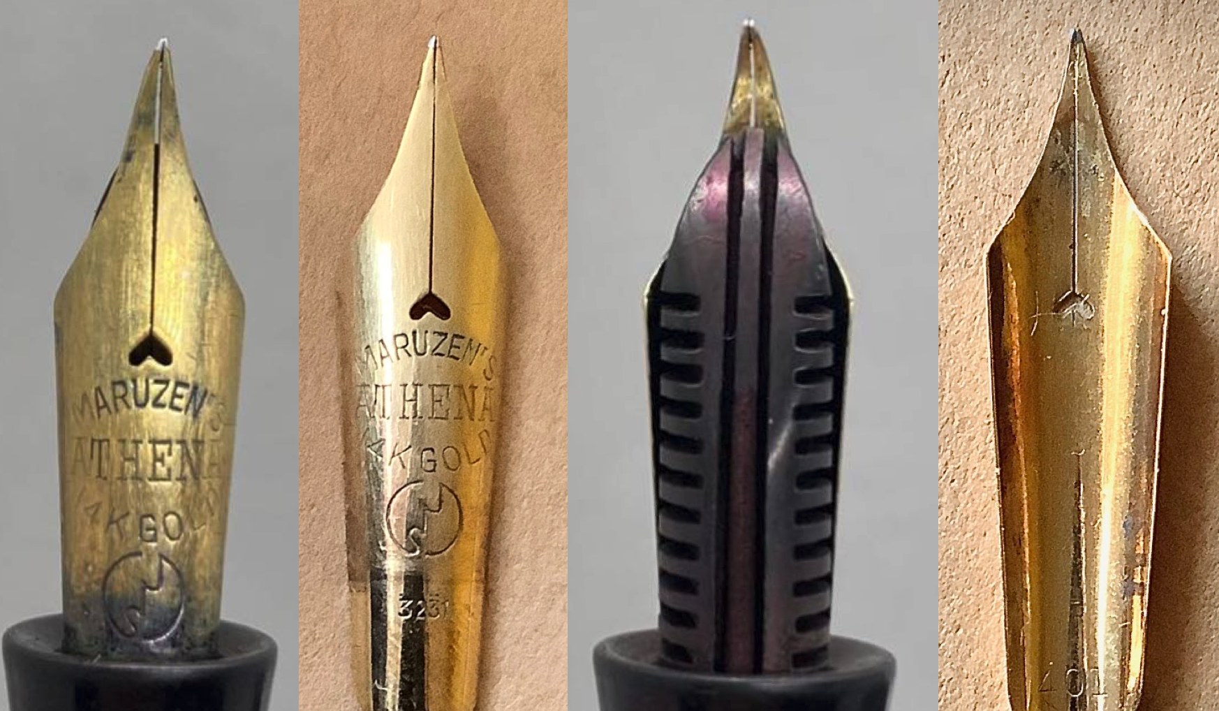 Il 1937 è l’anno in cui Maruzen rileva la fabbrica nella quale fino ad allora venivano realizzate le penne a loro marchio ed inizia così la produzione in proprio . Al termine della guerra viene costruito un nuovo stabilimento vicino a Tokyo (il precedente era andato distrutto dagli eventi bellici) e le stilografiche della linea Athena, negli anni ’50, subiscono un nuovo restyling : affiancate alle classiche in ebanite e lacca urushi , vi sono quelle realizzate in celluloide colorata oppure in plastica trasparente , ed i cappucci iniziano ad essere realizzati in metallo dorato o nichelato .