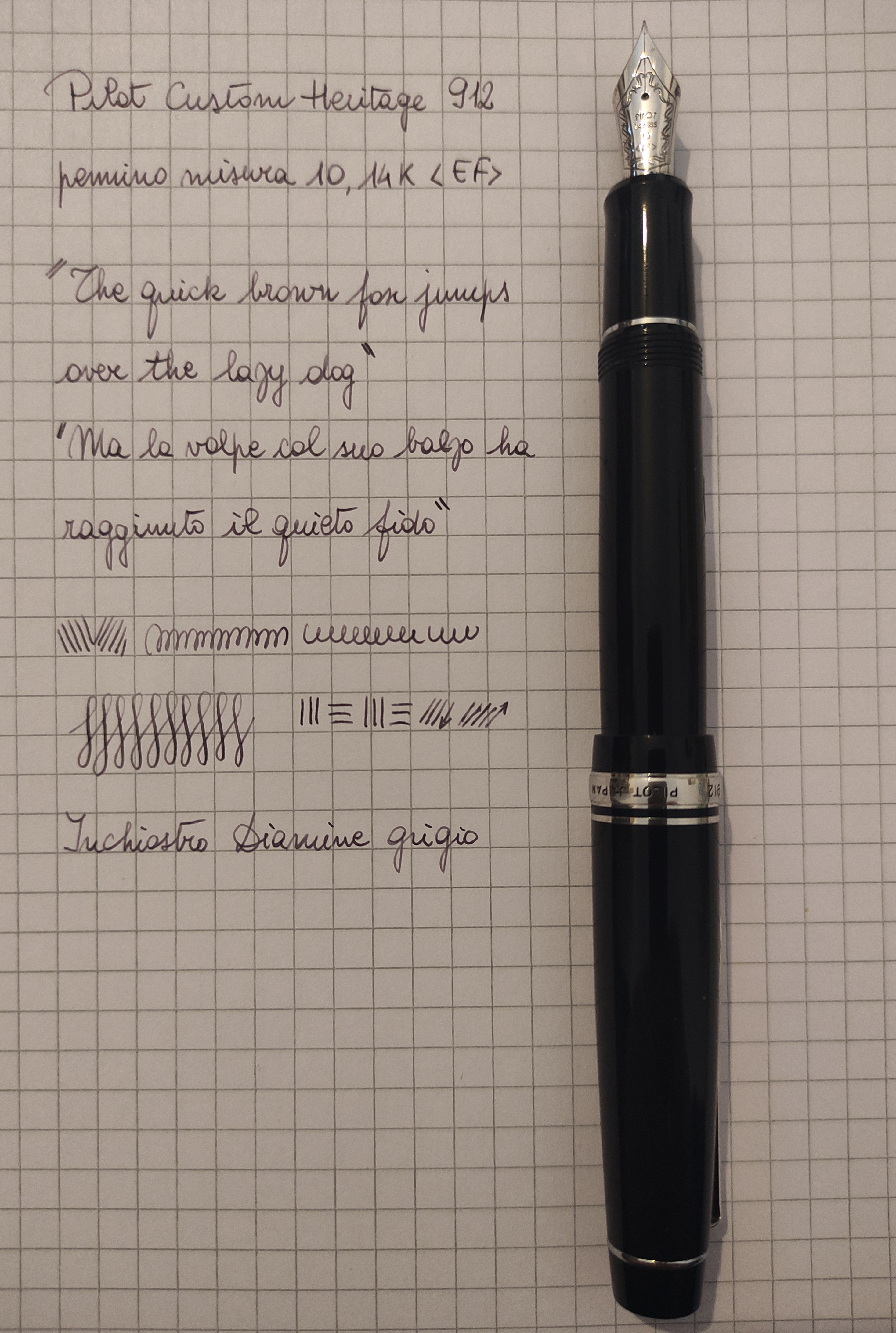 Pilot Custom Heritage 912. Il pennino è abbastanza rigido, ma un pelo più cedevole rispetto al pennino in acciaio della Penmanship/Kakuno EF. È una penna che non ama la mano pesante e soprattutto una buona carta tipo Oxford, Rhodia, Claire Fontaine. Ergonomia ottima, peso e bilanciamento ineccepibile, ma confesso che da diverso tempo preferisco altre penne. Erano mesi che non la inchiostravo, l'ho tirata fuori per farti una foto, ho scritto due cose al volo quindi perdona la grafia.demogorgone ha scritto: ↑mercoledì 28 febbraio 2024, 11:24 Ho letto la recente discussione sulle pilot...
