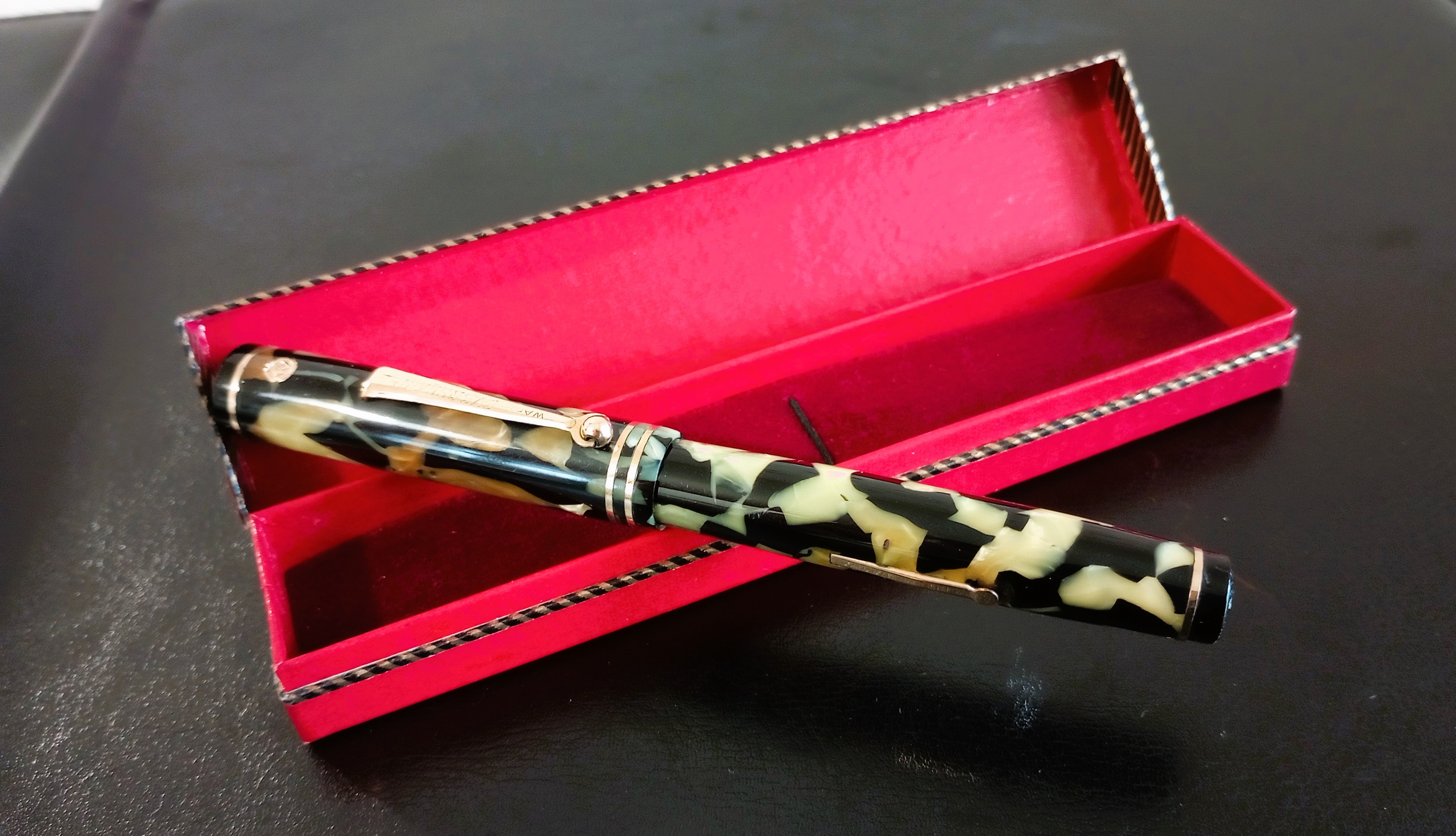 Gli anni ’20 si configurano come un decennio importante per i nostri strumenti di scrittura: archiviata l’epoca dei contagocce grazie alla sperimentazione di molti, (ma soprattutto alla trovata Roy Conklin, il quale brevettò nel 1901 il Crescent Filler dando la stura ai sistemi di caricamento su fusto, e alla successiva riflessione di Walter Sheaffer, con il suo sistema a levetta semplice e stilisticamente pulito datato 1908), le stilografiche imboccarono un percorso di design che ebbe, tra gli esiti meglio cristallizzati e più pregnanti, la foggia detta Flat Top, ossia un cilindro piacente sul versante delle tecniche produttive e dei materiali di allora così come nei taschini di formali giacche in panno. Non solo, il terzo decennio del secolo scorso vede anche l’introduzione della celluloide a scapito dell’ebanite nella produzione delle top four (five?).