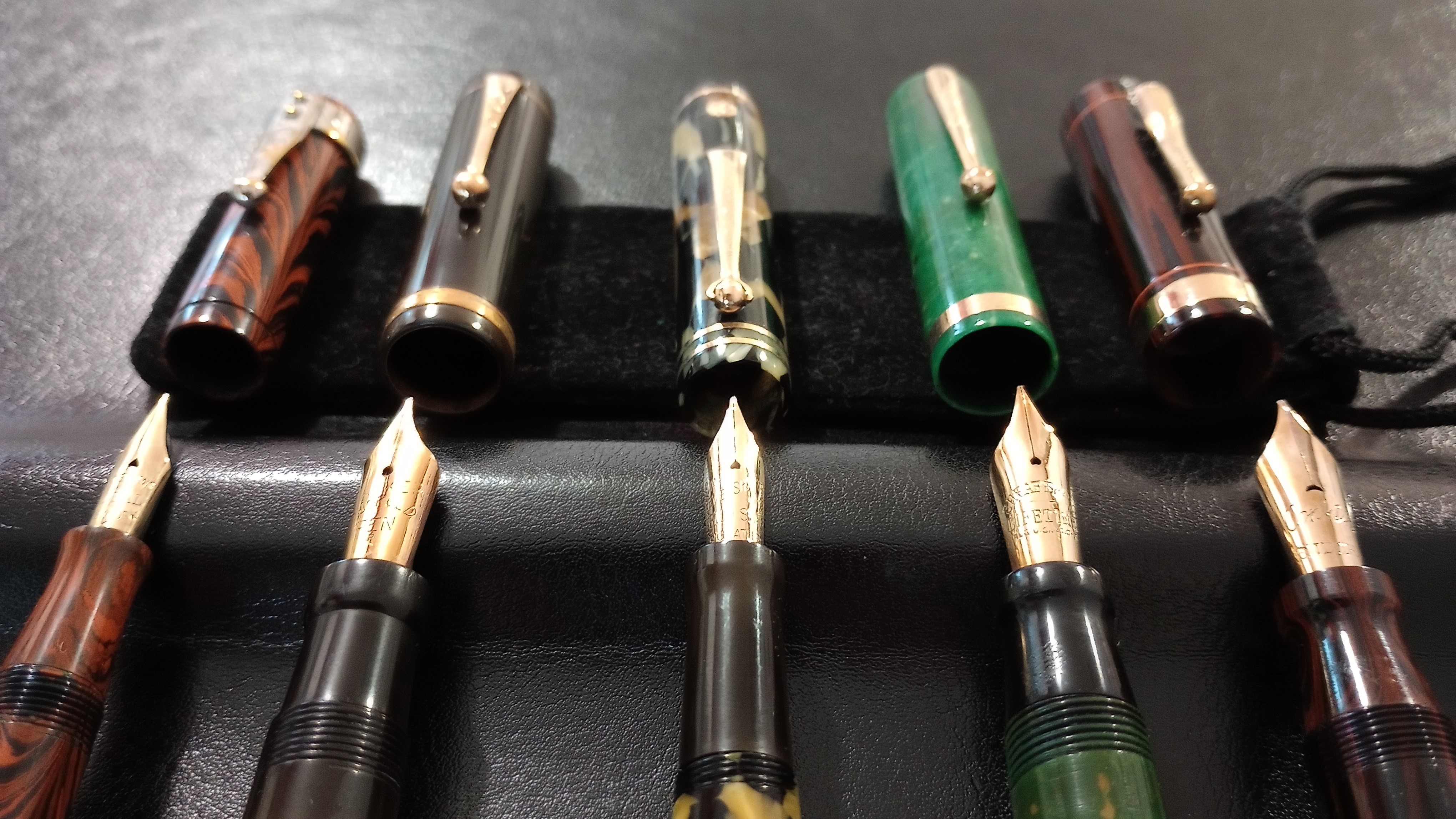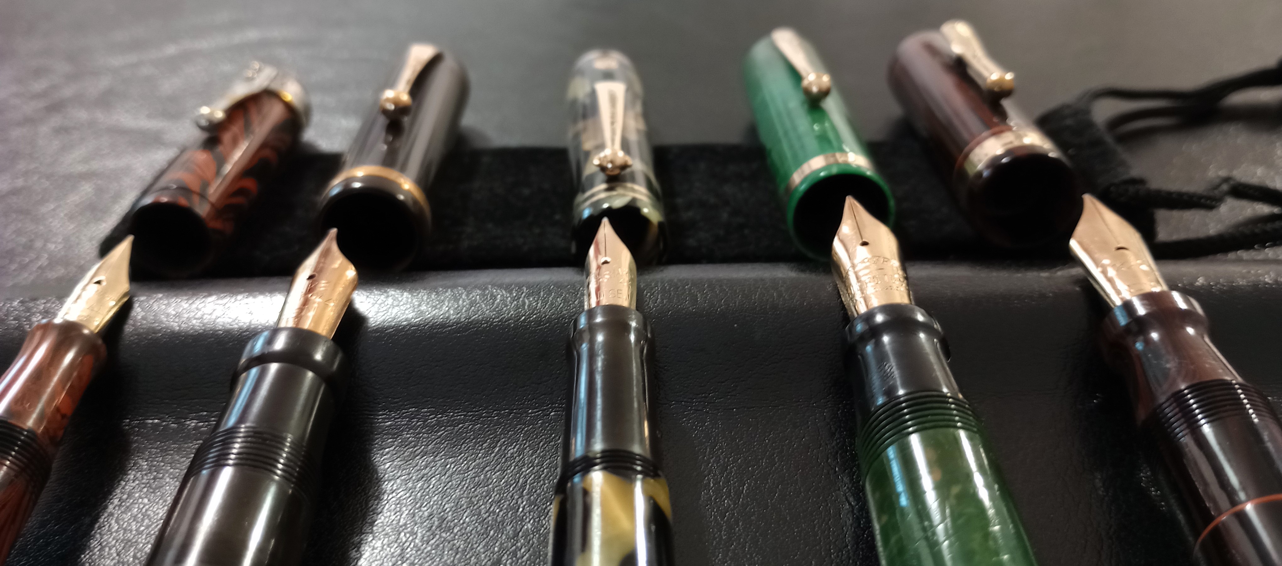 Sebbene non si tratti sicuramente di rarità, la ricerca e il finanziamento di queste penne ha richiesto oltre un anno ed è il frutto del mio primo programma di acquisizioni ragionato (quindi non casuale), anche se di piccolo cabotaggio: ringrazio gli appassionati che mi hanno aiutato nella piccola impresa, sperando che si ritrovino nella presente dichiarazione di riconoscenza: ho trovato in questo forum molto sapere e persone amiche, pur mai incontrate di persona, ma stimate per il loro modo di comunicare lineare, sincero e prevedibile (nell’accezione migliore di questo termine).